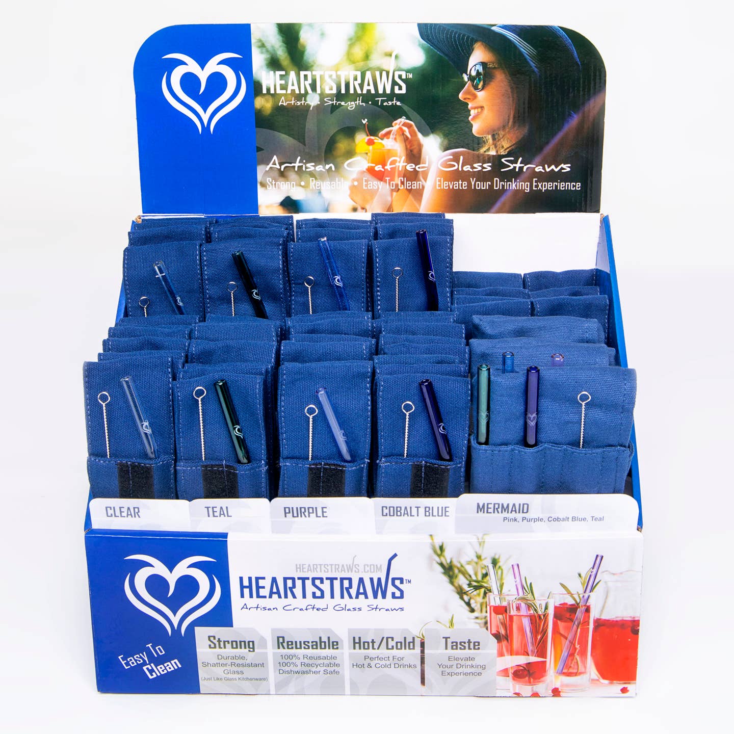 HeartStraws is a reusable glass straw brand with a purpose: help turn off the faucet of single-use plastic pollution by keeping single-use plastic straws out of the environment, away from wildlife and prevent them from becoming microplastics. HeartStraws inventory was acquired by a Father (Peter) and Daughter (Christina) team when the original owner had to close his business due to the pandemic. Christina lives in Virginia Beach, Virginia and is the owner of an eco-friendly retail business, Eco Maniac Company, as well as director of a non-profit organization working to keep plastic pollution out of Virginia's waterways. Peter is "retired", living in Rhode Island, but he still works on his promotional products business part time and now he has this new and fun challenge of distributing HeartStraws in New England to keep him on his toes :). HEARTSTRAWS are handmade from Borosilicate glass, ensuring the maximum strength and durability available. Each straw is hand cut, bent, and hand-finished to a smooth, rounded edge then properly annealed for strength and inspected to ensure it meets strict quality standards. Many of the HeartStraws reusable glass straws are engraved with the HeartStraws logo. We will always ship your order plastic-free, in recycled/used boxes when possible (sometimes there is plastic tape on the box leftover from the previous shipper).