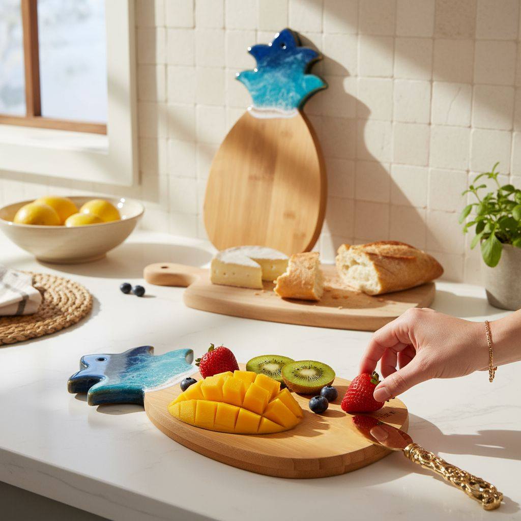 Hi! I’m Trish, the artist and maker behind Gulf Coast Custom Designs in sunny Sarasota, Florida. I specialize in coastal-inspired, handcrafted wood and resin art designed to bring beauty and function to every space. From elegant kitchen designs to home décor, each piece is made by hand using a combination of carefully selected hardwoods, hand poured, food safe ocean-hued epoxy resin, and laser-engraved details. Every wholesale order is made-to-order and receives the personalized attention it deserves. I take pride in crafting unique, artisan-quality products that your customers will love—whether they’re shopping for a one-of-a-kind gift, a home accent, or a standout serving piece. Looking to add a personal touch? I offer custom logo engraving and can incorporate meaningful designs or photos into most items in my catalog. My work reflects the laid-back charm of the Gulf Coast while meeting the high standards of fine craftsmanship. Thanks for supporting handmade—and for considering my work for your store