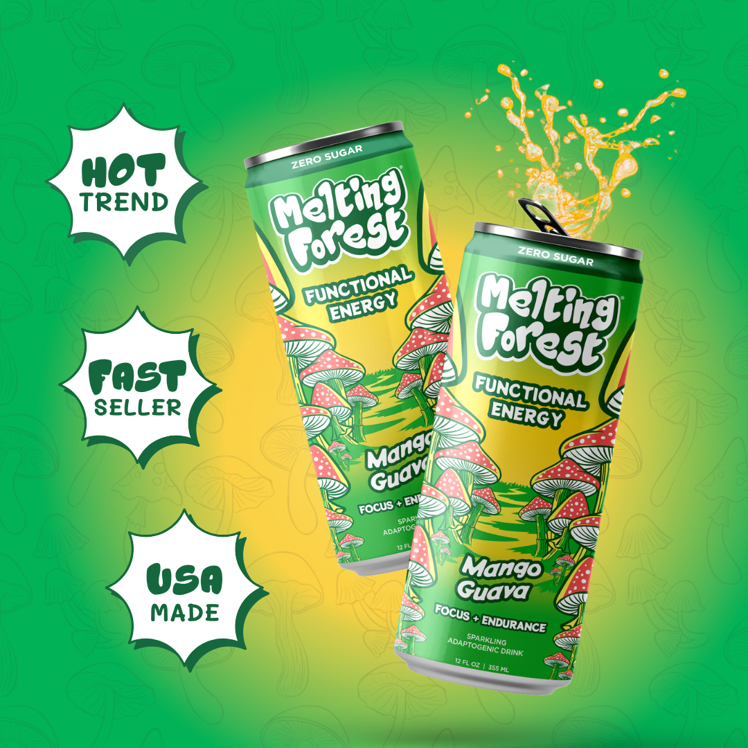 🍄 Your customers are seeking alternatives to traditional energy drinks and NA options—Melting Forest's vibrant 🍄mushroom formulations turn browsers into buyers, selling 3-5x faster than the category average. 🍄 Melting Forest isn't just another functional beverage—it's what happens when real science meets real demand. While other brands slap marketing claims onto white-labeled formulas, we're the authentic alternative with our own in-house scientist crafting genuinely effective mushroom-based beverages that your customers can actually feel working. Our dual product line tackles what your shoppers want most: holistic clean energy without the crash and natural stress relief without the hangover. 🍄 Melting Forest will fly off your shelves with vibrant, eye-catching packaging that creates instant visual impact and drives impulse purchases. Made in the USA, we deliver sophisticated flavor profiles and proprietary formulations you won't find anywhere else. We offer both shelf-stable and refrigerated options, giving you merchandising flexibility while consistently driving repeat purchases. 🍄 Whether your shoppers want clean energy or relaxation without compromise, Melting Forest delivers on both fronts. Sitting at the intersection of functional beverages, mushroom wellness, and NA alternatives, we're not just riding trends, we're creating them with scientist-formulated products that actually work. 🍄 Add Melting Forest to your shelves and watch your sales grow! 🍄