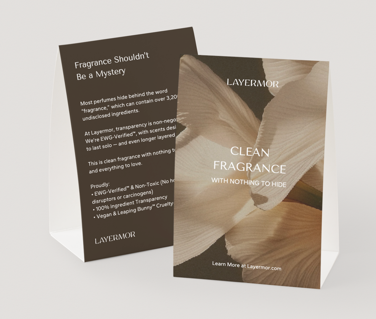 Fragrance shouldn’t be a mystery. Most perfumes hide thousands of undisclosed chemicals behind the word “fragrance.” At Layermor, we disclose every ingredient and meet the world’s strictest safety standards as one of only nine EWG-Verified™ perfume brands. After two sell-outs since launch, our signature scents are back — designed to be layered for fragrance that lasts all day.