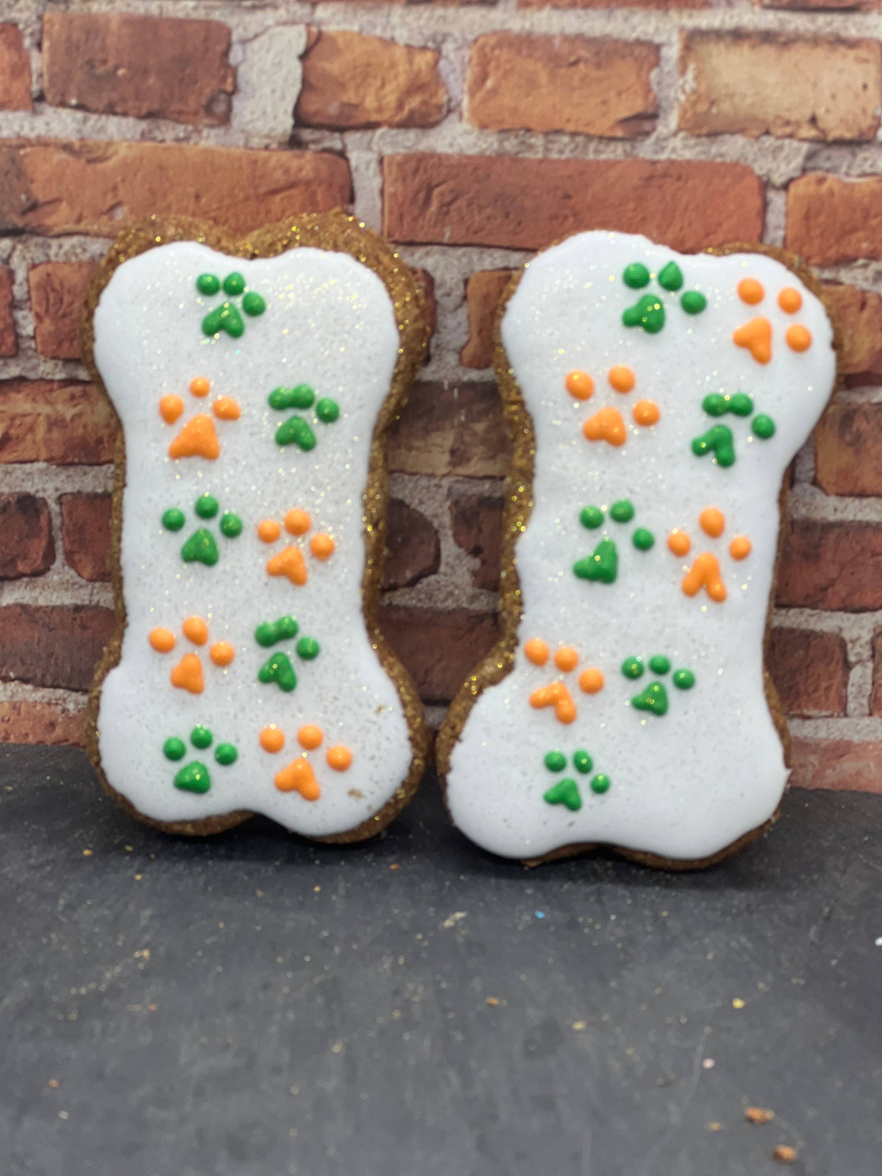 At Tito’s Pet Bakery, we prioritize the highest quality, using only human-grade ingredients in our cookies and treats. We use a simple recipe with only a few ingredients, and it’s allergen friendly and preservative free. We always have a wide variety of bone-shaped cookies in stock that will surely delight your customers. Our inventory is kept fresh and exciting by offering specialty design styles throughout the year. In stock cookies and treats ship out within 5 business days. All custom orders have a ship out timeframe of 30 to 45 days. The shelf life of all our products is guaranteed for 9 months. Cookies are to be fed as a treat. Guarantee Analysis Crude Protein (min) 17% Crude Fat (min) 5.5% Crude Fiber (max) 2.7% Moisture ( max) 12.3% Cookie Ingredients: garbanzo bean flour, sweet whey, flax, cinnamon, ginger, baking soda, oil Icing Ingredients: Non-Fat Milk Solids, Yogurt Powder, Tapioca Starch, Tapioca Maltodextrin, Egg Whites, Dextrose, Modified Plant Starch, Apple Pectin, Titanium Dioxide (for color – tiny amount – less than 1/8 tsp per cup of mix)