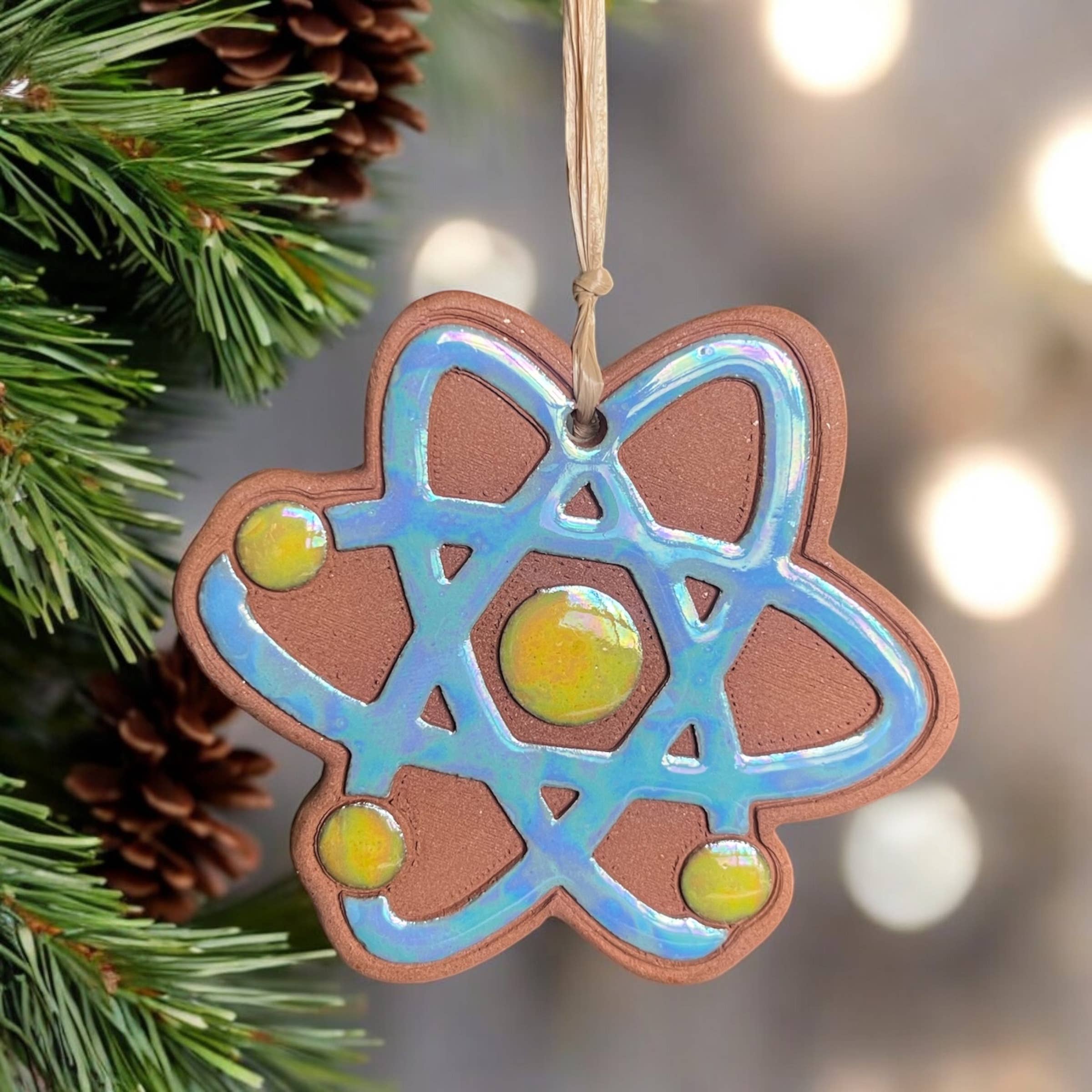 We make small batch ceramic ornaments from our family ceramic studio in New Mexico, USA. Unique with a warm natural feeling, and glazed brightly; each of our ornaments is one of a kind and each bears its own distinct marks and variations which emphasize the beauty and honesty of our handmade quality -a feature that our customers appreciate and value. Using natural clay from the American Southwest and a pinch of the sparkling mineral mica (for subtle beauty and strength), every ornament is created with love as we design, print, and paint each by hand. *New tag options! We include a Little Clay Hen Studio branding tag on the back of each ornament, you can now choose the "tag line" that best fits your client interests. Please let us know which you prefer as you are checking out or in a private message to us. All of your ornament orders will include the same tag. Choices are: #1: Made with Natural Clay from the American Southwest #2: Made with Natural Clay from the Mountains of New Mexico or #3 Made with Natural Clay from the U.S.A. *We will use the tag line "Made with Natural Clay from the American Southwest" by default if we do not hear from buyers with a differing choice.