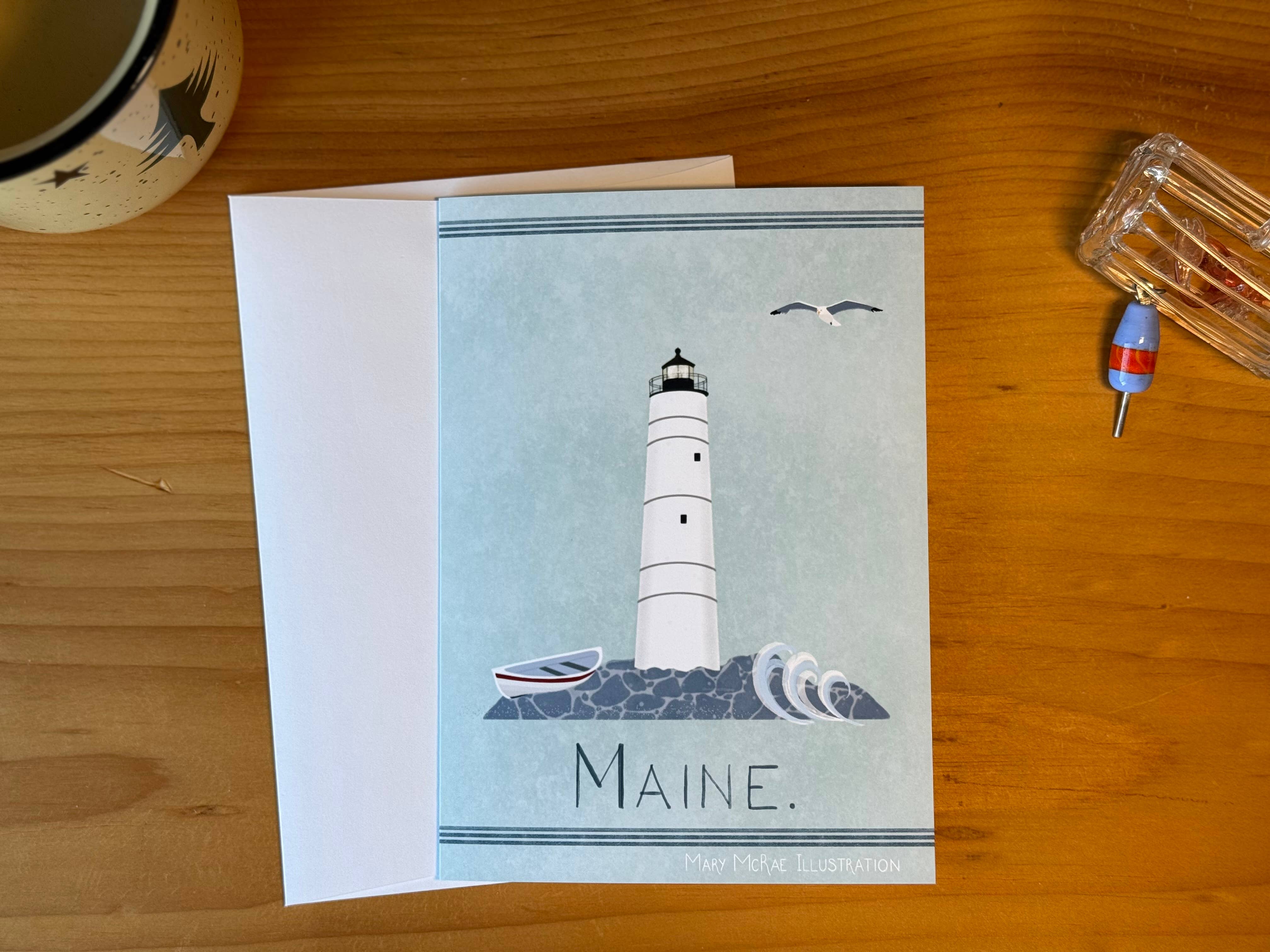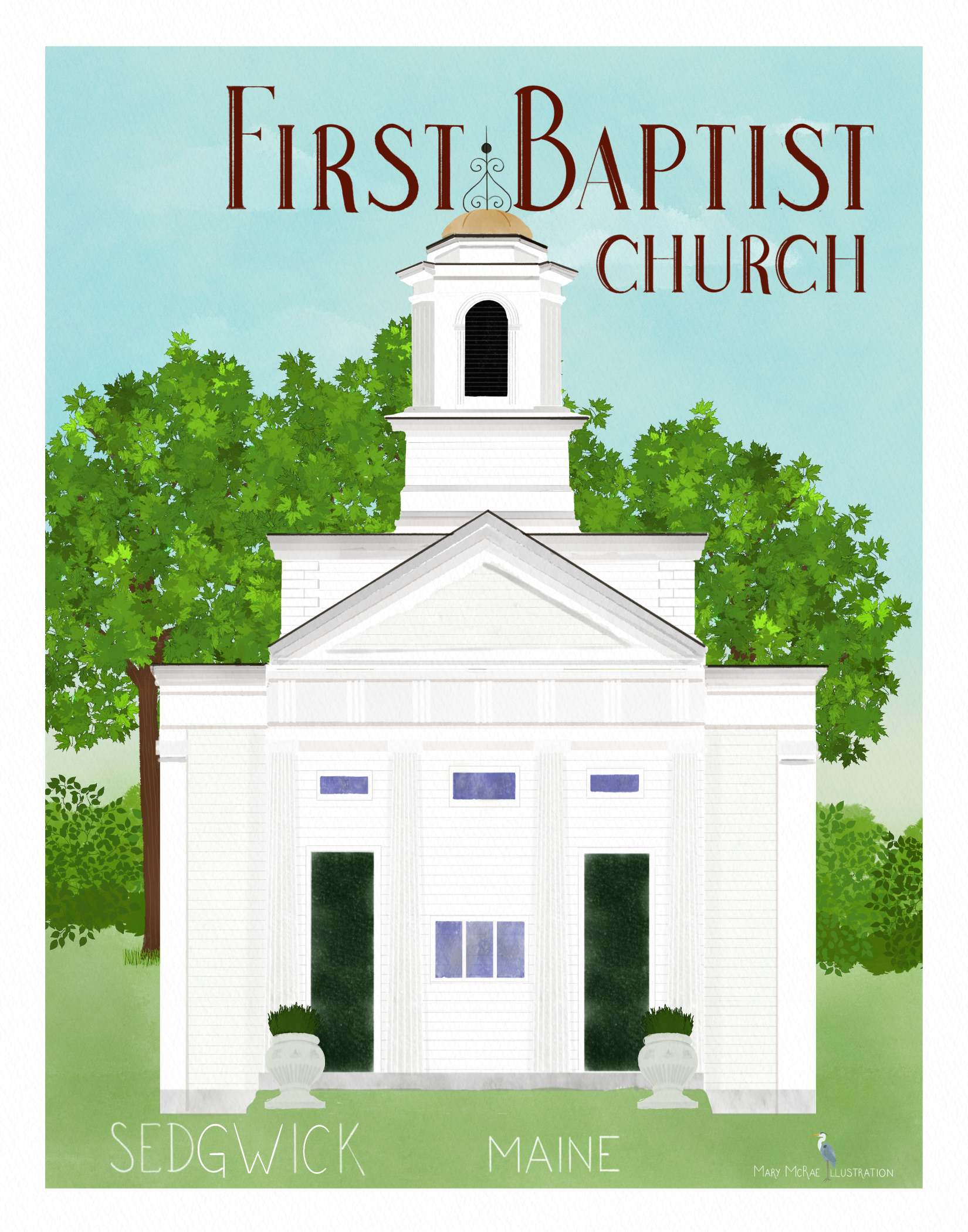 Mary McRae's illustrations celebrate life - past and present - along the coast and and rural communities. My illustrations capture the essence of quintessential coastal communities and life on land and sea. What began as a single travel poster has evolved into a complete line of cards and art prints. I have been drawn to vernacular architecture for as long as I can remember – seeking out the old white clapboard churches, fraternal halls, schoolhouses, barns, covered bridges, farmhouses and capes – mostly showing signs of their age but still holding on and playing a vital role within the community. Living on the coast expands that horizon towards the sea - to lighthouses and lobster boats, boat yards and working docks, and the local shops that play a vital role in coastal villages and towns. Each illustration is hand-drawn and painted, and reproduced as high quality giclee art prints and greeting cards.