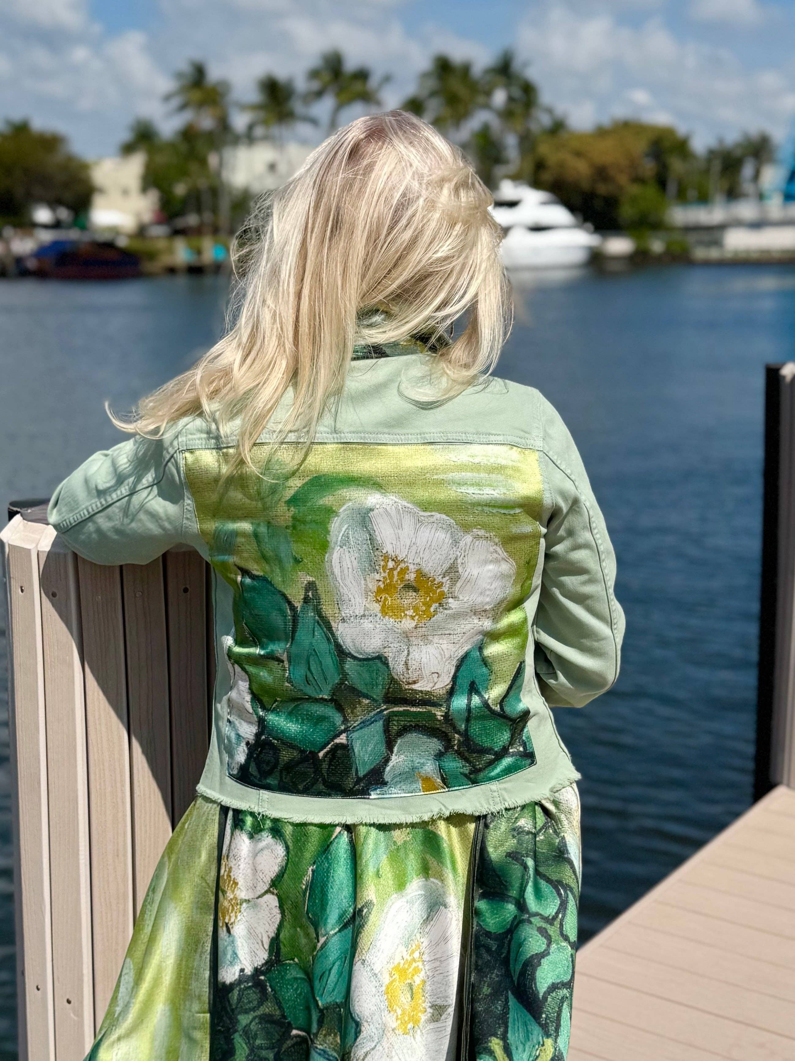 Stacy Bradley is a fashion designer known for her predictions of new styles and keen eye for identifying market craves. Stacy began establishing her brand over 20 years ago, with her one-of-a-kind belt buckles. She traveled the country showing her designs at Art Venues and Equestrian Competitions across the U.S. before expanding her line further. Stacy has an atelier studio in Florida where she hand-crafts and manufactures all pieces for her brand. All of her products are handmade in the USA! Stacy's current trending products are Designer Denim Jackets, Silk Tunics, Silk Dresses, Hats, Tote Bags. Identifying a market niche inspires Stacy daily. With her creative mind, unique visions and business capabilities there is no stopping her! Stacy continues to expand her vision and always has new product ideas in development. She is a woman owned business who employees seamstresses to bring her ideas to fruition. You can find Stacy's brand in boutiques across the country or shop directly from her online store. Stacy's designs are easily recognizable by their colorful combinations and eye catching designs. Her work is intrinsically feminine and incorporates an elegant twist to add couture and sophistication.