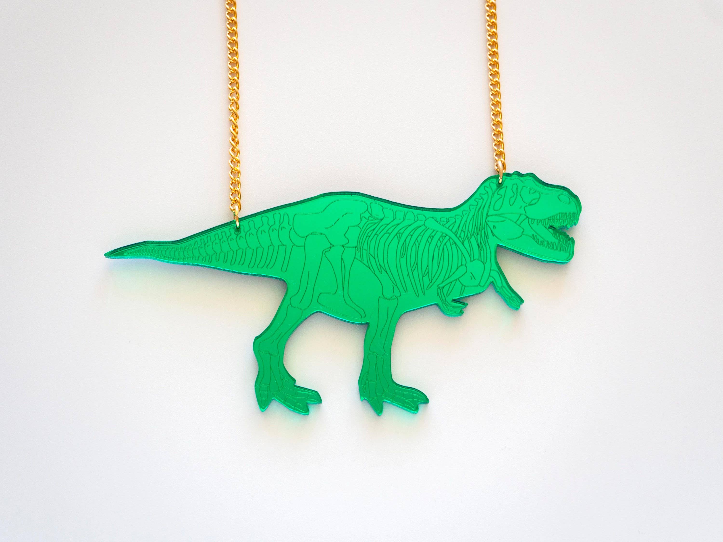 In the beginning Jacques started making children's mirrors at the laser cutting company where he was working. There was one shiny Brachiosaurus which took my fancy, and I held up and suggested that it would look great as a GIANT necklace. I was so excited about it that Jacques made it into the very first designosaur necklace! I talk very quickly, when we first started to make dinosaur necklaces we were both really excited, and when I get excited I talk even more quickly! Jacques and I were discussing new designs and I tried to say "yeah design-a-dinosaur necklace", in my haste it came out as one word, Jacques looked at me wide eyed and we knew we had just come up with the name designosaur. Since then Jacques and I have been working together to create a large range of dinosaur necklaces and other laser cut jewellery, accessories, socks and most recently homewares! We do everything together and make a great team. We have so many ideas - most of the time we talk about nothing but dinosaurs and plastic! It makes us grin from ear to ear when you love dinosaurs and our designs - designing something big, bright and bold and is one of our main aims. Any questions we'd love to hear from you, ROAR! Karli and Jacques