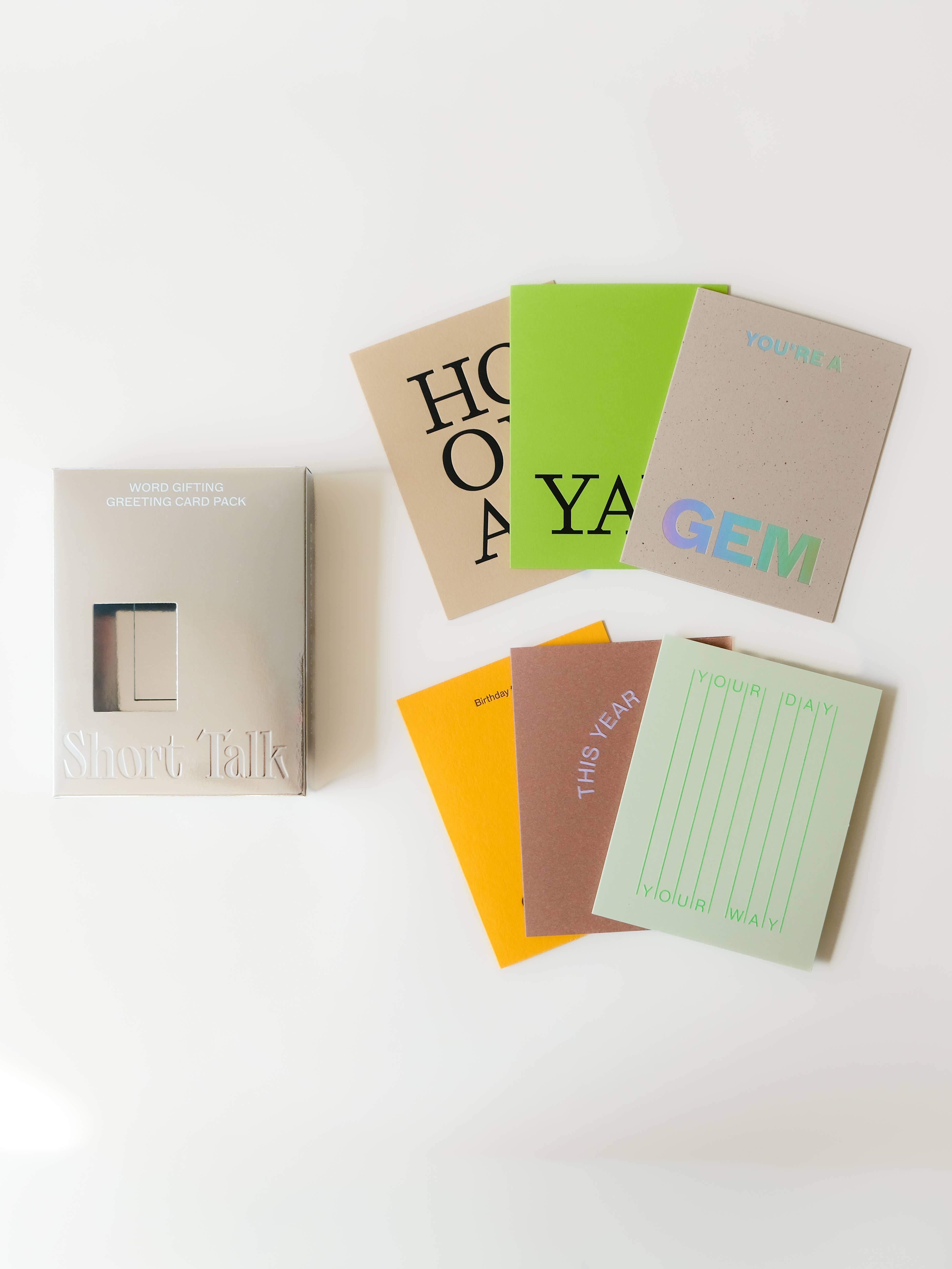 Short Talk is a word gifting brand crafted for moments that truly matter. Borne from a nostalgia for the written word, each card is designed as a testament to the formation of meaningful connection. Short Talk only partners with the best local creatives who share one thing in common: Care Factor. Care for quality, detail, finish and crafting a product that has true meaning. Each card is ethically made using either FSC certified stock or recycled coffee cups and feature a unique mix of beautiful print techniques and finishes such as manual letterpress, embossing and foil. Intentionally blank inside so the writer can say more. Ranging between 300 - 380gsm in paper weight, there is nothing flimsy about us, we feel luxe and are made to treasure.