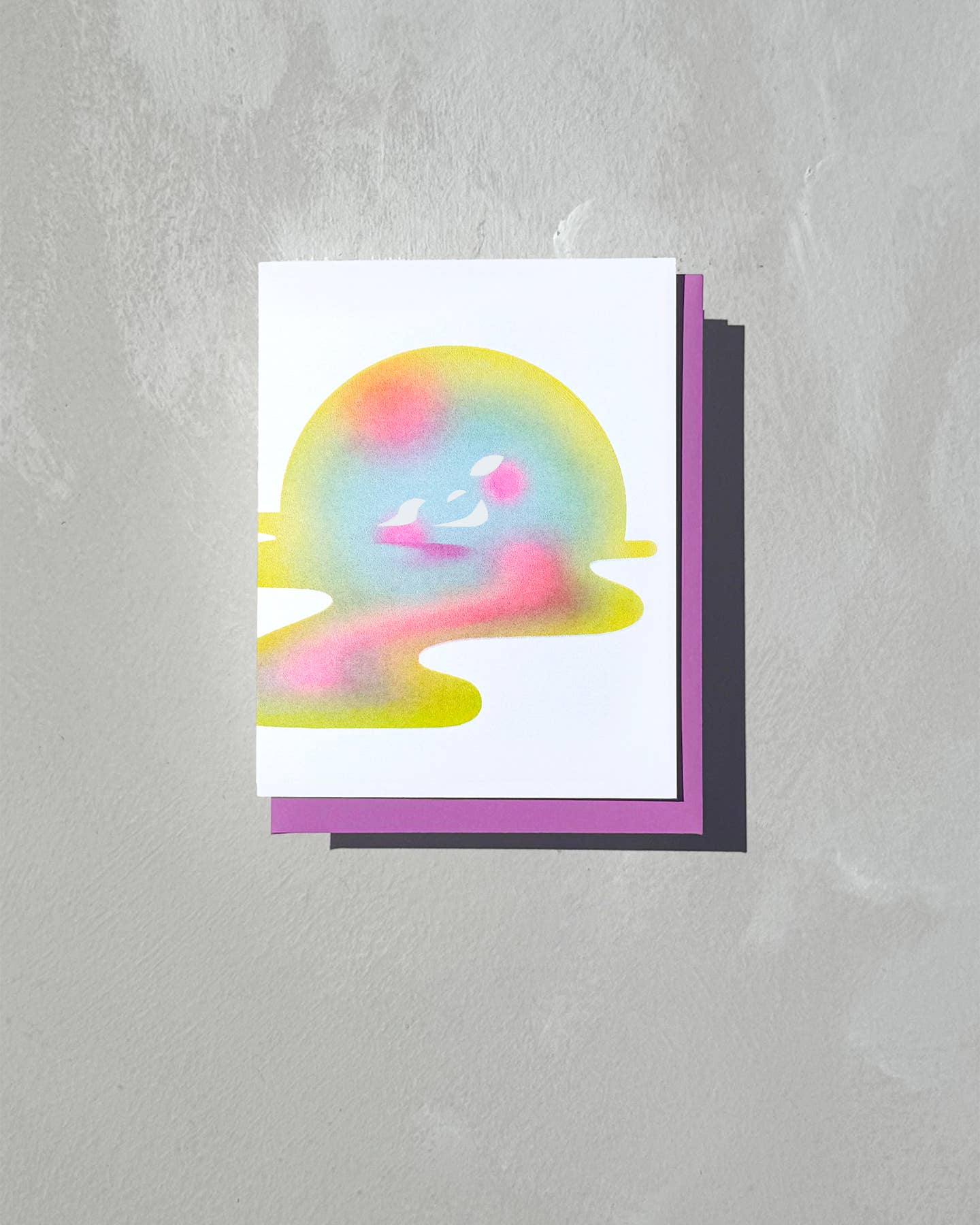 My work is a celebration of change. Thinking about change as the cyclical duality of creation and loss. Creation and loss like ebb and flow, birth and death, inhale and exhale — a constant cycle happening with or without attention. The work frames change as relational practice and a relational experience. Bringing to that experience of relationships, as one that is active and create-able, changeable. Visually, these ideas are explored through format, shape, and color. Repeating or reflecting shapes represent the duality of self — the innate up and down of all things — or to symbolize change across time or context. Color is used symbolically. Gradients are an expression of transformation, of change. The gradient fields connect to observable sky hues during shifting times of the day and year. Robyn A. Frank (they/she) is an artist working across painting, printmaking, and fiber. Their work uses an abstract visual language to explore of concepts of self, change, and creation. They earned a BFA in Printmaking from Pratt Institute and have worked as a professional fine art fabricator and master printers assistant for world-renowned artists and printshops including Takashi Murakami, Y.Z. Kami, GraphicStudio USF, Bleu Acier, and The Lower Eastside Printshop. Robyn currently resides in Albuquerque, New Mexico.