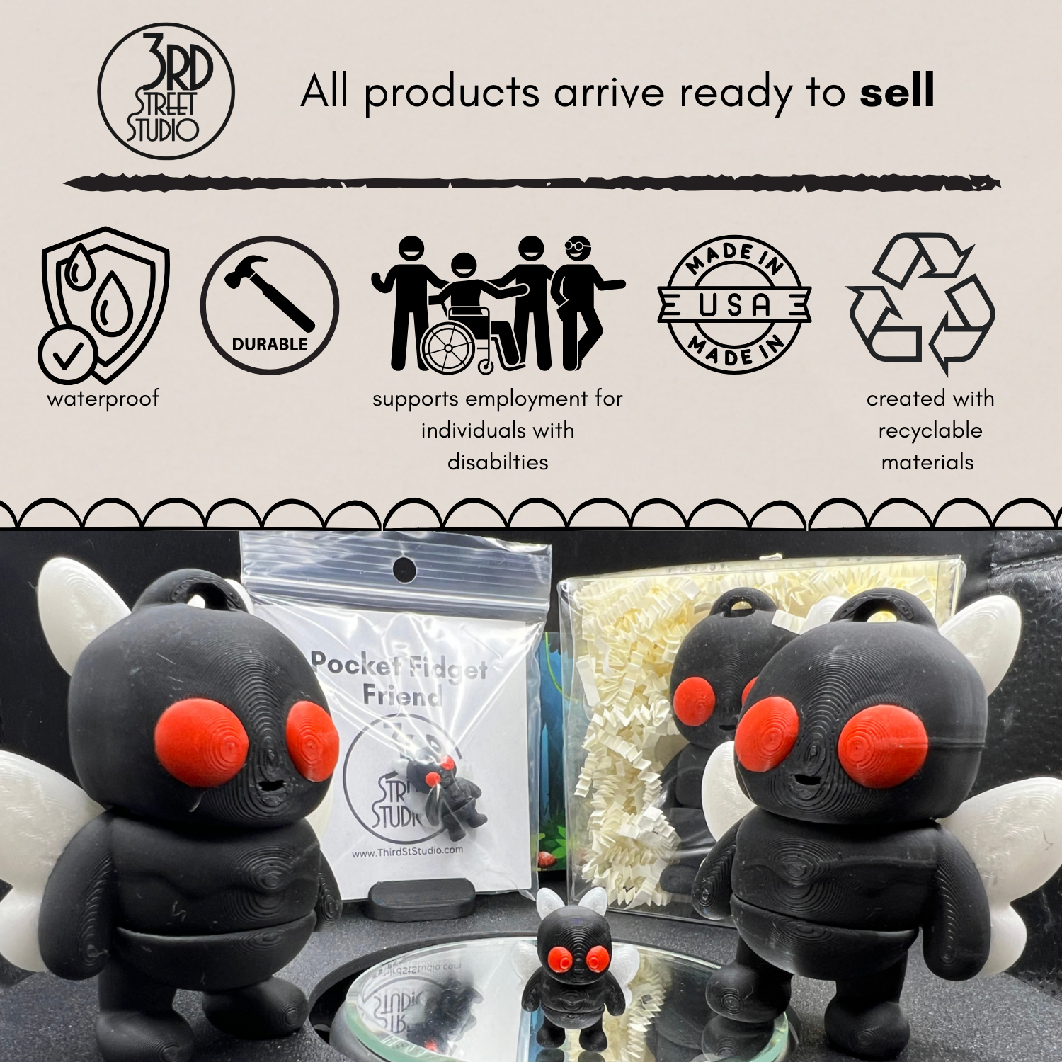 Hello! I’m Terri, the owner of Third St. Studio. Our journey began in 2023 when I found joy in creating hand-painted Fidget Friends while working as a high school administrator. What started as a side passion quickly blossomed into a dream—a business dedicated to spreading joy and creativity through unique, handcrafted products. In the fall of 2023, I courageously took the leap to pursue my dream full-time, and Third St. Studio was born. Our mission is simple: to create delightful novelty items that bring smiles and provide a little moment of happiness in everyday life. What makes our studio truly special is our partnership with CTC Manufacturing, a non-profit organization dedicated to empowering individuals with disabilities through meaningful employment since 1971. By collaborating with CTC, we ensure that each product is packaged with care and purpose, supporting a worthy cause while creating beautiful items. At Third St. Studio, we are excited to offer a unique twist with our collectible Fidget Friends and customizable inserts featuring name-dropped labels. This allows visitors not only to take home a special piece but also to share their experience by collecting inserts that resonate with them. Join us on this delightful journey as we spread joy, one Pocket Fidget Friend at a time!