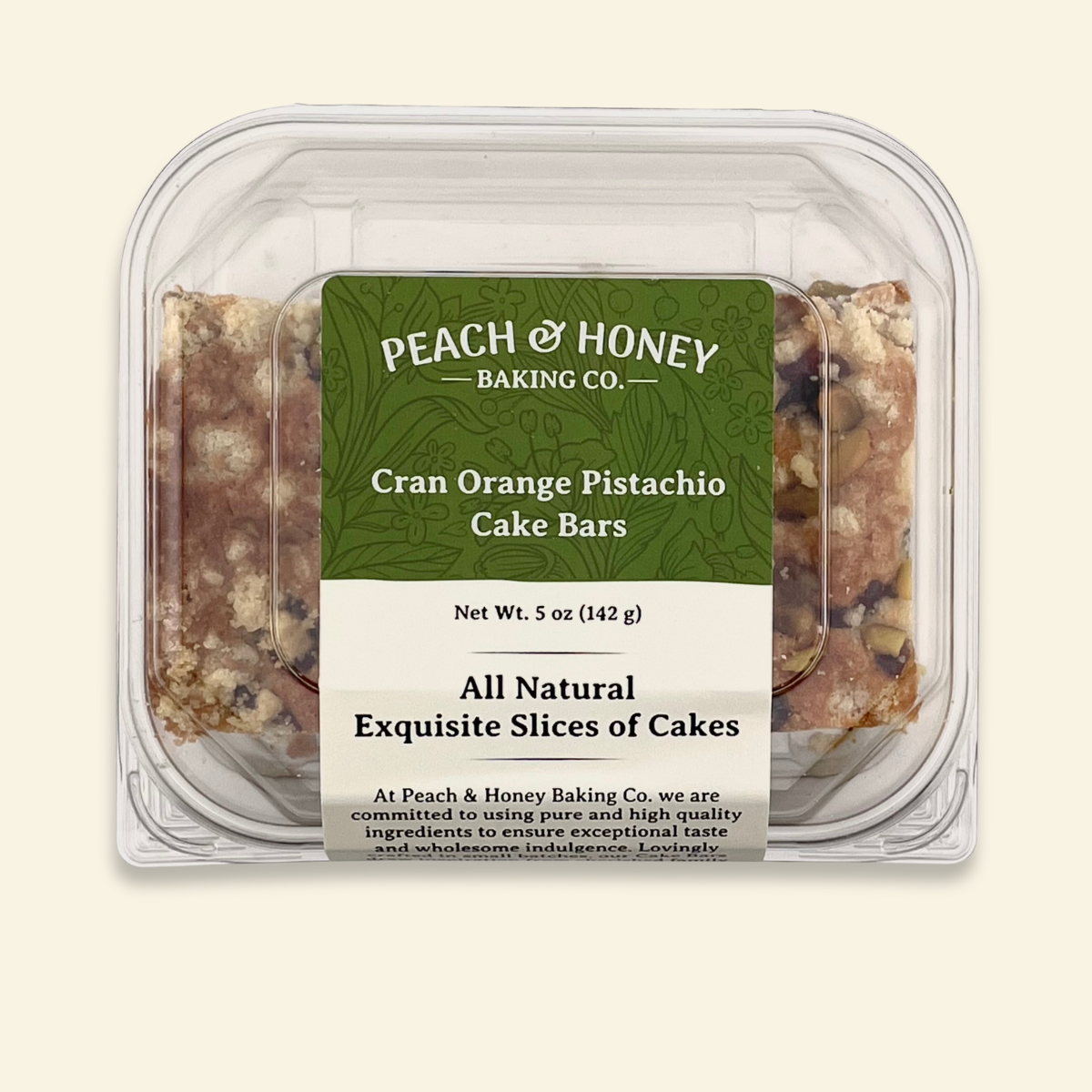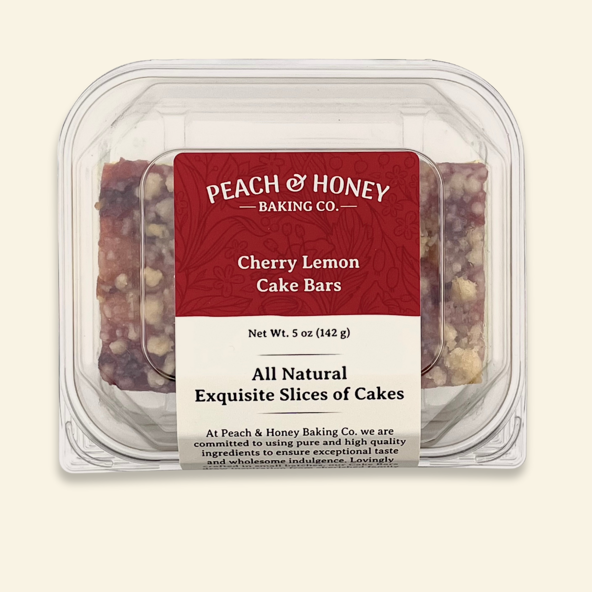 Founded in 2017, Peach & Honey Baking Co. is dedicated to crafting all-natural Cake Bars that bring indulgence back to wholesome snacking. Rooted in simplicity, our Cake Bars are made with real fruit, nuts, and natural ingredients, ensuring every bite is a guilt-free pleasure. From humble beginnings in Michigan, we've grown by staying true to our values: quality, transparency, and a passion for creating treats that nourish the body and delight the senses. Perfect for busy days or special moments, our Cake Bars are designed to fit seamlessly into your lifestyle while satisfying your sweet tooth.