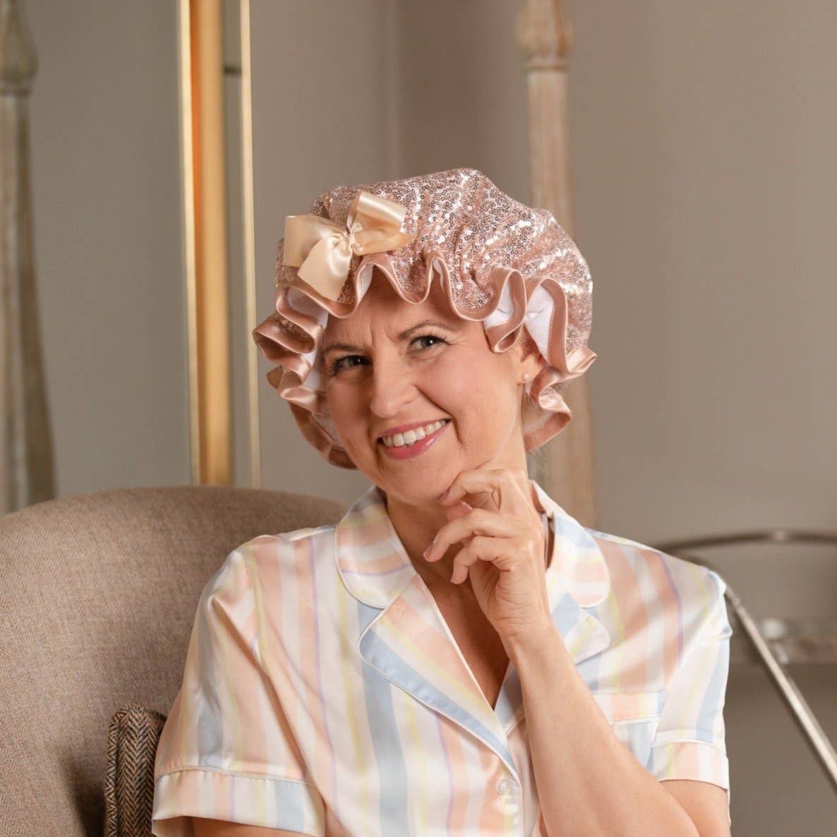 Shower Goddess guarantees the very best quality shower caps you can find anywhere. Our products have been featured in House & Garden Magazine and are also available in Fortnum & Masons. One of the oldest and most prestigious department stores in the world. The genuine love and passion our seamstresses have for creating everyday luxury shower items really shows and our use of genuine luxury material is what sets our products apart. We love what we do and it shows! All our products are handmade with love from our own studio here in Edinburgh, Scotland. All our materials are sourced and made in the UK too are truly of the highest quality. Shower Goddess products are designed for years of use and are built to last for many years. We take no shortcuts in delivering a genuinely luxury handmade product and the one thing our amazing customers keep saying to us is that our shower caps bring a smile to their face every day! This is the feedback we strive for and what motivates us to consistently create beautiful products. We hope you'll love our products too and don't hesitate to get in touch if you have any questions.