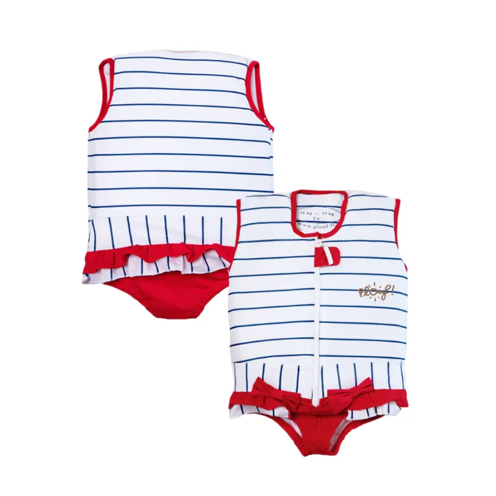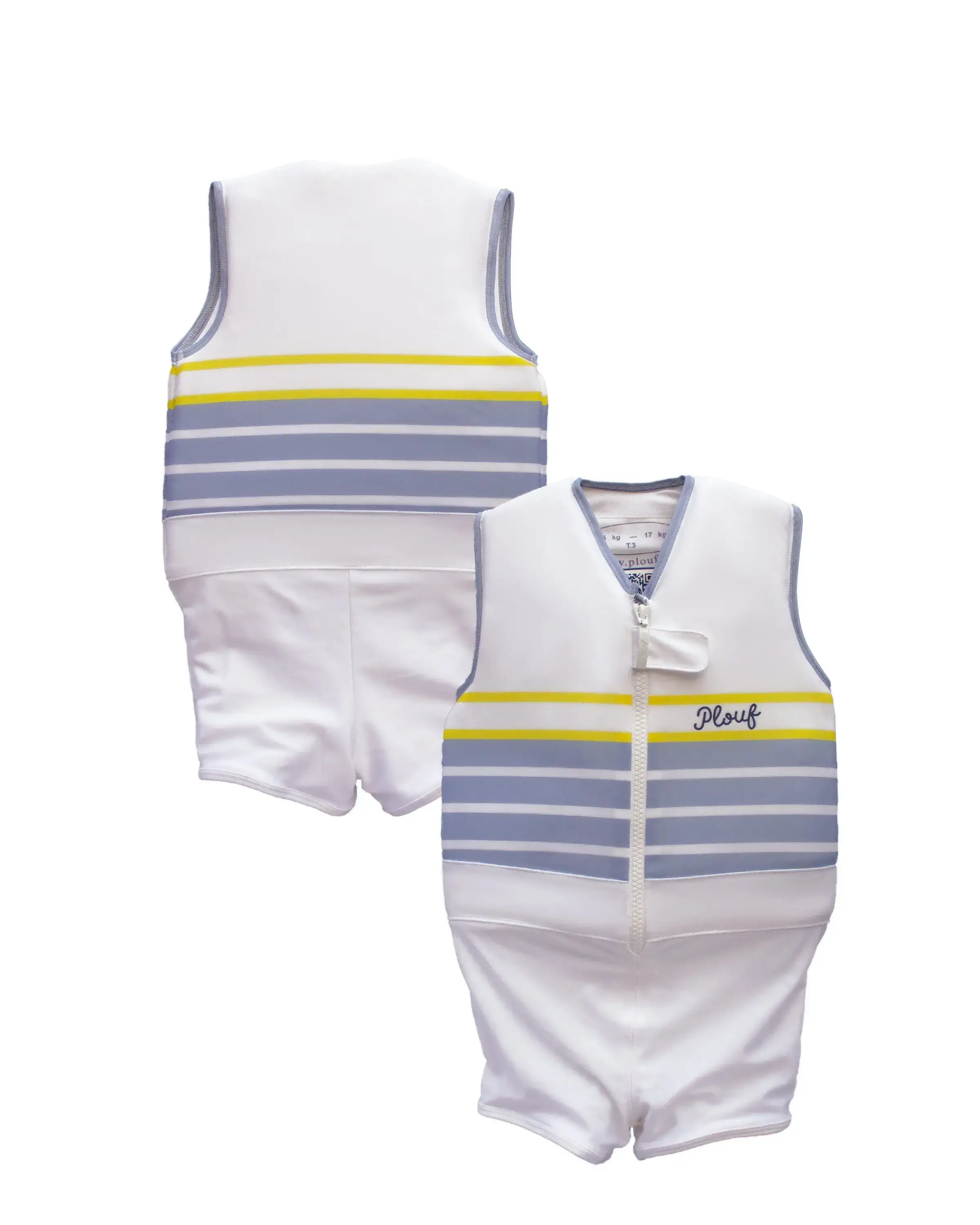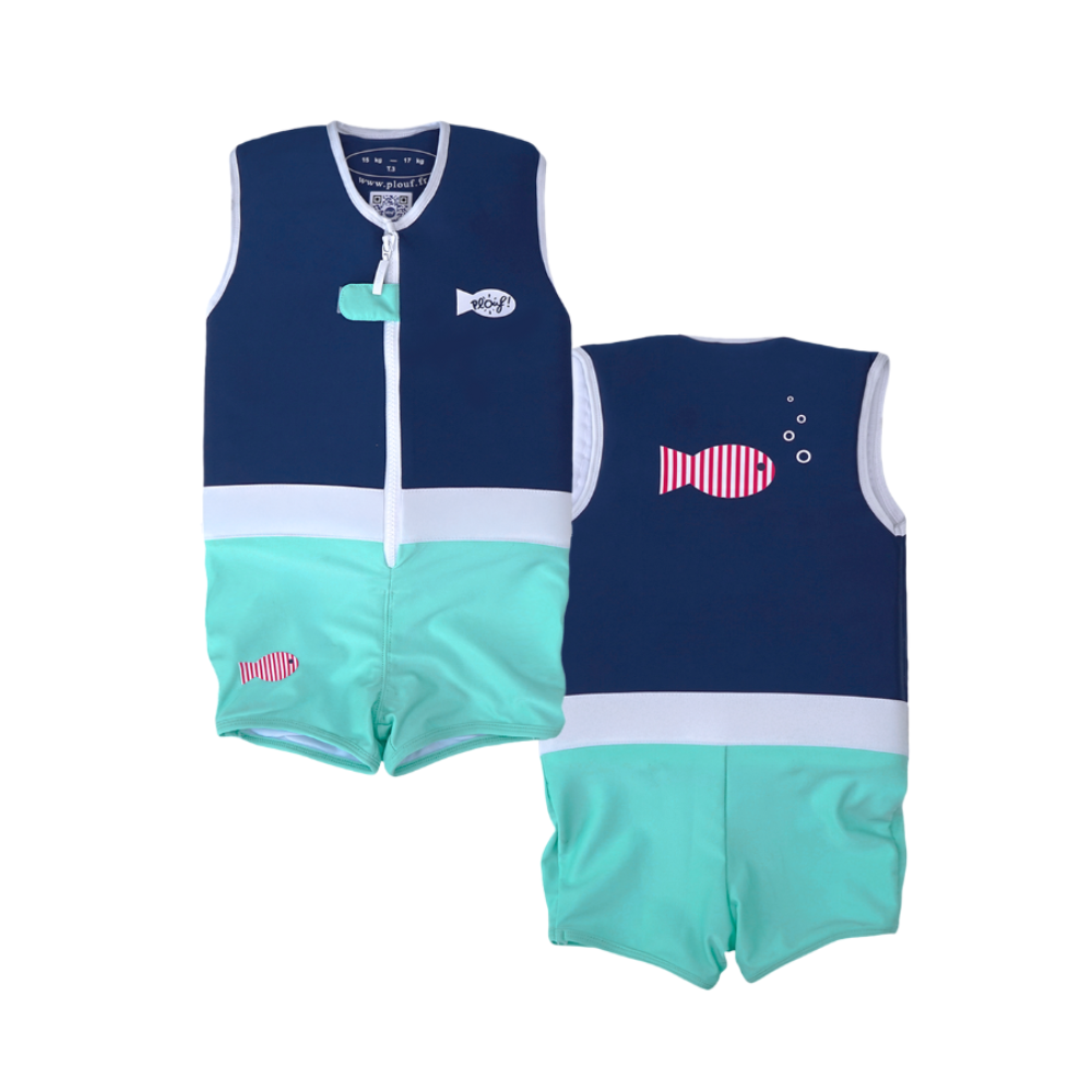 Plouf floating swimsuits were born as a result of a manufacturing error in a factory. A distracted engineer who injected too much air into a batch of fiber. A Frenchman crosses his path by chance and discovers that this material can be useful to make children float and help them learn to swim. This follows 2 long years of research and development to adapt and optimize this fiber, so that it can be inserted into a swimsuit. Proud of its creation, our brand has filed a patent protecting its technicality, and has approached certifying bodies to comply with European safety standards. But there was no standard for flotation accessories for children. Plouf therefore brought its expertise to CRITT for the creation of a European standard (NF EN 13138-1) and was naturally the first to be certified. For more than 20 years now, Plouf has reassured parents as well as children thanks to swimsuits containing 97% air. These floating swimsuits allow children to learn to swim safely, and with free movement. The quality and style of the French Touch for our children!