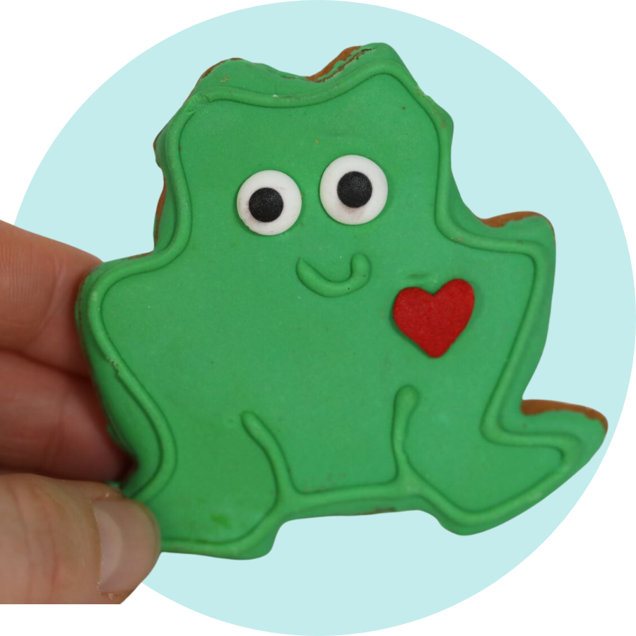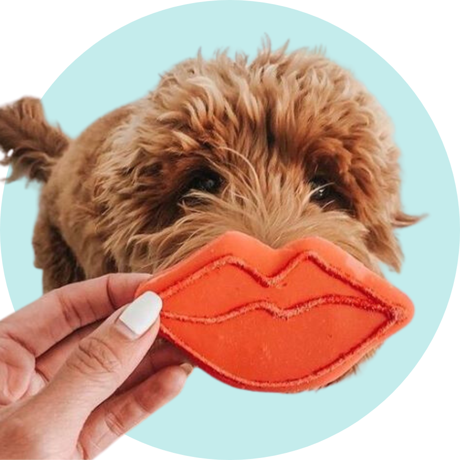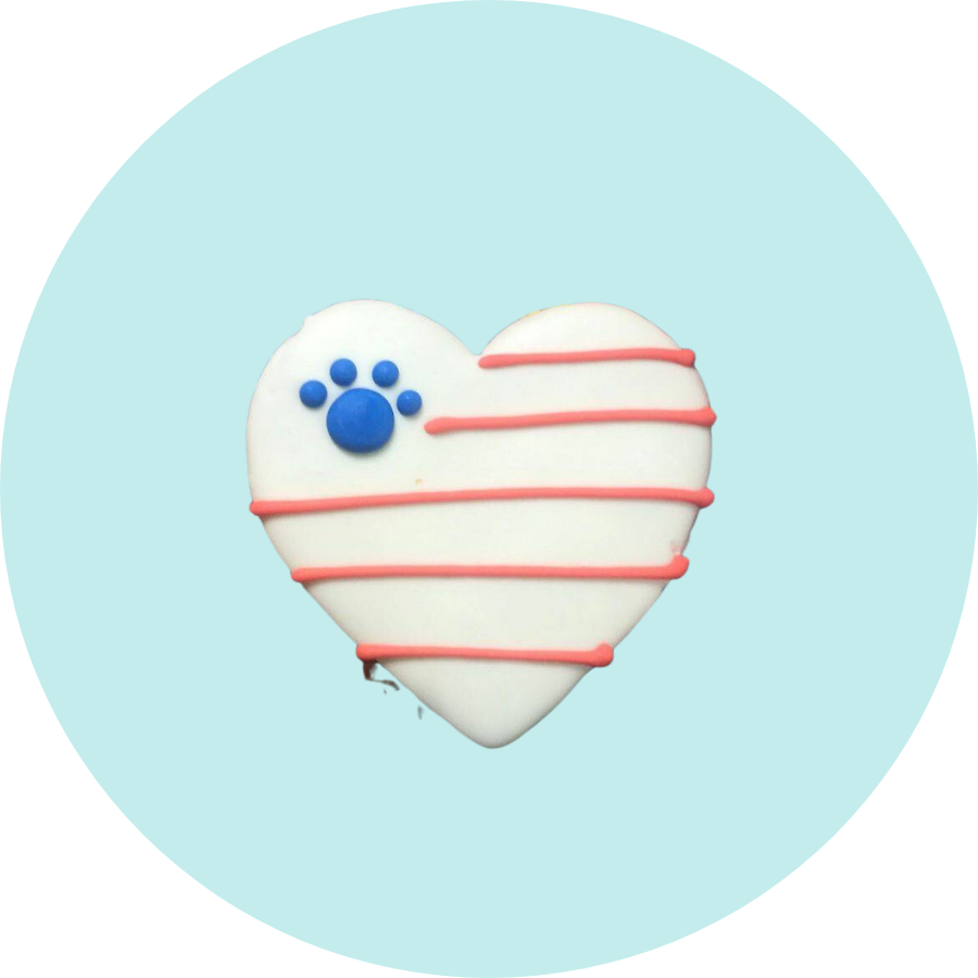 We've been making handmade dog cookies and cakes with the same formula for over 20 years! Our cookies and cookie cakes use 4 ingredients you have in your home today: Flour, honey, vegetable oil, vanilla. Our dog cookies are so pure, you can eat them too! We do!