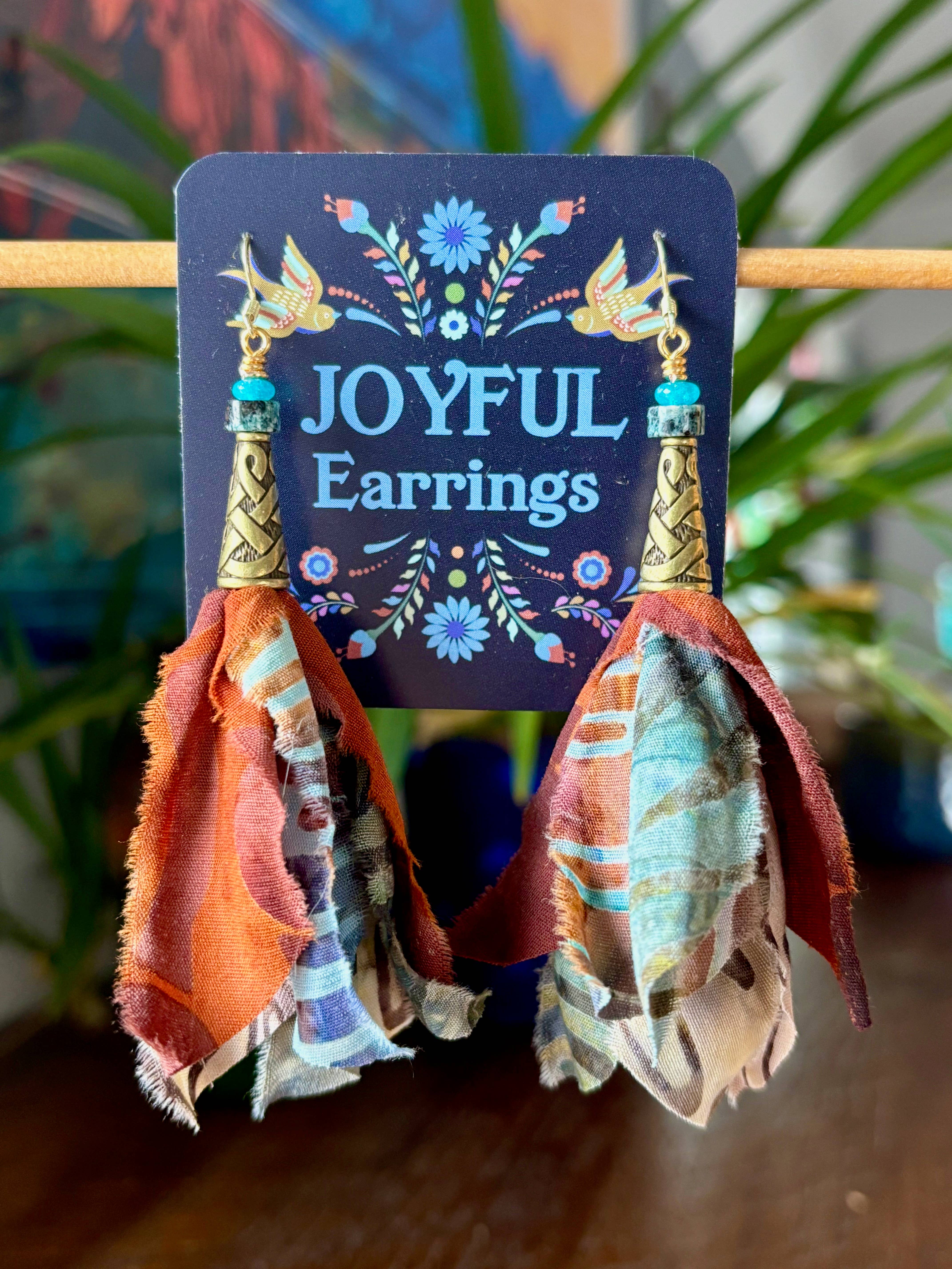 Handmade Joyful Flags began in 2016 as Christmas gifts for friends. After finding a deep desire to have a more mobile lifestyle, owner and creator of Joyful Flags, Hanni Bernhart decided to invest fully into the brand. Joyful Flags are intended to share joy and hang in places that bring joy. They are a perfect addition of color and laid back energy to any space. Wonderful to take camping or decorate that travel van. Joyful Flags are incredibly popular in gardens and add peaceful animation to any outdoor space. Durable and long lasting, Joyful Flags are the perfect reusable celebration decor. Joyful Flags are amazing for display, the inventory rolls into great little gift packages that fill a basket. The display flags are great over a window so you can utilize that space in your store to showcase products. The Joyful Earrings line was a spin off of the flags, using up the fabric that was remaining from hand cutting the flags. Waste was no go, so Joyful Earrings was born! They have been a huge success and are loved by the retail shops that and buyers. They are the most effortless way to add a vibrant statement to any outfit.