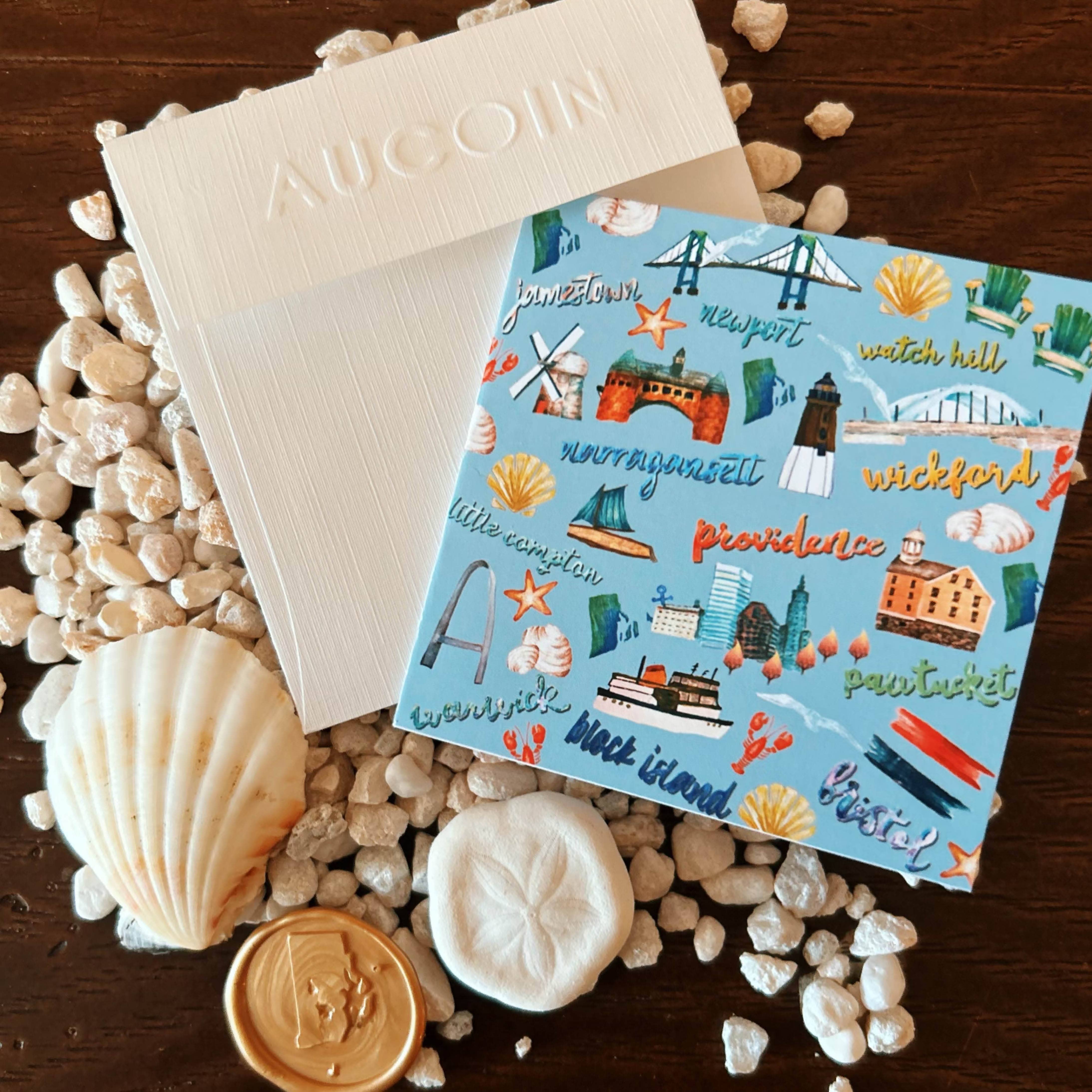 AUCOIN was founded by graphic designer and photographer, Kayla Aucoin. AUCOIN launched in 2013 with the intention of helping small businesses explore advertising through brand development and awareness. Over the past nine years, Kayla has experimented in all areas of marketing and design from fashion + styling, art direction + set design to event PR + retail marketing. Whether it is a still graphic on the computer or through the lens of her camera, Kayla has an eye for presentation and the artistic ability to create a composition through her understanding of color, light and textures. In 2020, Kayla created the stationery + tablescape divisions of AUCOIN and joined the artisan market circut. All stationery designs are hand illustrated, wax seals are hand pressed and detailed and all printing, cutting and assembling is down right at home in North Kingstown, Rhode Island.