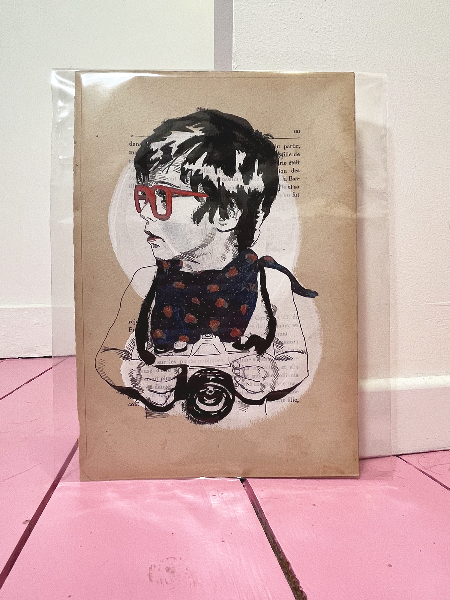 The pink weasel is for me the way to create visually poetic works, inspired by the little joys of everyday life. These fleeting moments, magical and innocuous at the same time, these evidences of shared love, of joie de vivre, I like to imagine them between sparkle and nostalgia, candid but a little offbeat too. Each work is unique since working and reworking with different tools.