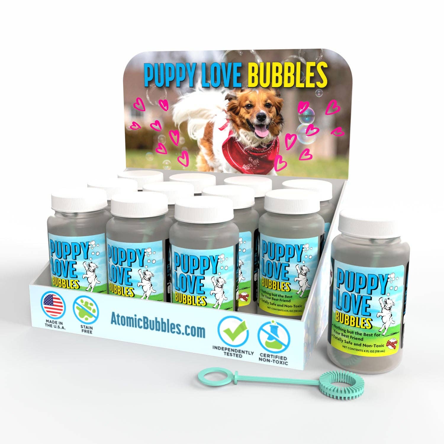 "Bring love, joy, and peace to people through bubbles.” That’s the mantra of husband-and-wife team John and Beth Reider, who took the bubble business by storm twenty years ago. John, an aircraft engineer, and Beth, an orthopedic physical therapist, also go by the nicknames Bubble Man and Bubble Lady. Their bubble journey started with a crazy purchase- buying out the original glowing blacklight bubble, called Tekno Bubbles®, from its inventor. Their love of bubbles led to a full-blown mobile event business called the Bubble Bus which has franchises in 3 states. Today, Atomic Bubbles has its very own bubble factory in Shrewsbury, MO and a wildly popular line of pet bubbles, called Puppy Love and Kitty Love. Atomic Bubbles actively supports nonprofits benefiting both pets and people, including Purina Farms, Make A Wish Foundation, Ronald McDonald House, Kids Rock Cancer, The PVA (Paralyzed Veterans of America), Autism Speaks.