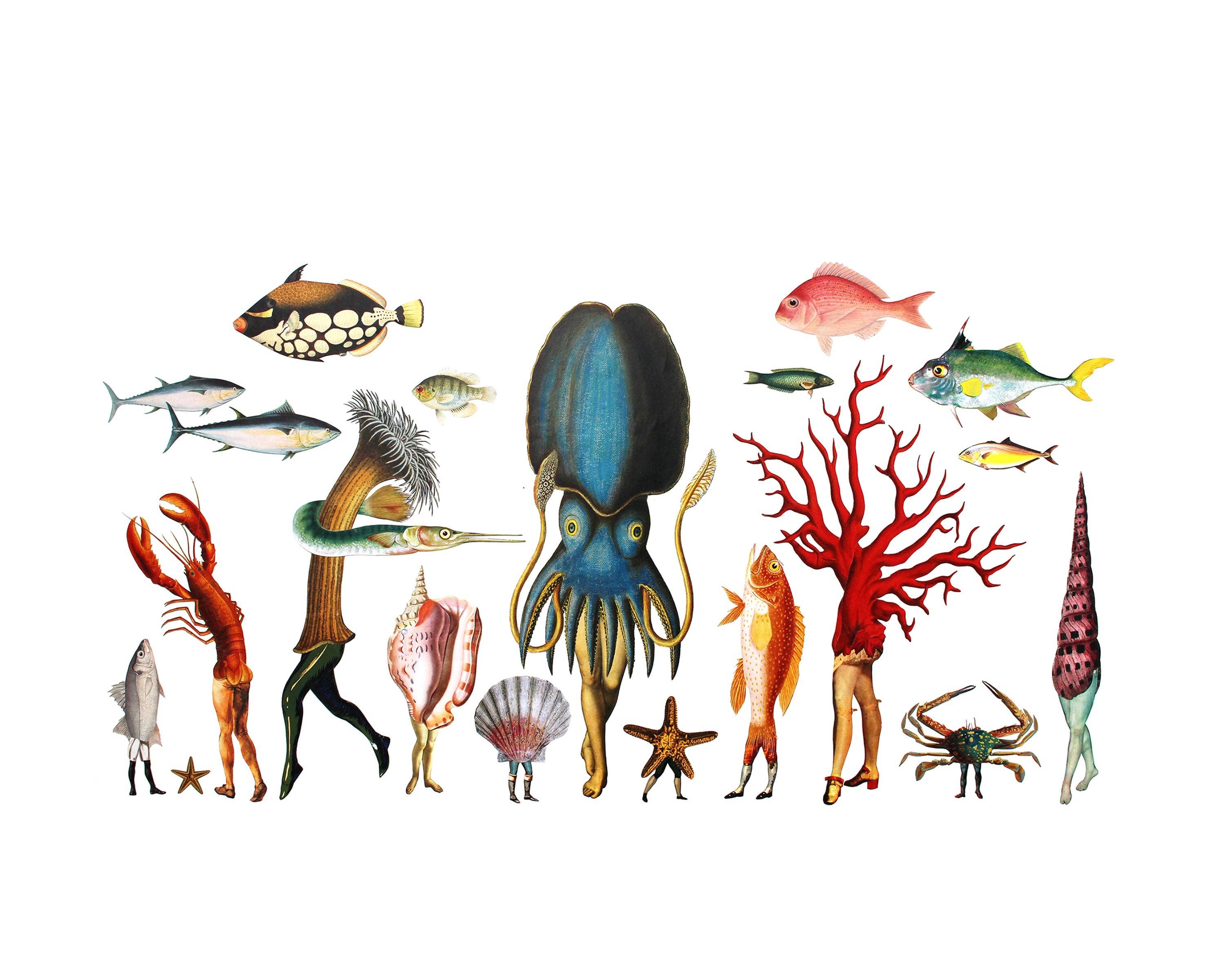 Nature Morph offers a fantastical vision of the natural world. Sea creatures roam on human legs, mushrooms sprout animal heads, and deer antlers grow into flowers. Artist Amy Ross creates these weird and wondrous hybrid creatures in her studio using the most basic of collage tools: hands, paper, scissors, glue. Through Nature Morph, Amy makes giclée prints of her collaged images.