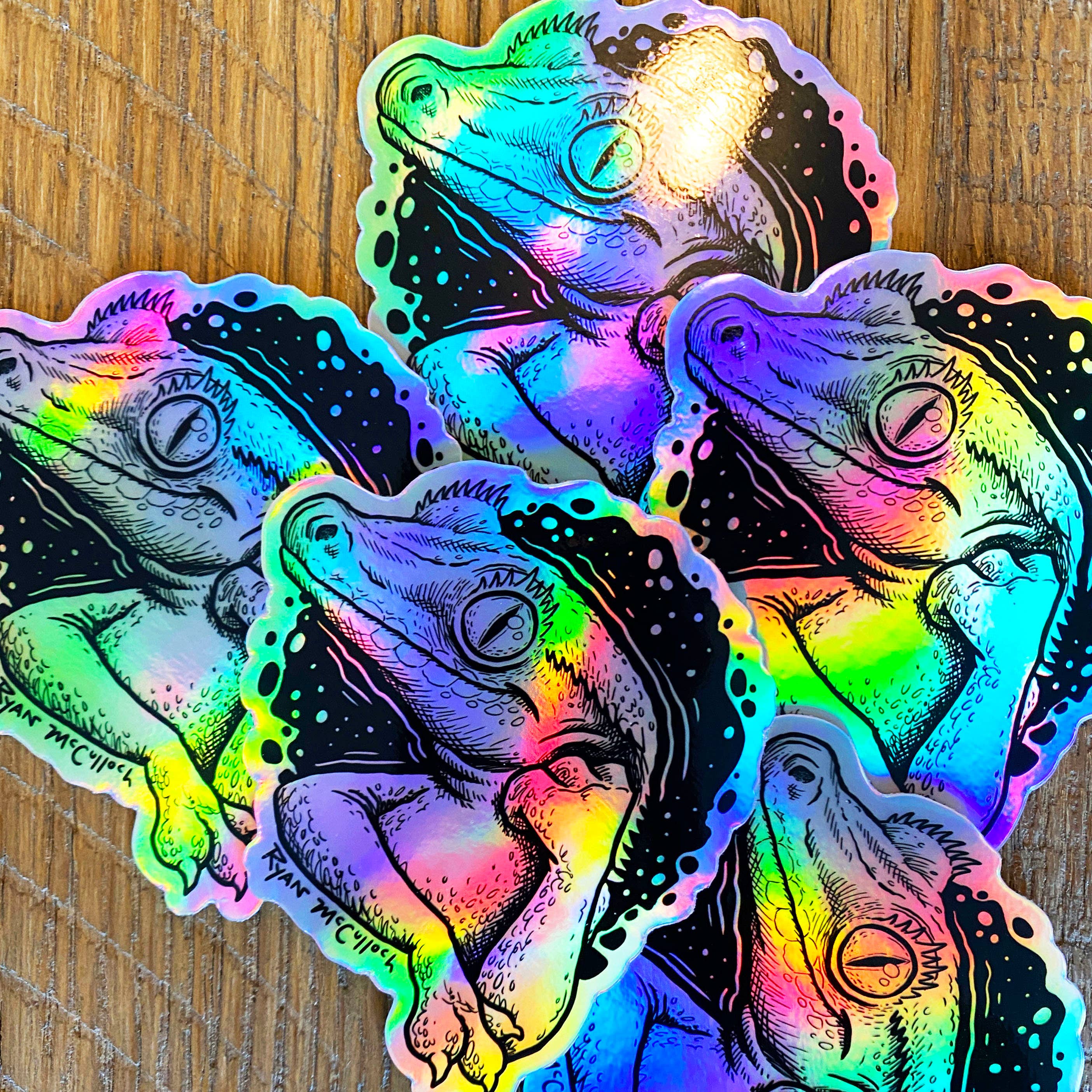 My shop focuses on Premium Waterproof Stickers, highlighting specialty materials like holographic, transparent, glitter, glow-in-the-dark, 3-D and more! These vinyl stickers are extremely durable, and UV-protected too! My artwork revolves primarily around my love of animals.... and usually my obsession with food as well! It makes me so happy to have my stickers in so many shops around the country. And the fact that these shops come back to restock multiple times a year, really makes me proud! TESTIMONIAL: "Our customers love Ryan’s stickers, they fly off the shelf! A reflection of his imagination and creativity, his designs are ingenious. It’s great seeing people light up when they look at them." -Ever Evolving Exotics, Tucson AZ