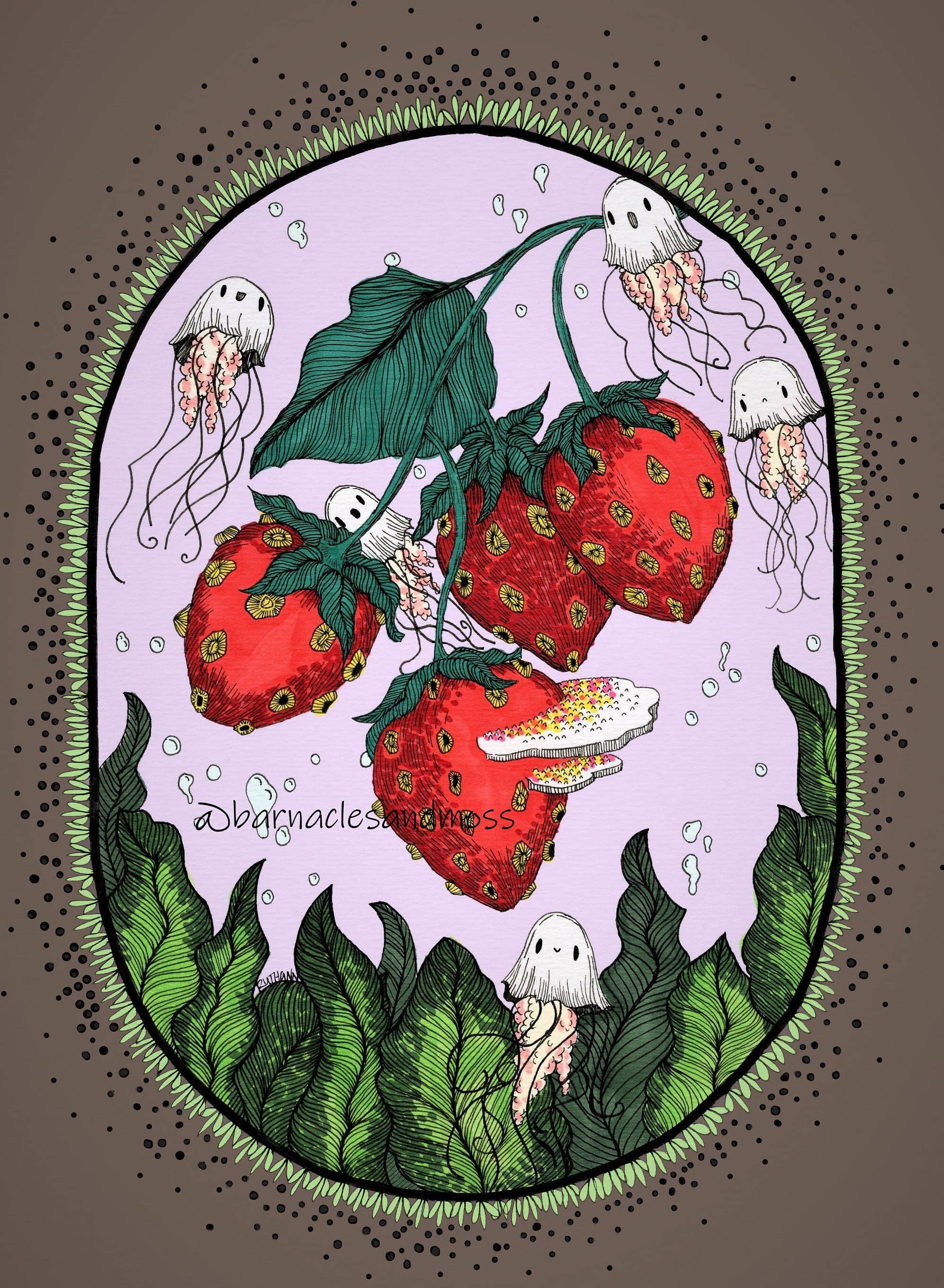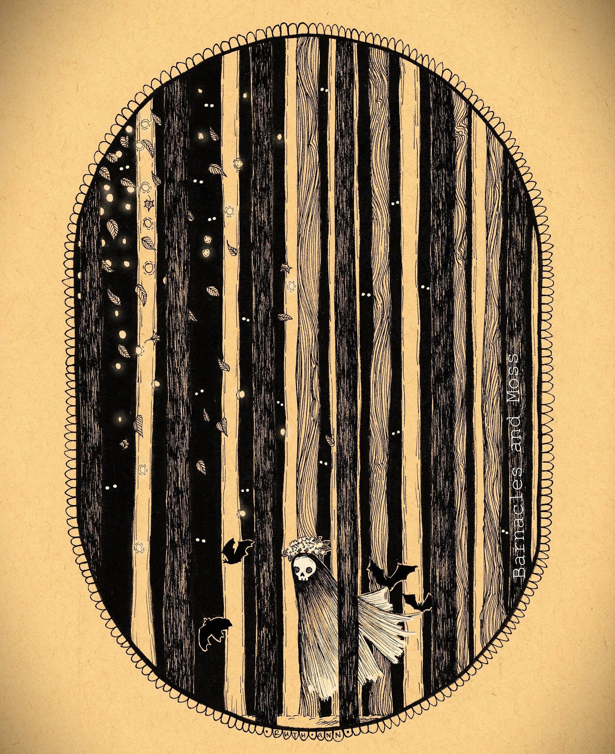 Ruth Ann is the self taught illustrator behind the title Barnacles and Moss. Ruth Ann uses her love of horror, folklore and storytelling to create intricately detailed illustrations that are full of both darkness and whimsy. Although her detailed artwork gravitates toward a spooky atmosphere, her goal is to always shine a positive light on creatures and ideas that might otherwise be considered ugly, scary, or lost.