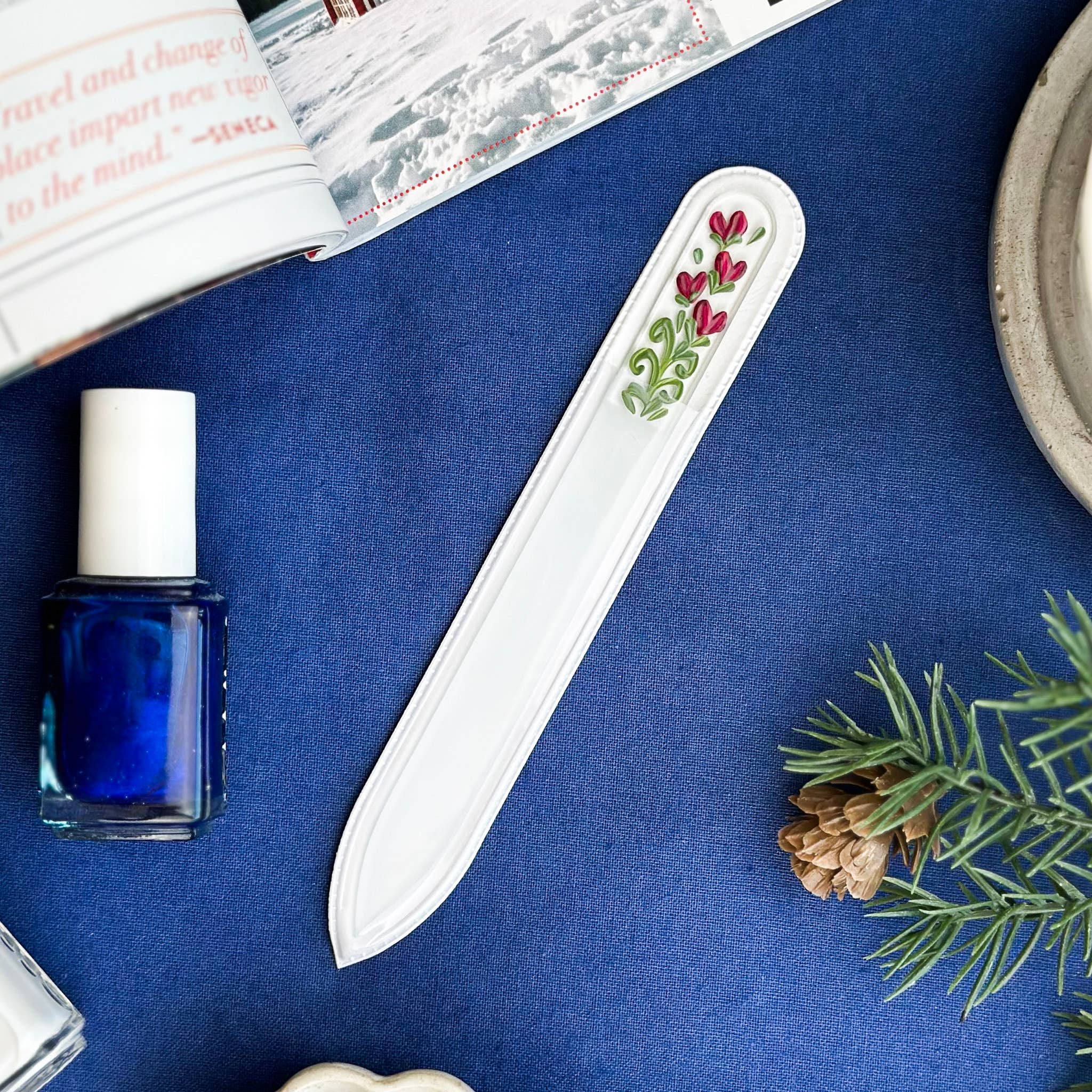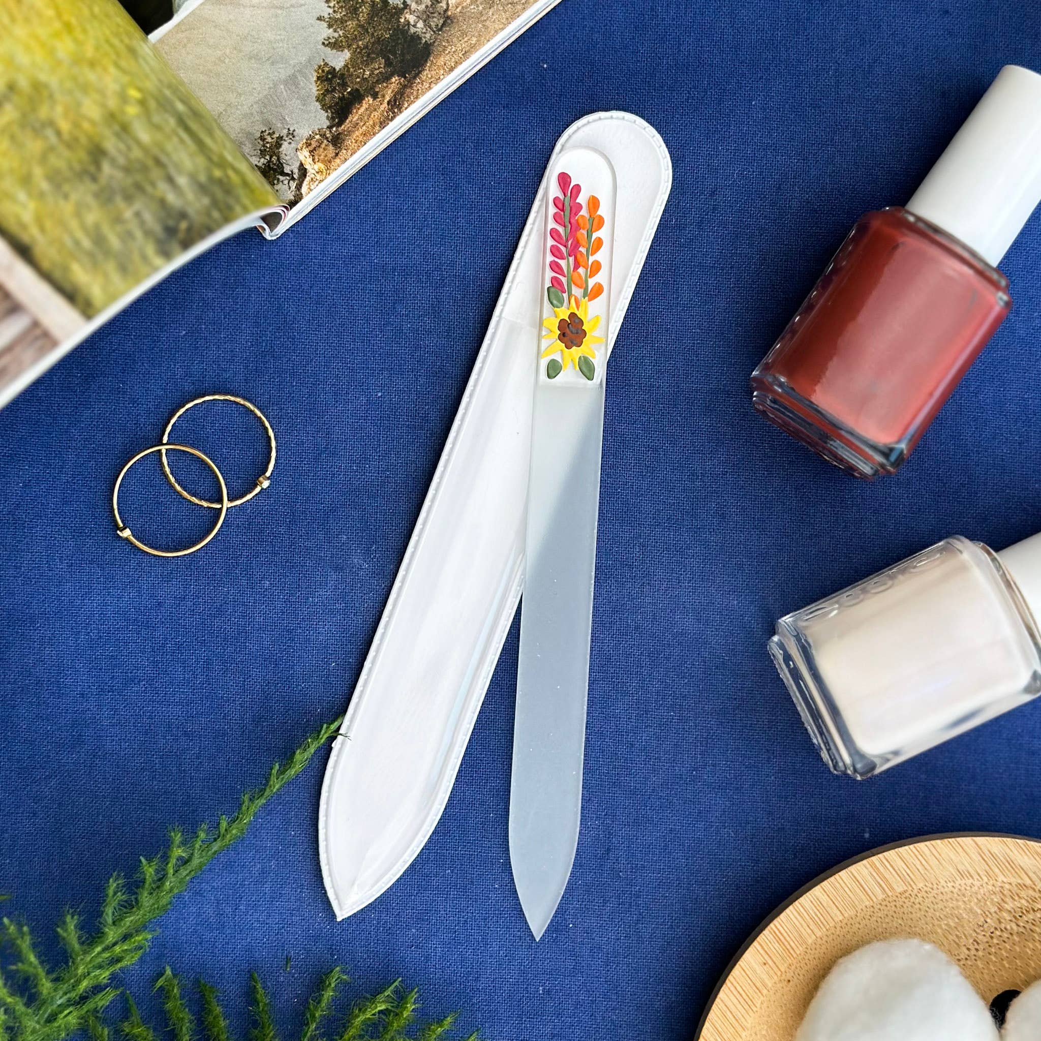At Blue Lemon Art our mission is to replace throw away emery boards, which tear and damage your nails, with adorable top quality glass files that can last a lifetime! Every design is hand-painted by Arizona artists and many center on a love of plants, animals, the natural world and our southwestern landscape. We hope that our tiny paintings bring you joy every time you use your nail file!