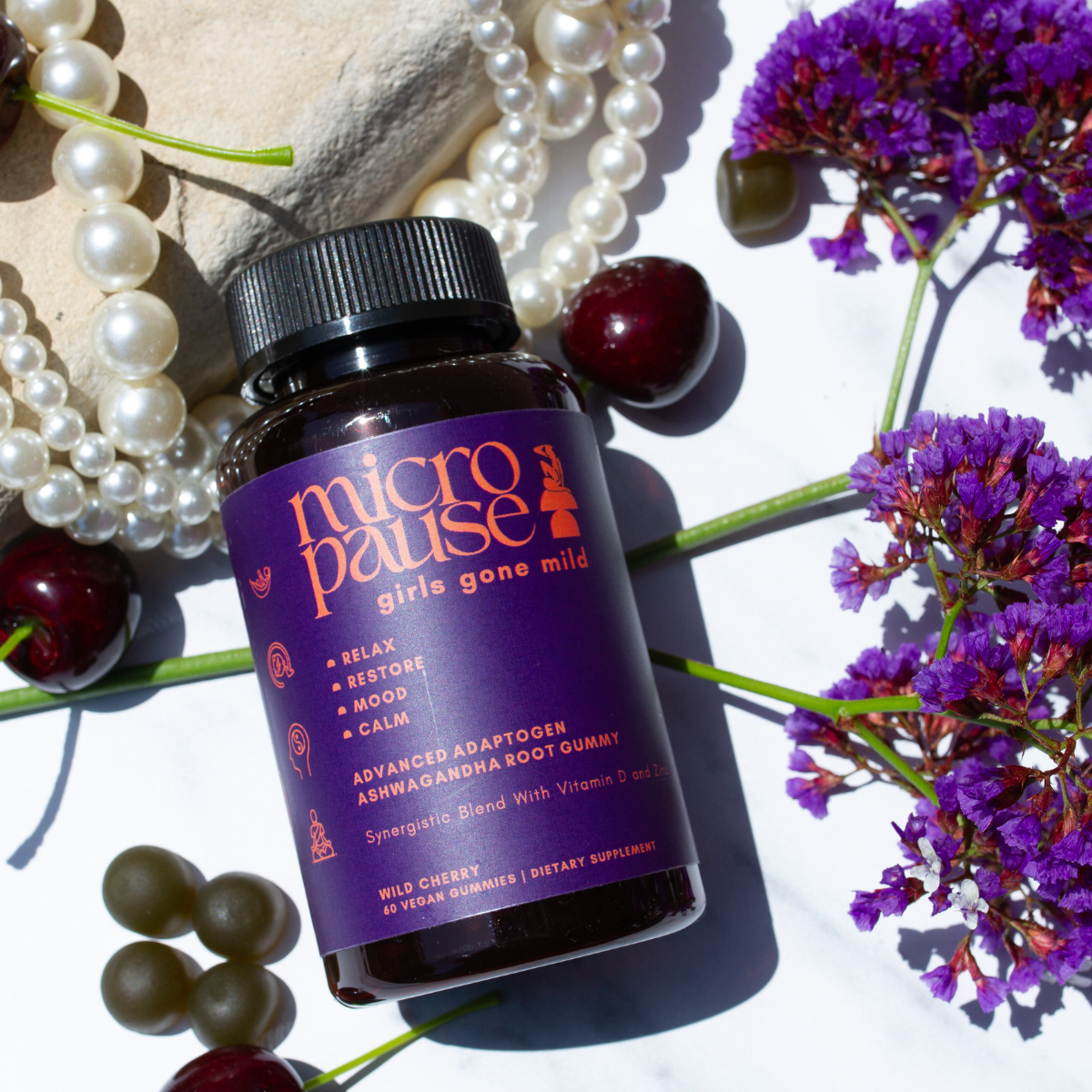 Wellness Gummies For Women in Our Give Zero F*cks Era. Midlife health is complicated. Your daily support shouldn't be. Delicious functional mushroom, botanical and adaptotgen powered symptom support gummies formulated to relieve the midlife mayhem of perimenopause. Our gummies are a unique synthesis of science and nature designed to bring you back into balance so you can reclaim your brains, body, beauty and bliss. I am thrilled to introduce you to Micropause, a brand born out of my own personal journey and a a profound passion for supporting women on their path to holistic wellness. It’s time to ditch the myth that midlife means we’re invisible, irrelevant, and no longer cool. We’ve never been cooler. But, unfortunately, we’re also hotter and a million other things we were totally unprepared for because no one talks about it. We’re done with spiraling in shame and suffering alone with our symptoms. Micropause™ is here to relieve your midlife mayhem, as you move through perimenopause, with natural holistic relief. And while we’re at it, reframe and reclaim this amazing time of life, together. Because we know our best days are ahead. Especially now that we feel like ourselves again. With Micropause, my mission is clear: to offer women a straightforward daily wellness ritual tailored to help you thrive in modern midlife. Third Party Tested, Gluten Free, GMP Certified, Non-GMO, Women Owned, Vegan (except for All Glown Up).