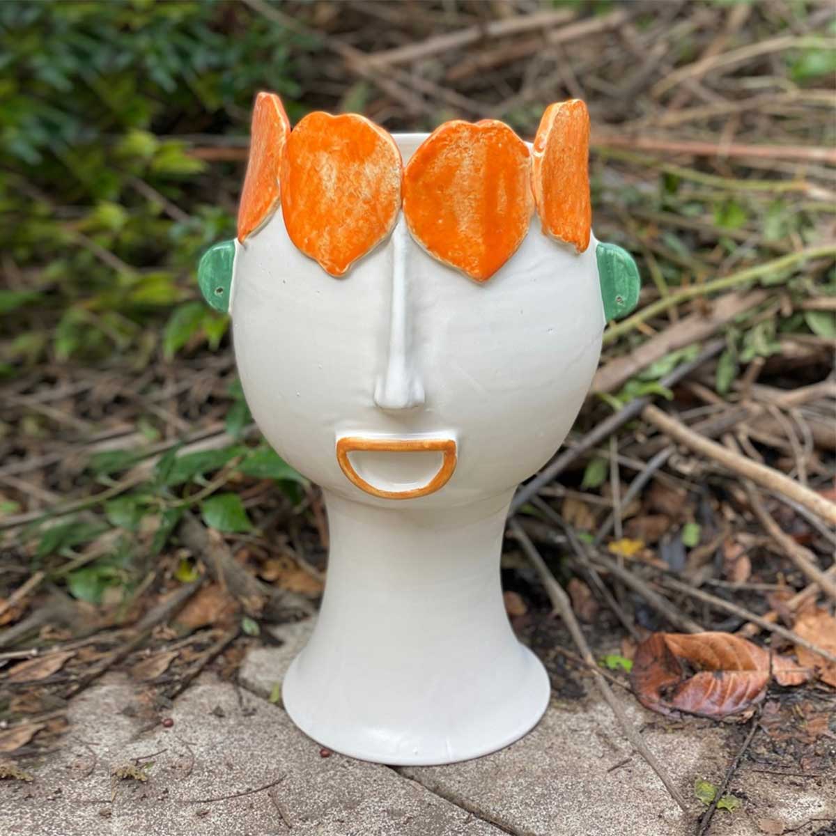 I live in Sicily, between the sea of the Aeolian Islands and my city: Palermo. Filicudi is a source of inspiration and research for me. Ceramics have always been my passion. Manual work and creativity have accompanied me at every moment of life. From a very young age, I exhibited my works in Milan, New York, Tokyo, the United Arab Emirates, and other countries. I started working again after a long period of inactivity by opening a new space with a garden, which I call my little studio. My great passions, clay and the sea, have always been with me. Filicudi is an accomplice in my life, a magical island that I love dearly with its colors, scents, endless landscapes, sunsets, mule tracks, dry stone walls, and its sea, azure, green, blue. Sicily, with its cultural richness and millennia-old traditions, is for me an inexhaustible source of inspiration. The colors that surround me, the enveloping scents, and the atmosphere of my island are reflected in the objects I create and with which I like to tell a story, an emotion, a vision of my world. Through their shapes and details, I try to convey this magic made of symbols, but not without irony. My collections represent the fruit of this passion and my personal research. They are enriched day by day with pieces of contemporary design, created by combining creativity with artisanal care and interpreted in an ironic way. I tell the love for Palermo.
