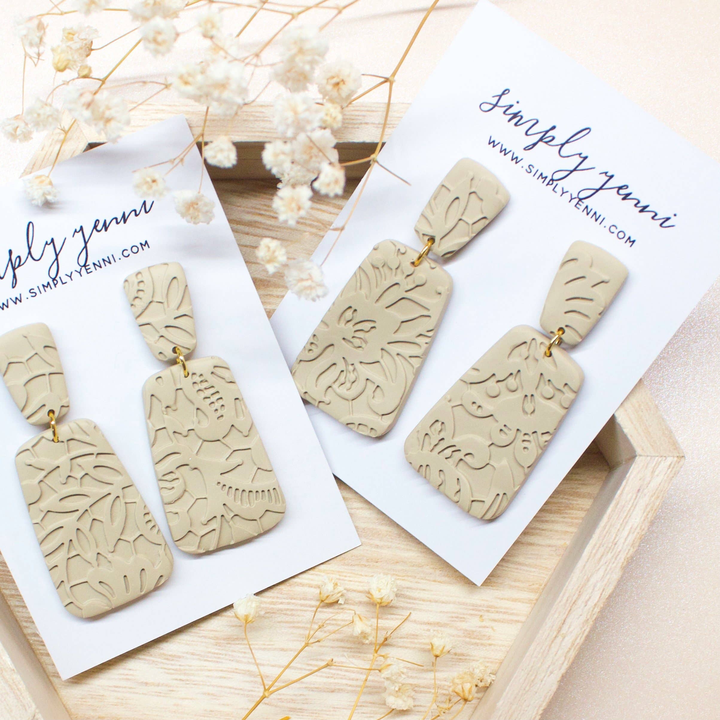 Simply Yenni was born out of the desire to provide meaningful, affordable, and lightweight accessories that remind women of God's unending grace. I hope my jewelry encourages women to shine their light brightly, naturally, and freely onto those around them! Simply Yenni started as a creative outlet - a hobby, really - resulting from crippling fear and anxiety of losing a parent through terminal illness. After the unfortunately passing, it was through Simply Yenni that allowed comfort, light, and joy to be rediscovered back into reality. So, why polymer clay earrings? I've always been an earring gal. Yep, statement earrings were my JAM! But goodness, they were so incredibly heavy. Earrings aren't just something I started to make because it was a "trend." I've always had a desire to create my own because to me, they are just as much as a part of me as my smile! It's a big part of why I am so passionate about making earrings. I couldn't leave the house without them, whether they're bold statements or tiny studs. Polymer clay is not pretty in itself, but I loved the idea that I could mold, mix, make, create whatever I wanted in my own unique way, the same way God created me and you! And they are so lightweight that even the largest pieces are perfect for everyday wear.
