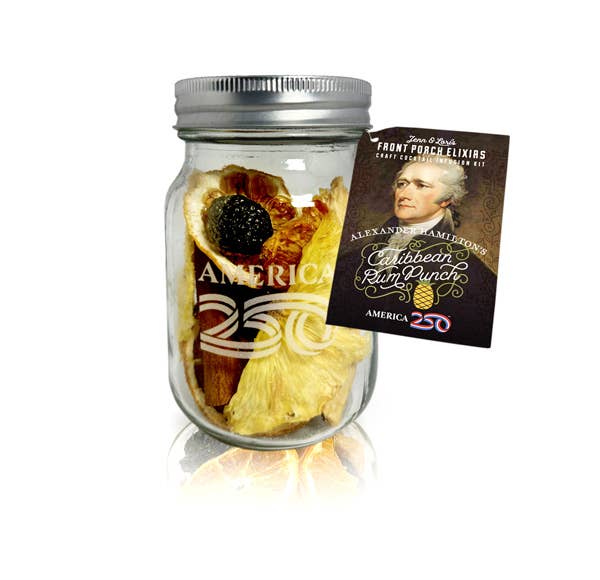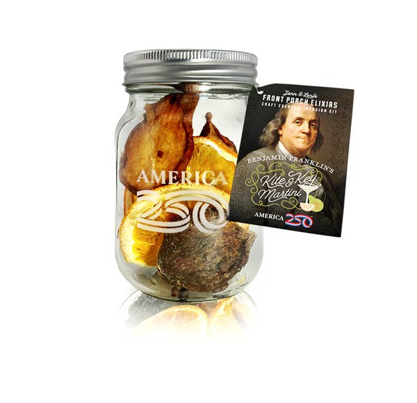 Front Porch Elixirs is owned and operated by two South Carolinian women....both from pretty different backgrounds but both with a passion for food and drink. One, a military widow and mother of two, who grew up in the south with lots of moving around this amazing country of ours! The other, an ex-pat from Canada, who feels more at home in her adopted country and especially loves everything in the Carolinas! And now we get to celebrate the 250th Anniversary of the Signing of the Declaration of Independence! We recently joined up with America 250 to bring you 4 more amazing flavors to commemorate our amazing country. Happy Birthday to you this United States of America! Each Front Porch Elixir jar has everything in it to make an incredible cocktail! We did the hard work for you! Just add your choice of spirit, add the desired included sugar cubes (separately packaged) to taste, let it sit in the fridge for 24-72 hours, and pour. Enjoy straight up or add your own mixer, sit back and enjoy! A real "perpetual cocktail". Each jar can be filled up to 3 times.