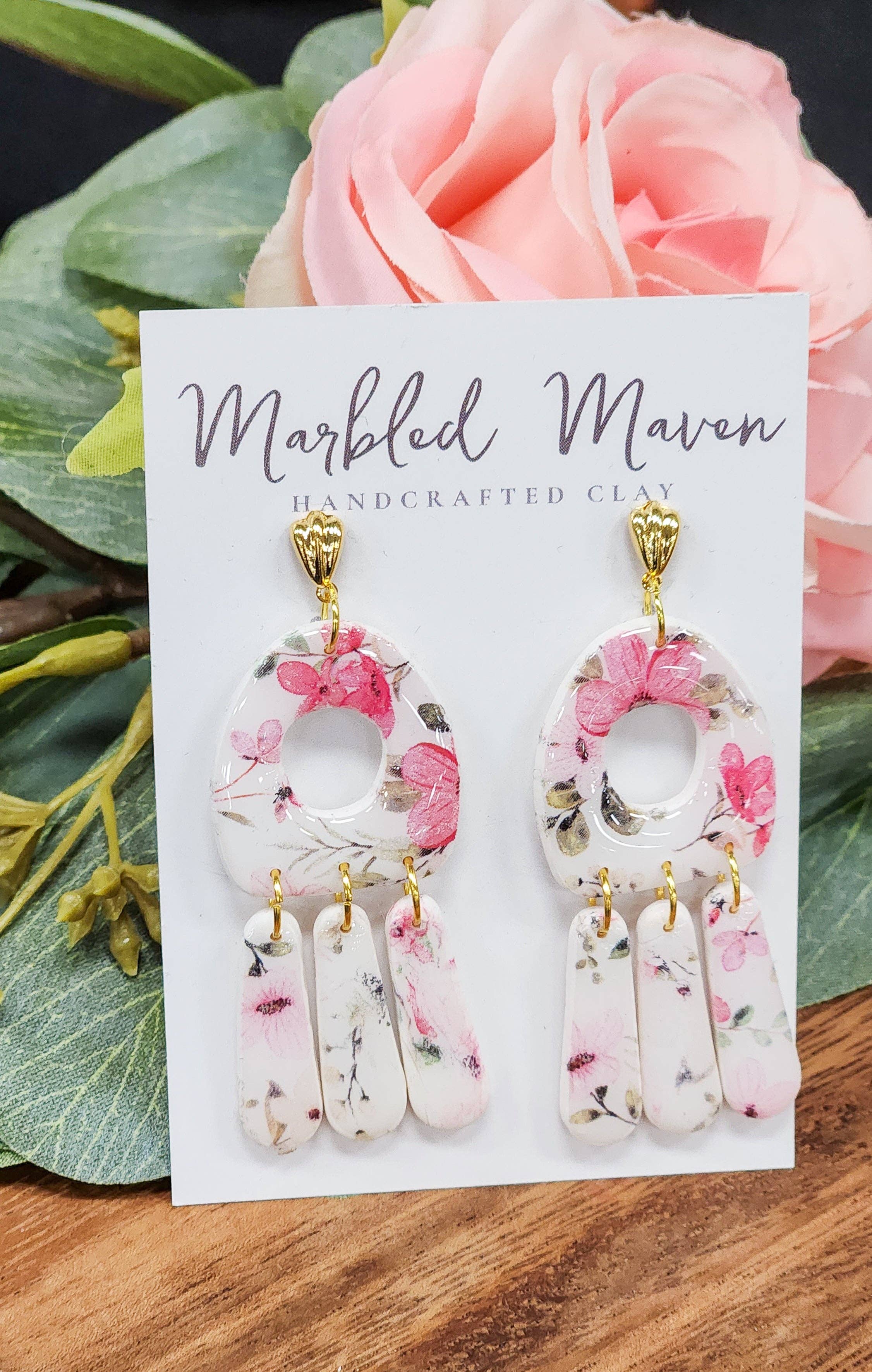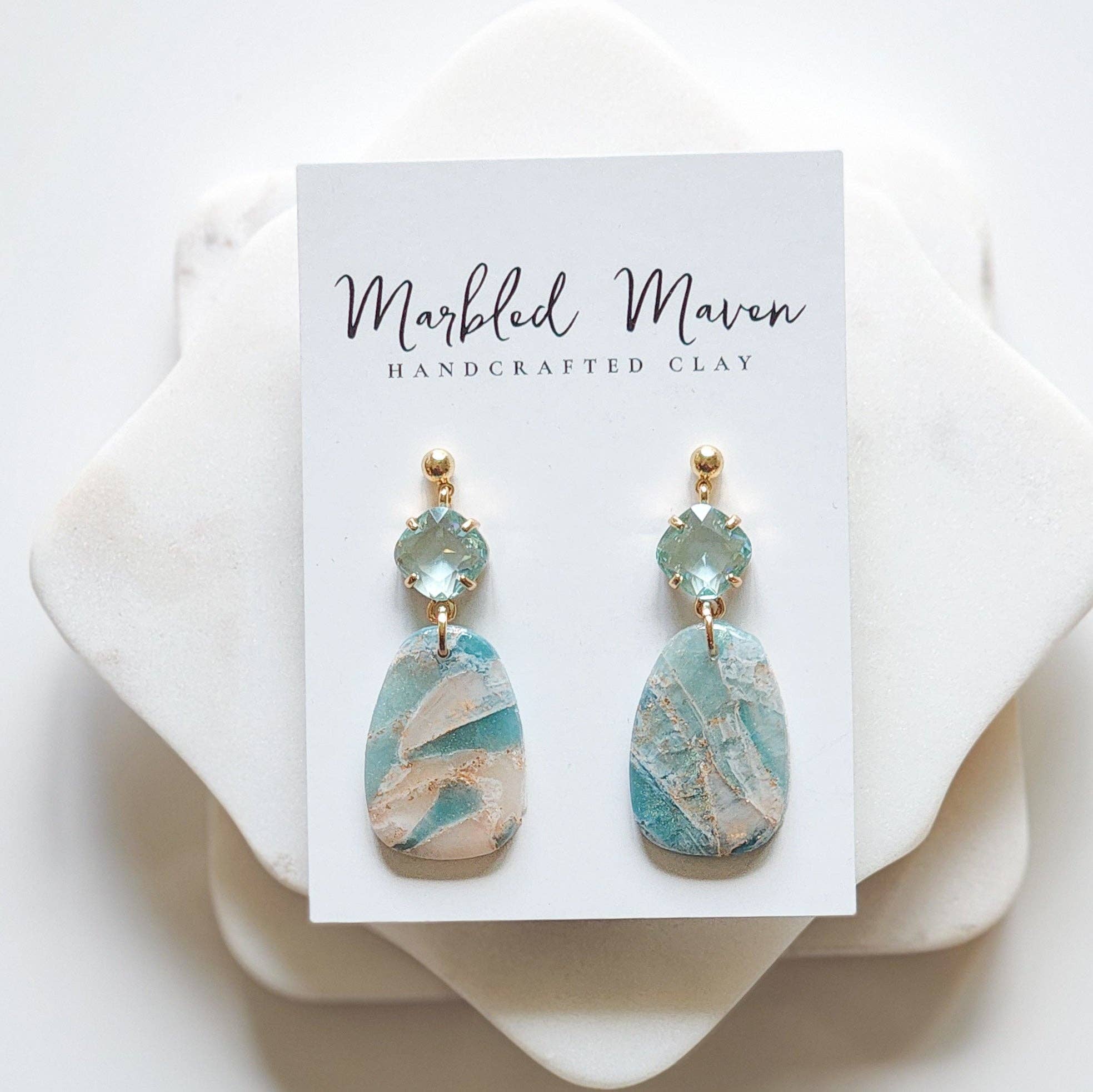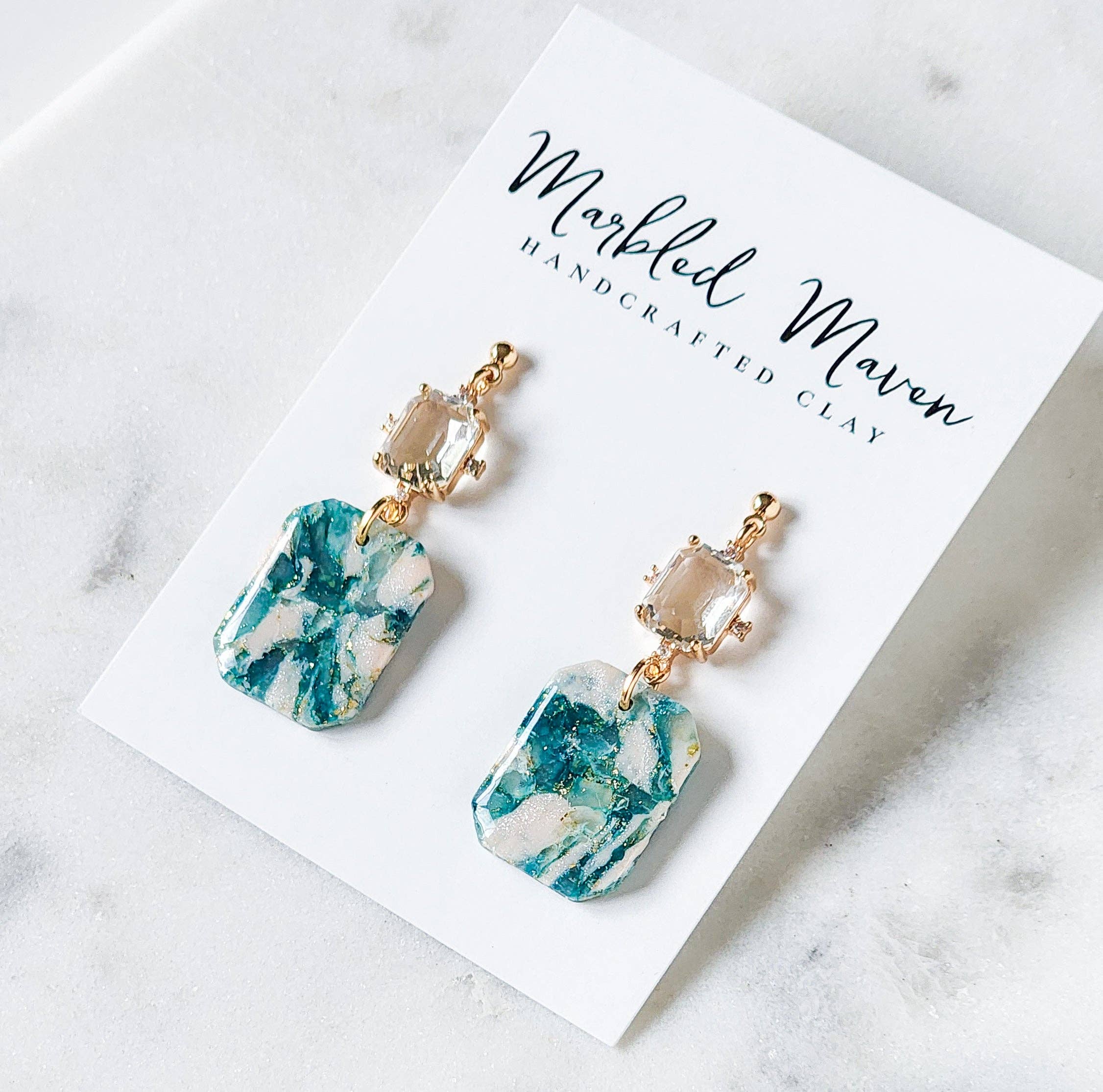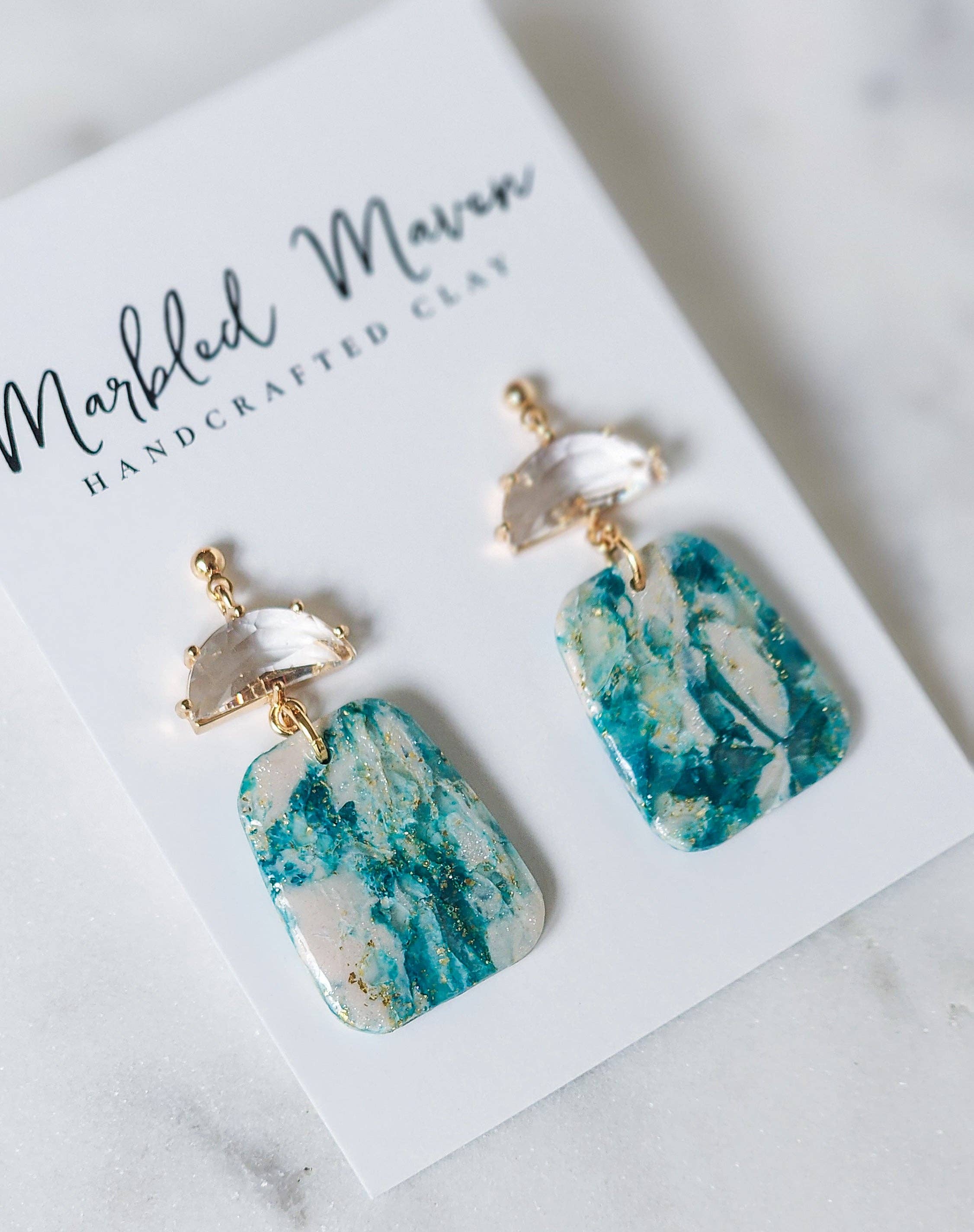 Hi friends! My name is Miranda and I am the owner of Marbled Maven. My journey began in 2022 when I was trying to figure out what in the world to get my mom for mothers day. She is super hard to buy for and it's always a critical thinking mission to figure out the perfect gift. During quarantine, like many people, I watched a lot of tik-tok videos and was drawn to polymer clay. So I bought some clay, and it sat in my craft closet for a good year. Going back to my mom; I thought hmmm I have clay, and I have lots of other tools...I bet I could manage to at least make one pair of decent earrings for her! After lots of practicing (mainly trial and error) I started to learn a lot and finally felt confident to launch my own business. That’s when Marbled Maven was born. My goal is to create joy, confidence, and self love for anyone who has a pair of my earrings! Each pair is unique and one of a kind with special attention to every detail. I hope you enjoy :) - Miranda