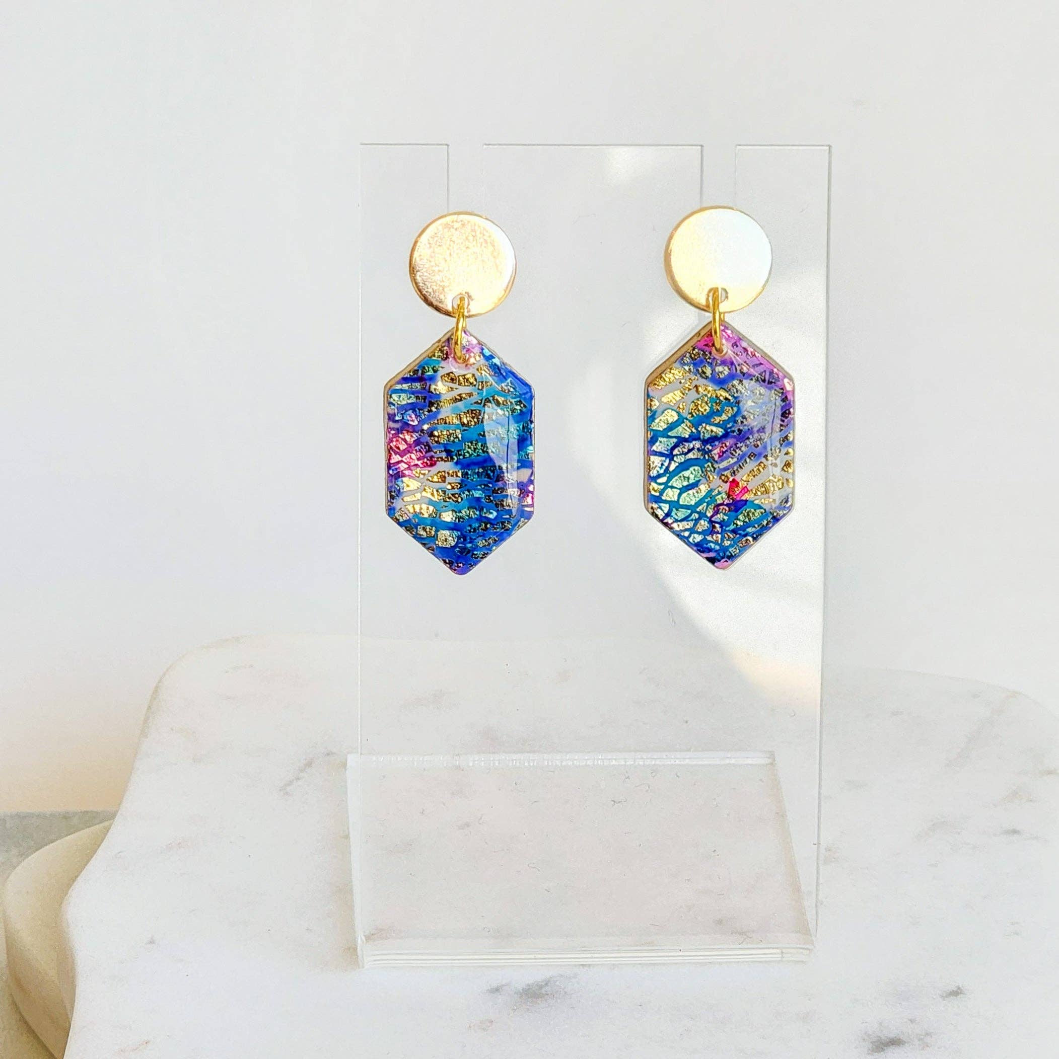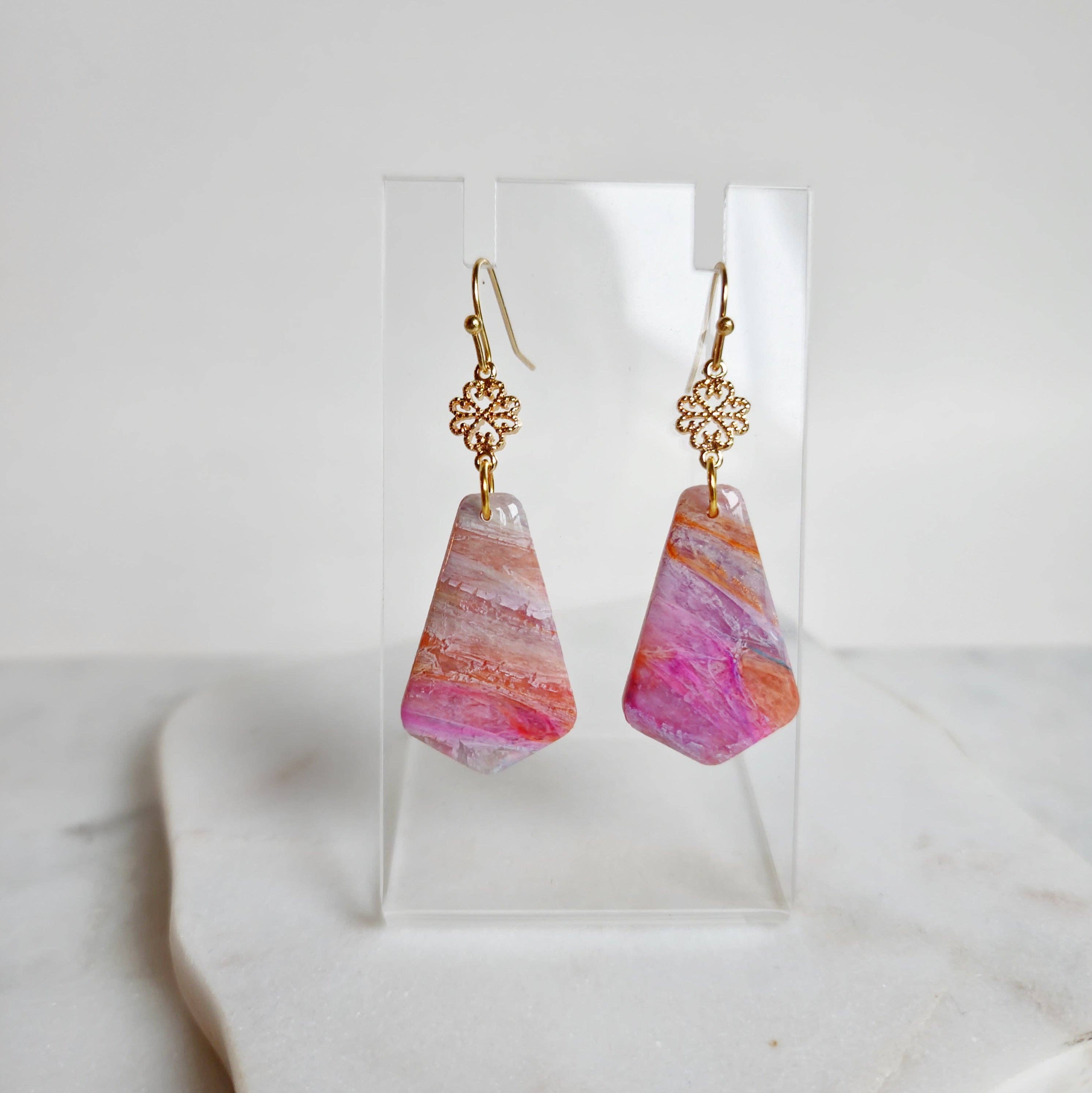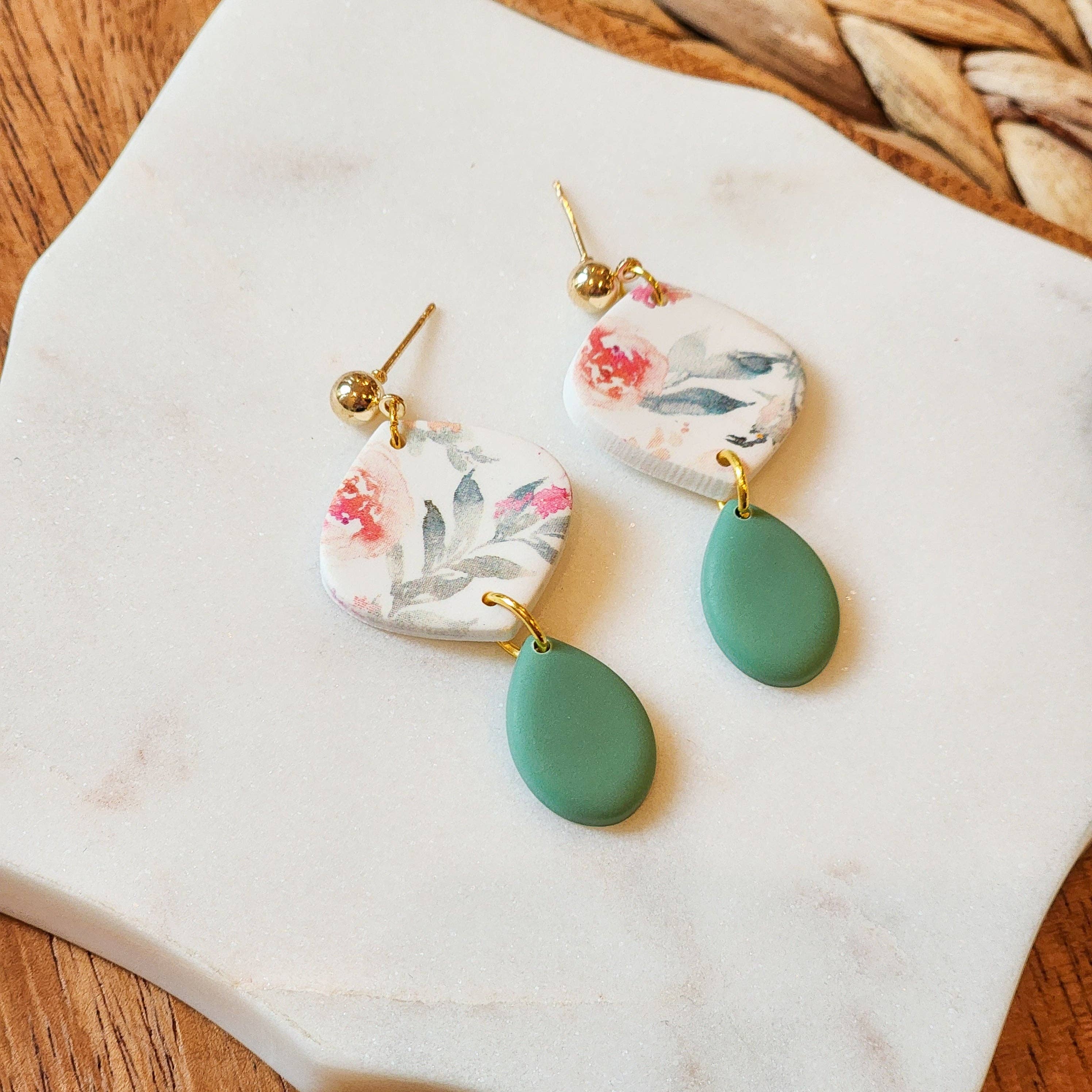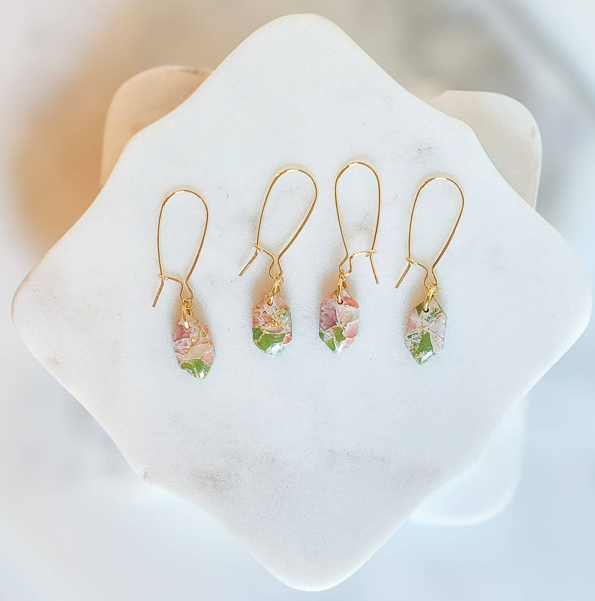 Hi friends! My name is Miranda and I am the owner of Marbled Maven. My journey began in 2022 when I was trying to figure out what in the world to get my mom for mothers day. She is super hard to buy for and it's always a critical thinking mission to figure out the perfect gift. During quarantine, like many people, I watched a lot of tik-tok videos and was drawn to polymer clay. So I bought some clay, and it sat in my craft closet for a good year. Going back to my mom; I thought hmmm I have clay, and I have lots of other tools...I bet I could manage to at least make one pair of decent earrings for her! After lots of practicing (mainly trial and error) I started to learn a lot and finally felt confident to launch my own business. That’s when Marbled Maven was born. My goal is to create joy, confidence, and self love for anyone who has a pair of my earrings! Each pair is unique and one of a kind with special attention to every detail. I hope you enjoy :) - Miranda