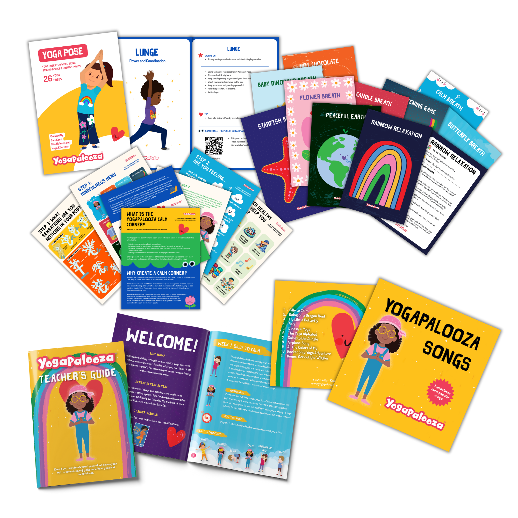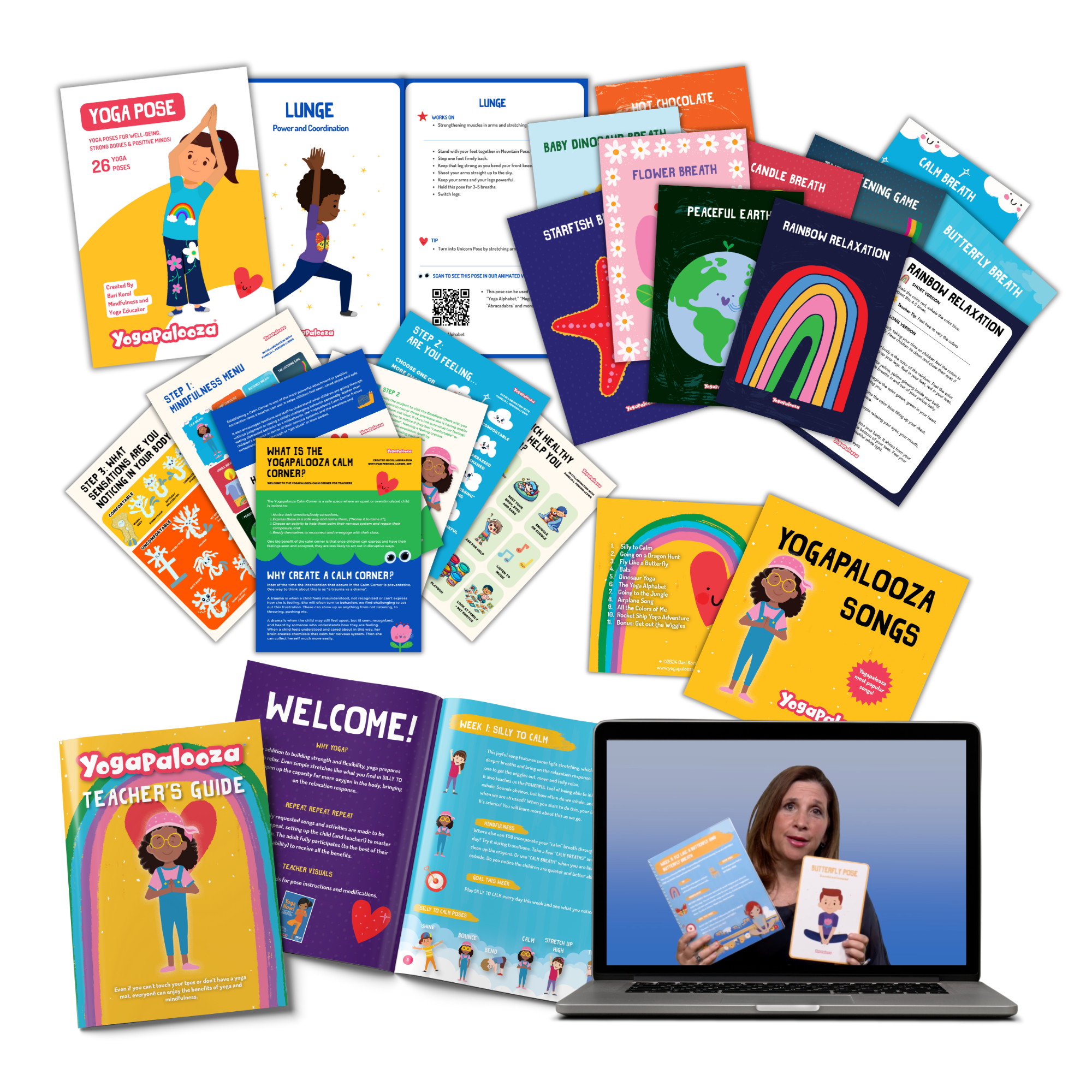 After graduating college in 1991, Yogapalooza founder Bari Koral moved to NYC with a new dream to become a musician. As she navigated through challenges and setbacks, Bari found herself starting to become overwhelmed by anxiety and doubt. She was woefully unprepared and had no tools to manage so many new negative thoughts and emotions. Always joyful and optimistic, Bari soon found herself with a bonafide panic disorder that ruled her life and limited her world for nearly 7 years. One day she walked into a local gym and met a yoga teacher who showed her (in under 5 minutes) how she could calm her nervous system and guide her thoughts to calmer places. “Didn’t anyone teach this to you?” the yoga teacher asked. No, they did not. Yogapalooza grew from that seed. First to heal herself, she became certified to teach yoga and mindfulness. As Bari learned, she taught others. Always a musician, Bari became a music and movement specialist at a top preschool in New York and turned her talents to writing music for her little students. She soon recognized a growing need- to create music and activities that could help kids move, grow stronger and learn to be calm too. That teachers and parents would also love. That would be a joy to do and easy to learn. And that could be done on repeat. That was how to make a positive impact every single day in and out of the classroom. And that is Yogapalaooza 🙂