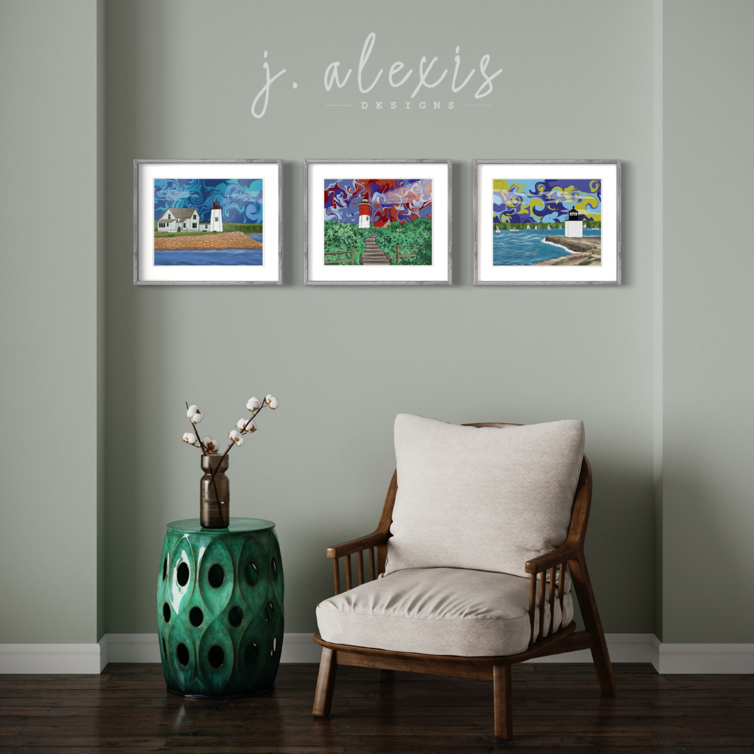 J.Alexis Designs is the creation of Jaida Narkon, a Cape Codder with a deep appreciation for fashion, color, and design. With degrees in Fashion Merchandising and Media and Innovation, Jaida returned home in 2018 to infuse her coastal inspiration into her brand. Starting from paper sketches and evolving to digital design on an iPad Pro, J.Alexis Designs was born. We blend design, decor, and art, transforming our digital illustrations into a range of unique products, from home decor items to bright and eclectic wall art.