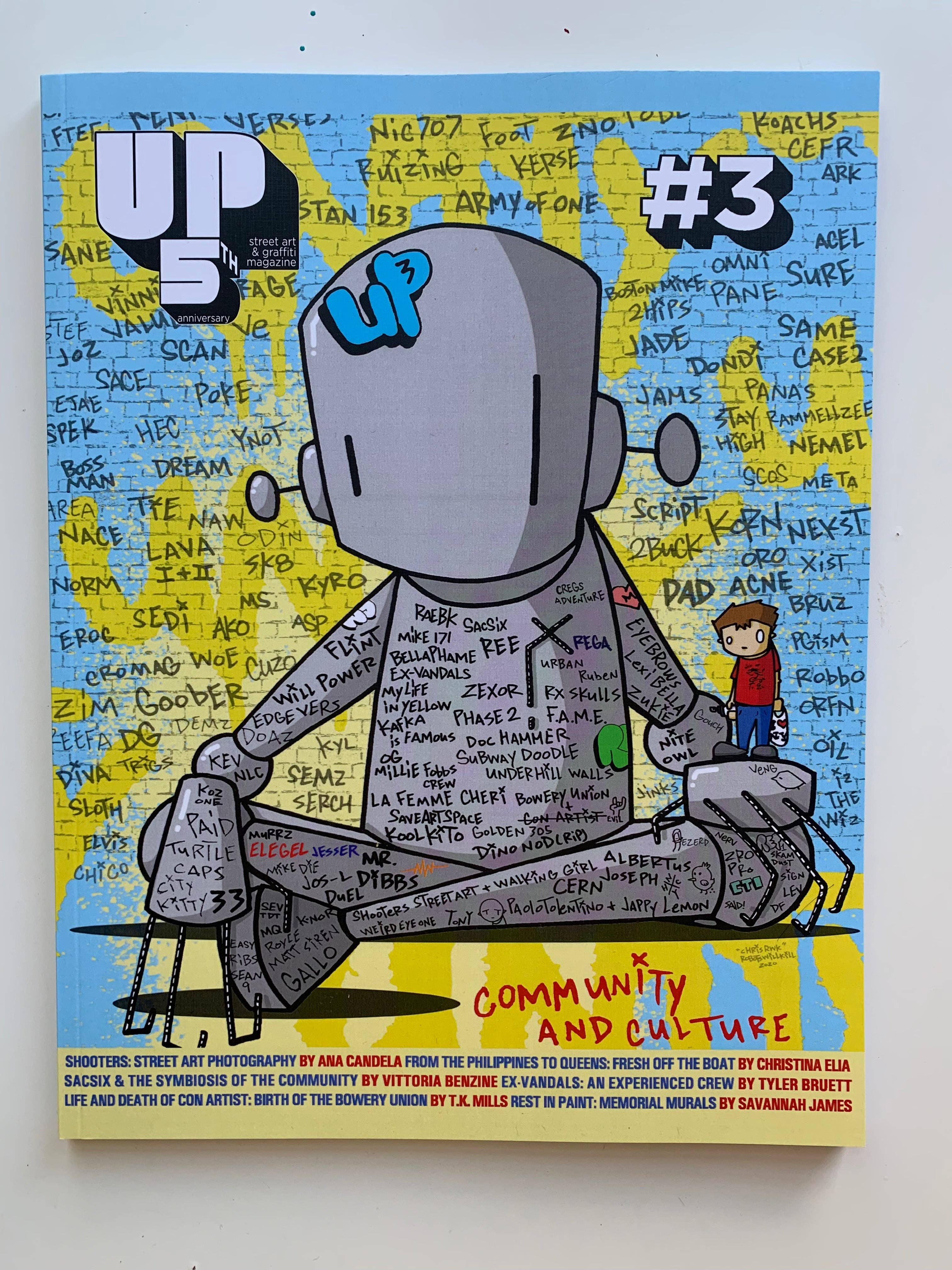 UP is an NYC-based publication that centers on street art, graffiti, and creative urban culture. Each issue of UP focuses on a single subject, exploring a wide range of artists, interviews, and ideas around the theme. Our mission is to provide the art community with nuanced, provocative, and critical writing that navigates the questions of our generation. We pride ourselves on serving our readers high-quality articles that investigate, inform, and entertain. Like good art, UP Magazine is made to make you think and make you feel.