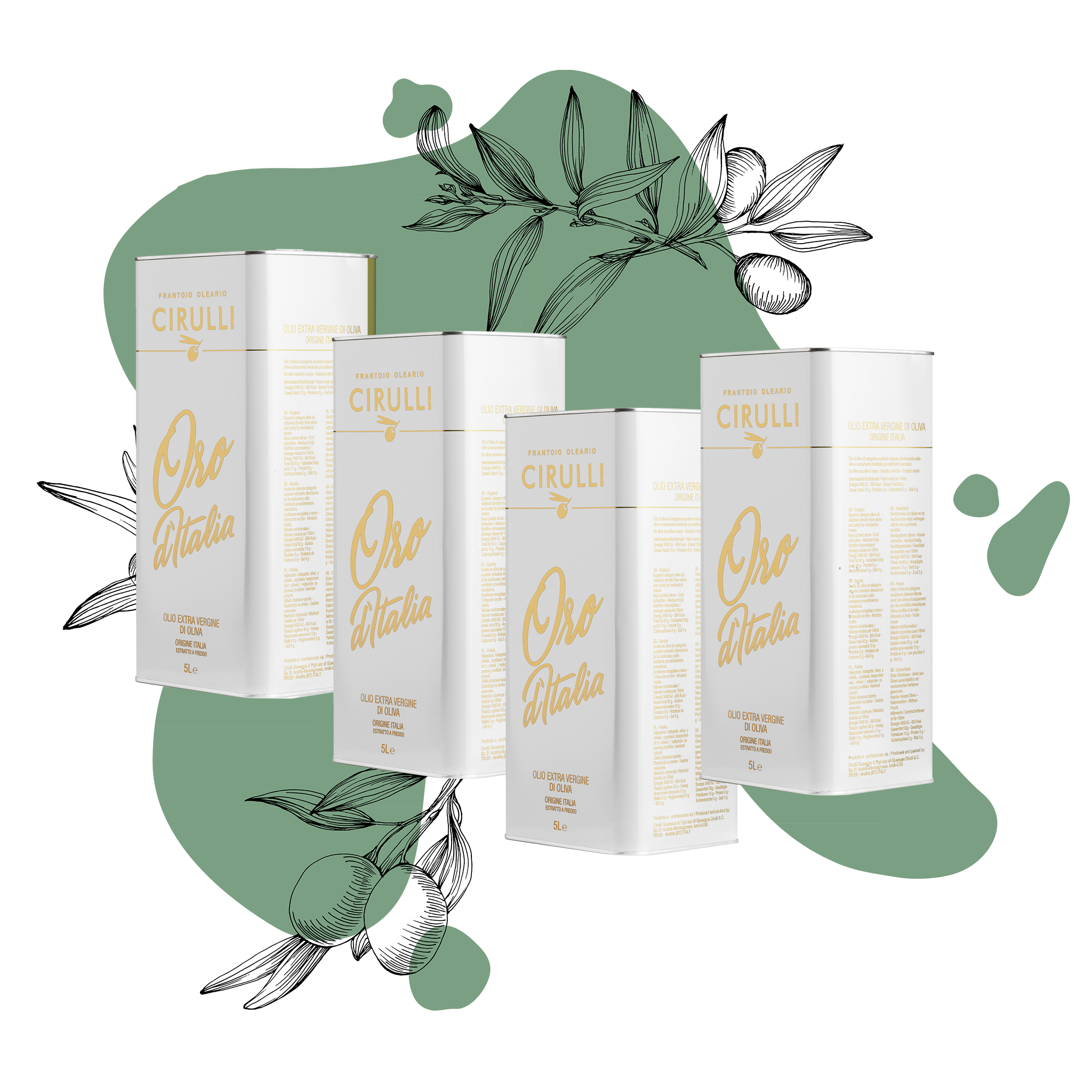 The Cirulli Oil Mill has been operating in the sector for about 70 years, when Nicola Cirulli, an agricultural entrepreneur, following his instincts and intuiting his organizational skills, started in Andria in the 1950s (Puglia) the milling activity starting to produce Extra Virgin Olive Oil. Giuseppe, Nicola Cirulli's son, continues the activity assisted by his sons Nicola and Raffaele, who begin to bring innovation and export to different countries.