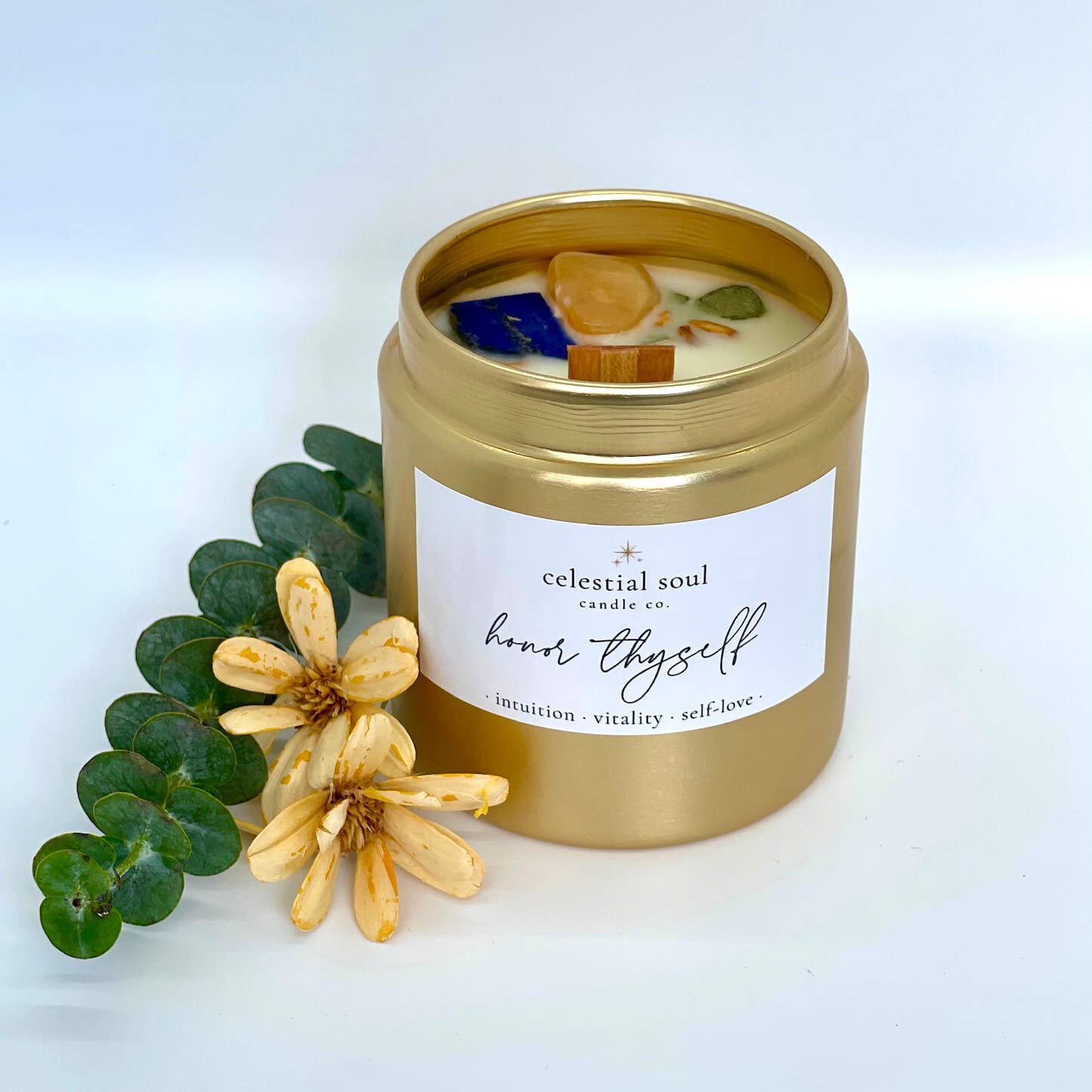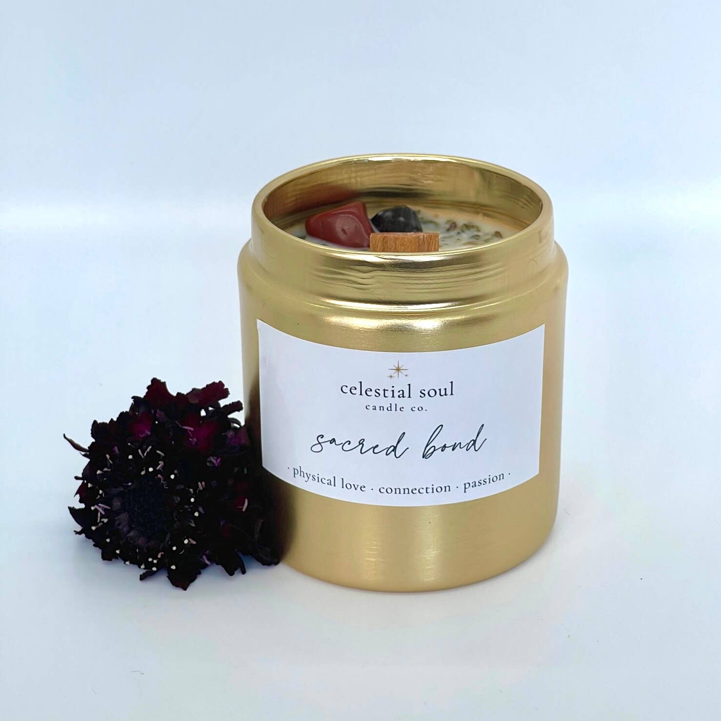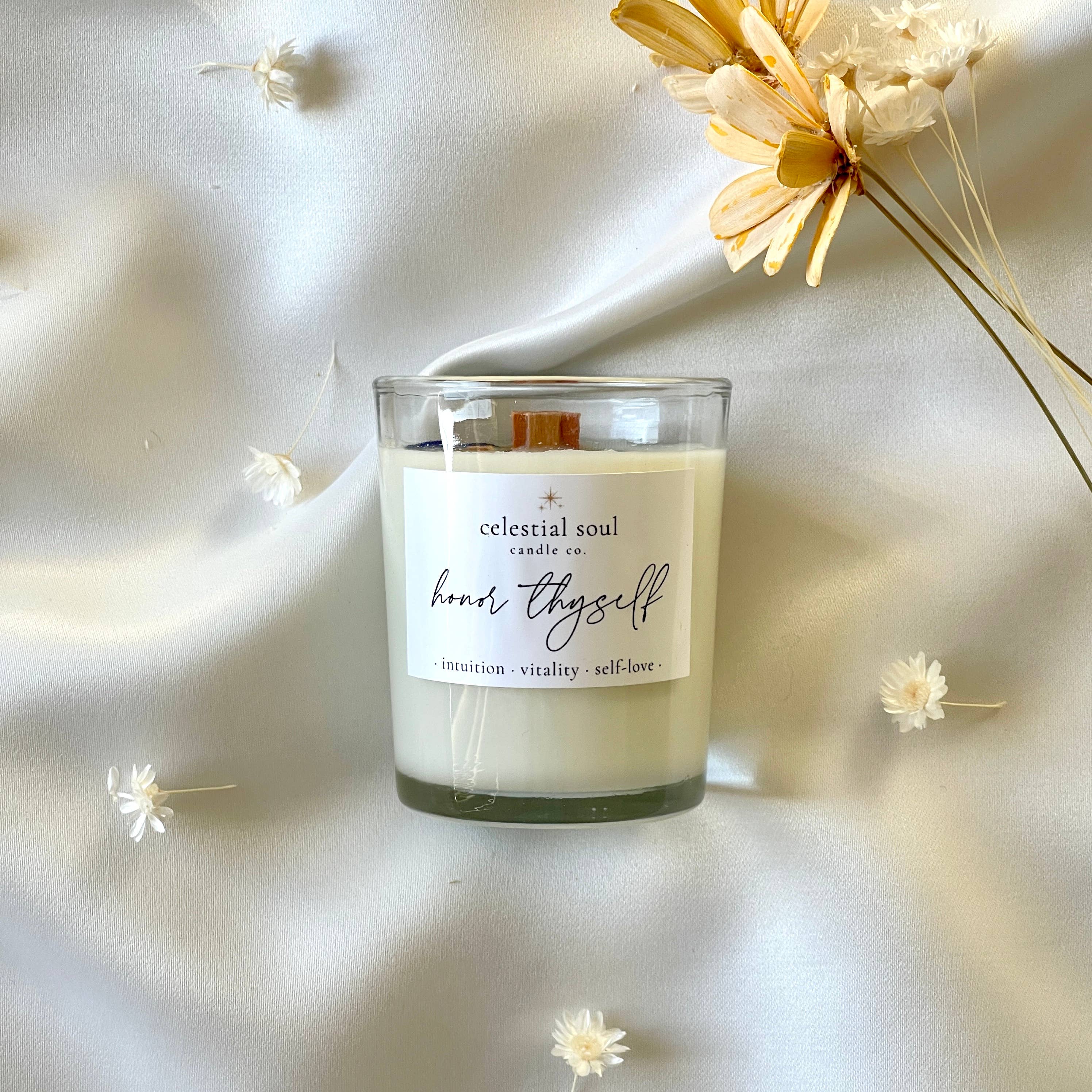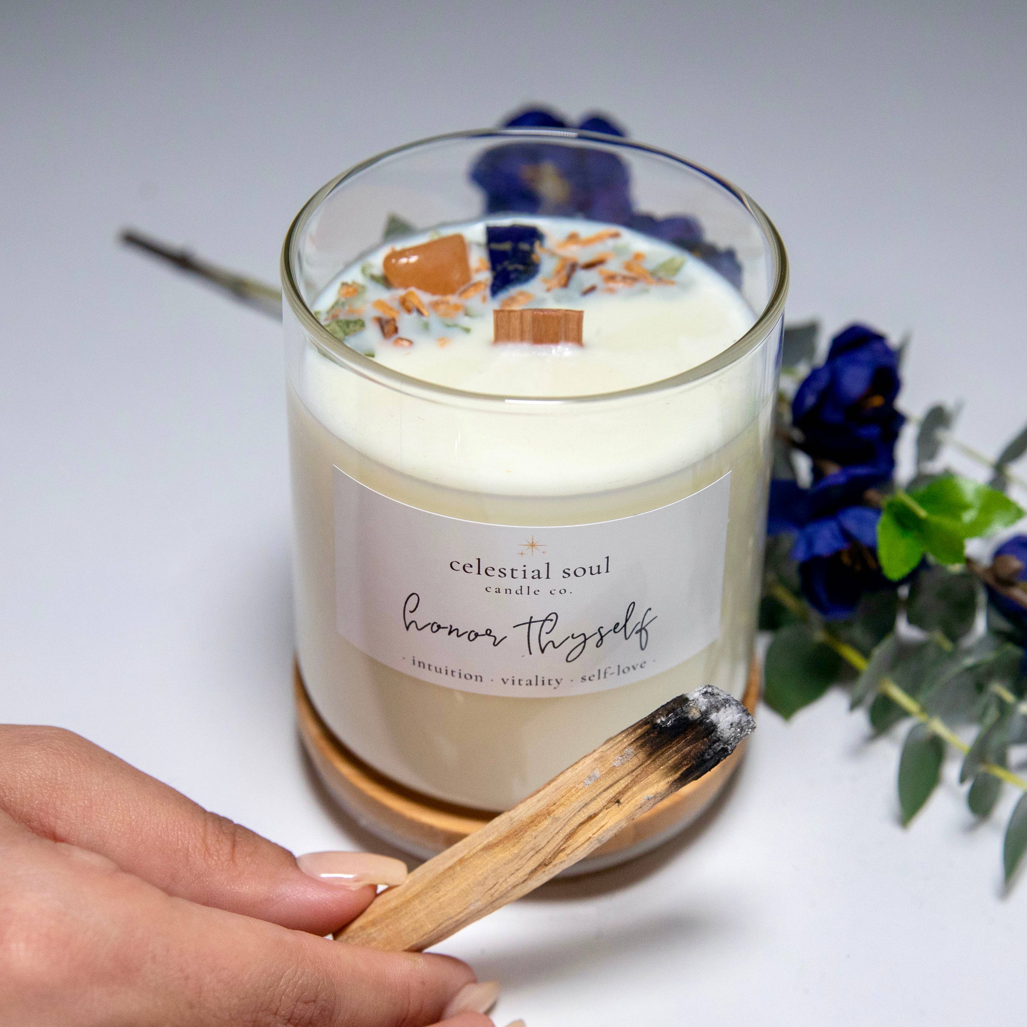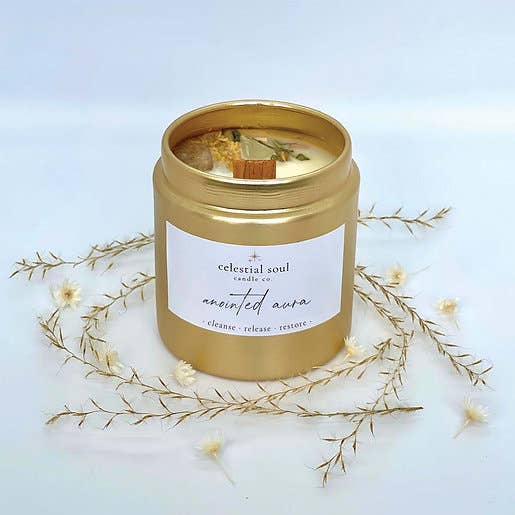 Celestial Soul Candle Co. is your source for handmade holistic and all-natural intention candles to create a truly unique and transcending energy in your space. In 2020, Vanessa Muro founded Celestial Soul to offer luxurious intention candles crafted with natural ingredients, bringing the power of earthly elements + ritual into peoples homes in an elevated and opulent way. A personal health scare acted as a catalyst for Vanessa's holistic healing journey, empowering her to heal and deepen her connection to natural wellness, holistic health, and spirituality. From there, Celestial Soul Candle Co. was born. Celestial Soul candles are handcrafted with love, passion, and the purest intentions using only the finest ingredients such as soy wax, organic essential oils, wooden wicks, organic herbs, and ethically sourced crystals. Using the power of earthly elements, each candle is thoughtfully curated + designed to help balance and align your mind, body, and spirit, allowing you to manifest your desires with intention and mindfulness. Whether you're looking to cleanse + fortify your energy, connect deeper within yourself or a loved one, or simply create a sense of peace and harmony in your space, our candles are the perfect tool to support your journey. Illuminate your path to inner peace and spiritual growth with Celestial Soul candles!