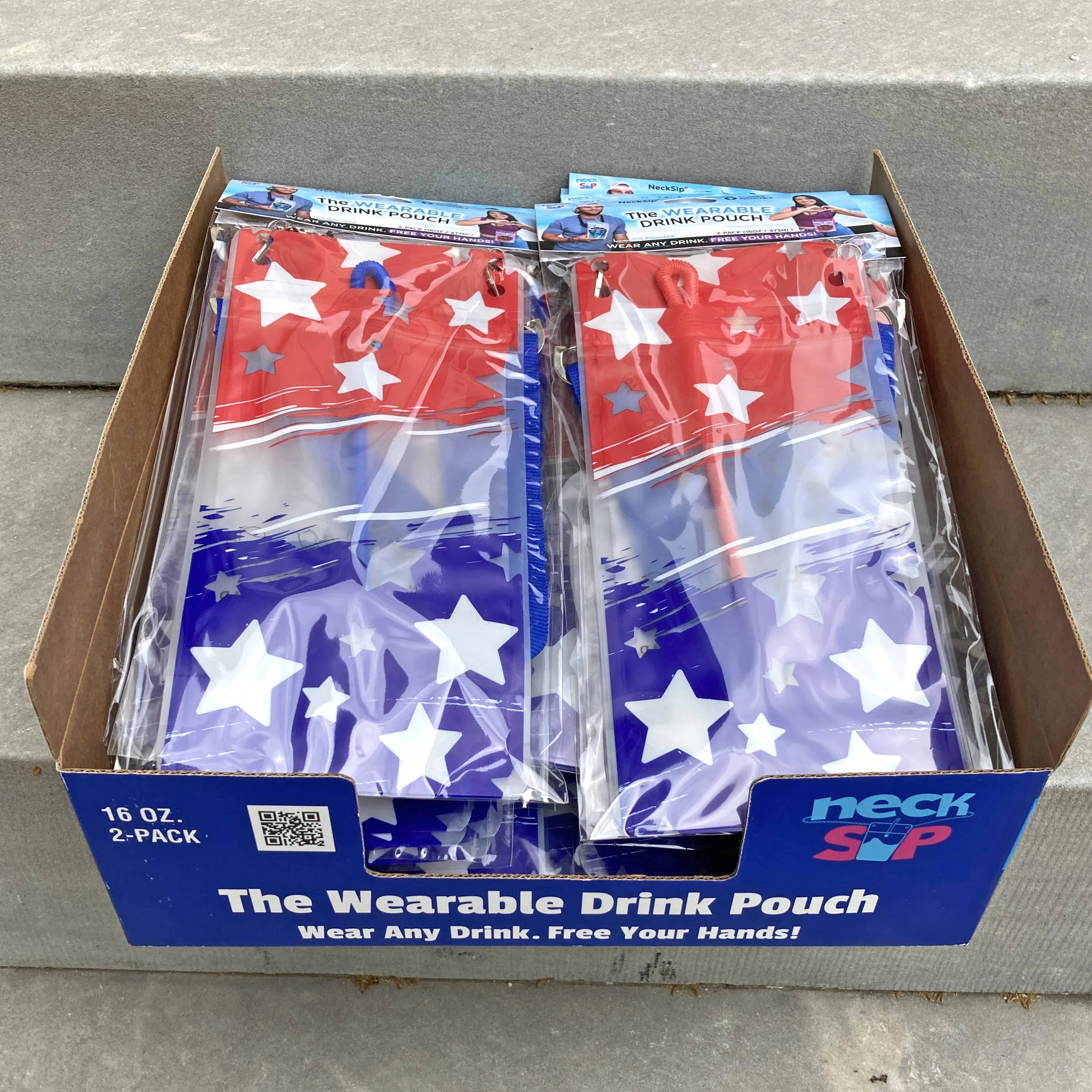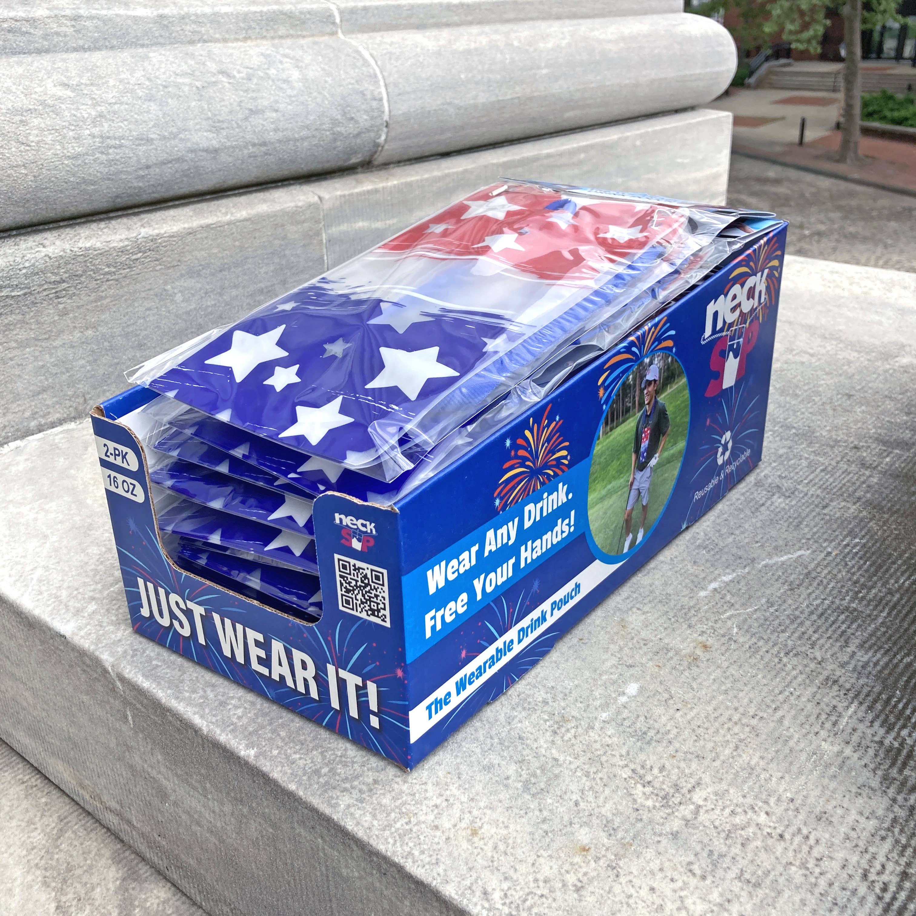 NeckSip® - The Wearable Drink Pouch - Free Your Hands! Why do people love NeckSips? Convenience + FUN! The beach, parties, concerts, sporting events, festivals, vacations - no more holding their drinks. It also holds bottles, cans, and snacks - making for an affordable, handy gift. Ages 3+ • Recyclable & Reusable • BPA-Free • USA Made • USA Patented! Black Owned • LGBT Owned • Women Owned Comes in 12oz or 16oz, and a variety of designs along with colorful, sturdy beads and lanyards. Fully assembled and ready for use!