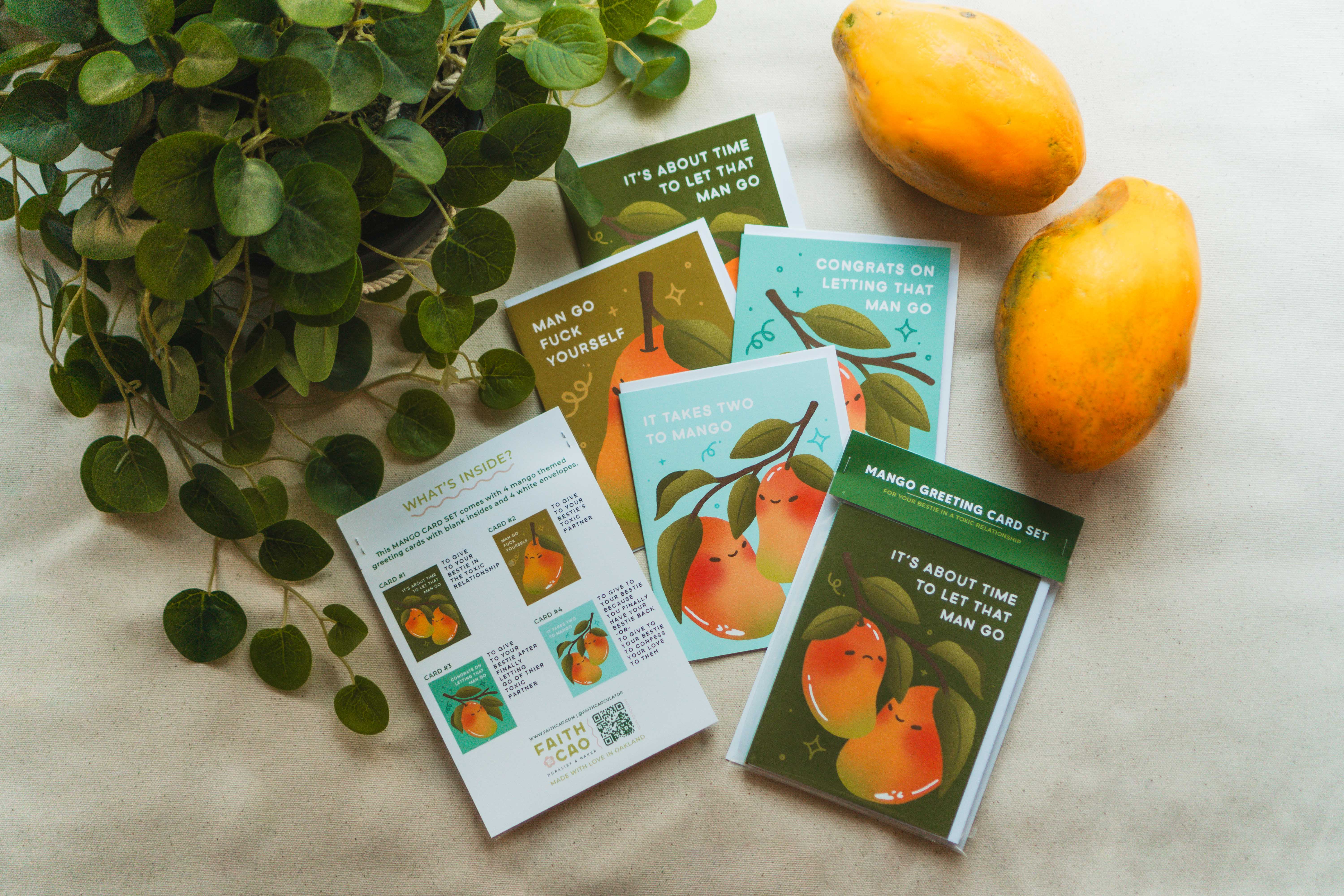Faith Cao, born, raised, and currently living in Oakland, California, is a Vietnamese, Teochew, Cantonese American. As a first generation daughter of refugees, she graduated with a Bachelor's degree in STEM before embracing a full time artistic journey. Faith is a multi-passionate creative who runs a small business called CAOCULATOR. Their artwork emerges from a desire to fill gaps in the art world - while keeping things cute for they are a die hard Sanrio girl. Their versatility shines through various mediums such as polymer clay, print making, mural painting, digital art, and photography. They make piece to inspire others and to make people laugh through cleverly humorous pieces of art. Find out more of where you can find Faith at a market or learn more about them here: https://faithcao.com/links