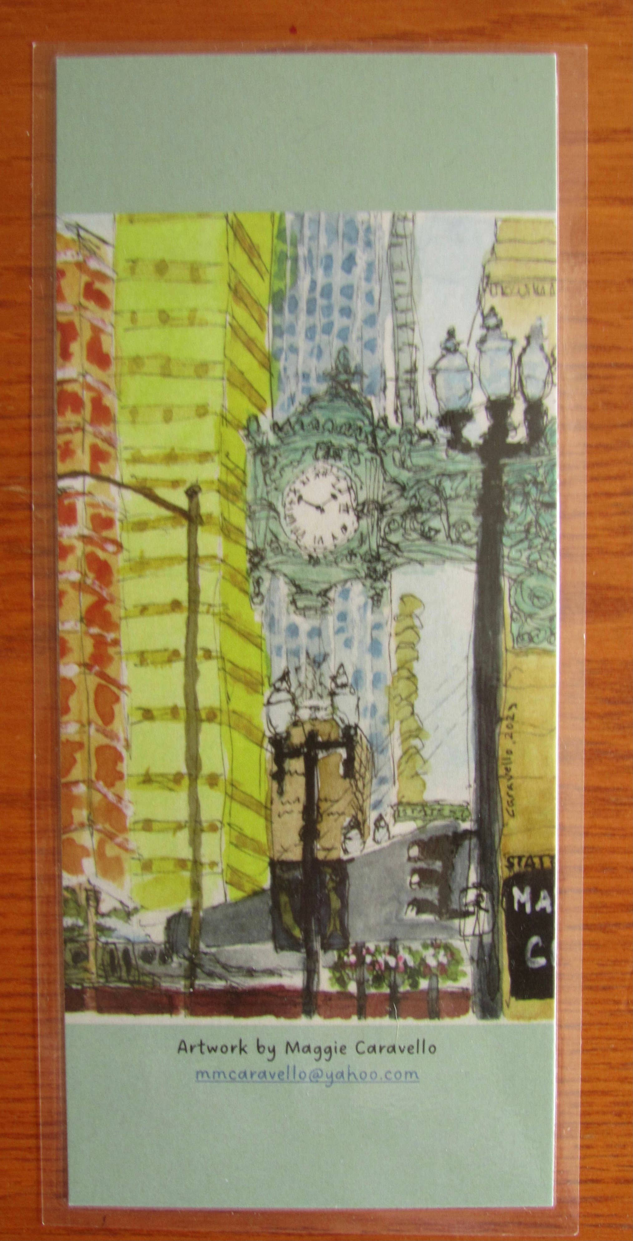 Maggie Caravello is a Chicago-based urban artist with a specialty in loose sketches and watercolors. Maggie spent 25 years taking a variety of drawing and painting classes where she recognized a love for urban sketching. She dedicated two years to living in Buenos Aires, Argentina to develop her craft. While there, she took classes, participated with the Buenos Aires Urban Sketching community and spent countless hours sitting in cafes, drawing and painting the scenic views. It was there that she developed a love for a loose ink drawing style enhanced with watercolor. Her artwork is now focused on iconic landmarks in Chicago and the surrounding suburbs. Her notecards, prints and bookmarks all incorporate her signature style. Her line of iconic locations in various cities will continue to grow.