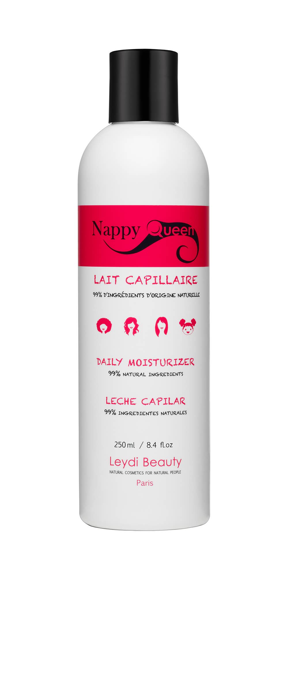 This is the story of a little black girl who dreamed of having long hair, like the women she saw on TV. She loved it when her mother braided her hair and added beads. Her hair would then move, just like her friends'! Later, straightening would have the same effect on her until Bilguissa, the brand's founder, became a mother and questioned this practice. The Nappy Queen range was born from the opposition to a mandatory straightening reflex... But things are evolving, and that's a good thing because more options are possible. It was to offer accessible, healthy, and quality natural cosmetic products to as many people as possible that the first five products were launched in Paris in 2013; 9 years later, the brand has expanded, with over 100 retailers and customers won over by the practicality, healthy formulation, and quality of our products. Nappy Queen products are 99% natural, without chemical diluents, colorants, silicones, or parabens, packaged in 3 languages, for dry, wavy to curly hair. We look forward to collaborating with you. See you soon.