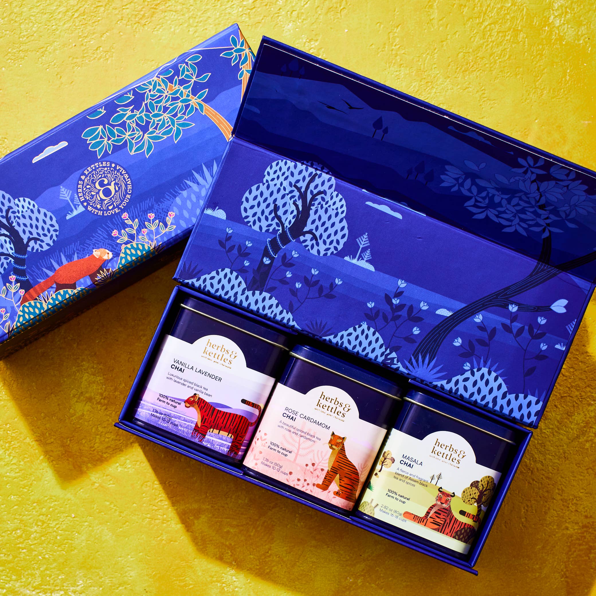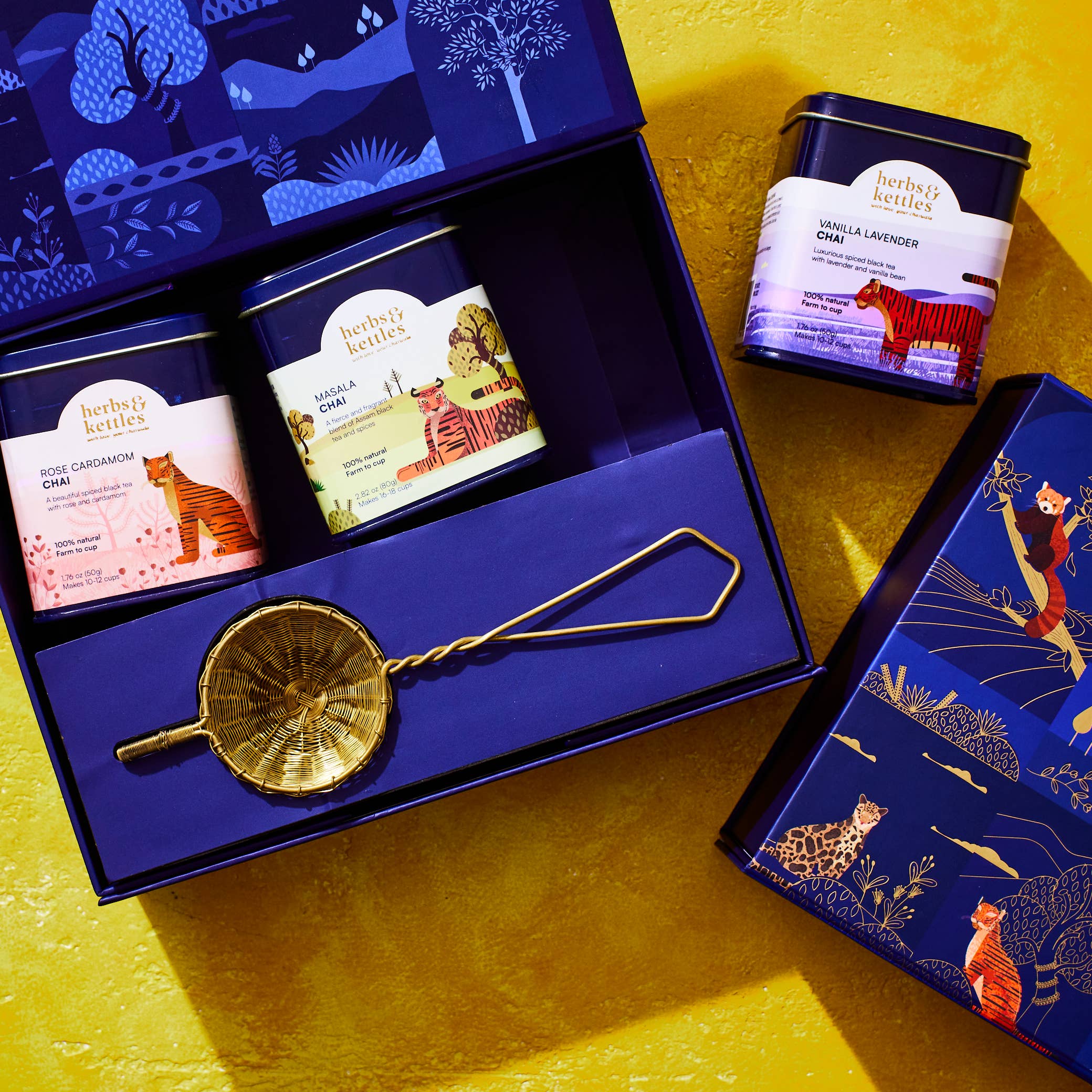 Herbs & Kettles is an Atlanta-based, direct trade, single-origin premium Indian tea company founded by Abe and Poorvi Chordia. Driven by their passion for wellness and exceptional tea, they have built a brand that reflects care, expertise, and authenticity. Poorvi, a certified ITMA tea sommelier, carefully selects each tea for its wellness properties, aroma, and flavor, ensuring every cup is a sensory delight. Abe & Poorvi travel across India to collaborate with small, sustainable farmers, directly sourcing single-origin, single-batch teas for your enjoyment. Each tea is a reflection of commitment to quality, wellness, and ethical practices. Herbs & Kettles gives back to a red panda conservation project, a program that they started with a nonprofit in India. Our Philosophy: Direct Sourcing. Transparency. Social Responsibility. Cultural Sustainability.