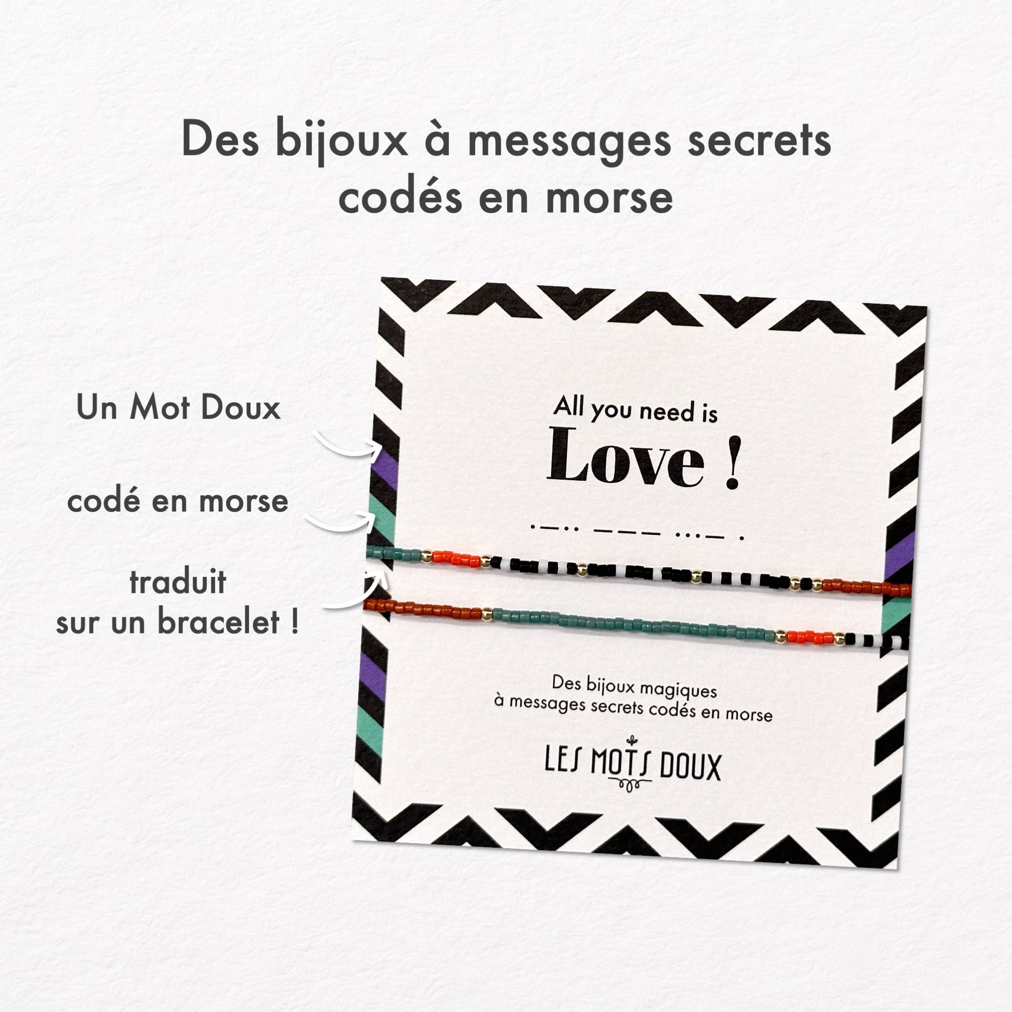 Once upon a time... ... bracelets like sweet words whispered in the ears of those you love. Les Mots Doux are high fashion jewelry that is entirely handmade and customizable. The beads use the code of the Morse alphabet and translate a word, a phrase, a magic formula.