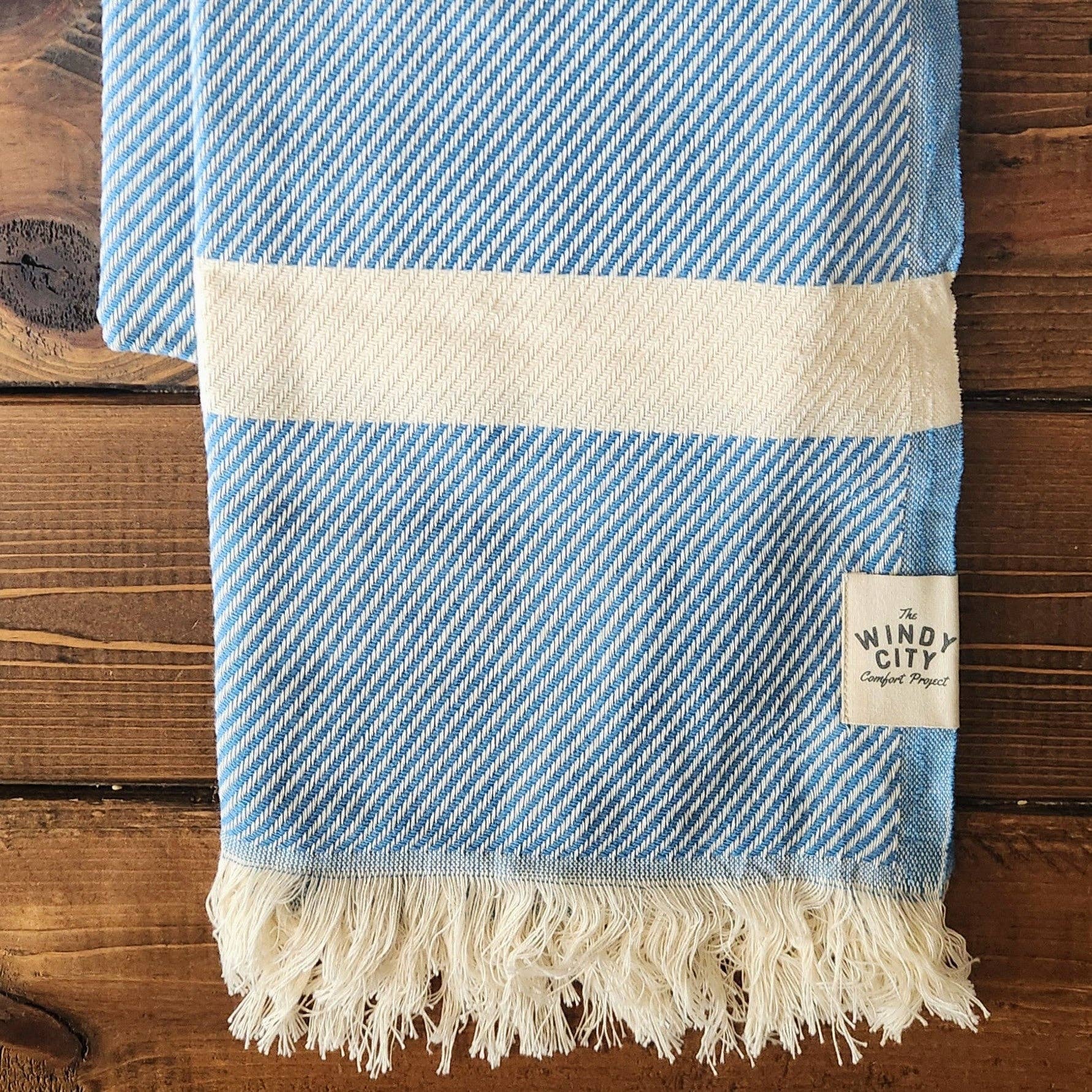 At Windy City Comfort Project, we believe everyone deserves warmth, comfort, support, and dignity. That's why, since launching in 2023, we've partnered with organizations in seven states to donate over 9,000 blankets to our neighbors in need -- one blanket donated for each one purchased. Our throws and Turkish Towels, many of which are designed in Chicago, are crafted with pride by a small, family-owned business in Denizli, Turkey. Our organic cotton throw blankets and Turkish Towels deliver unmatched quality and softness, and they always come with a promise: to help provide comfort for someone in the communities we serve. Let's work together and lend a helping hand in your community!
