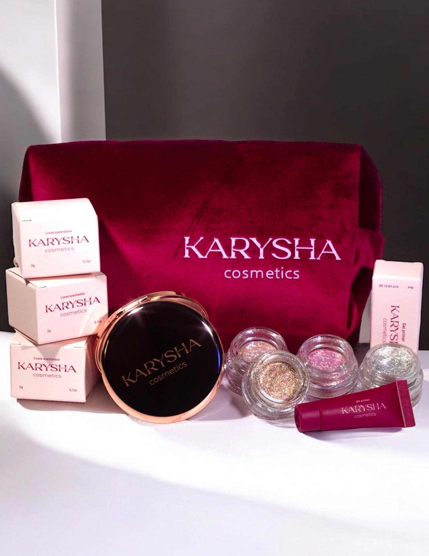 KARYSHA Cosmetics was created with a clear mission: to empower individuals through the transformative power of artistry and self-expression. Our brand celebrates bold creativity, confidence, and inclusivity. Inspired by the dazzling possibilities of pigment and the precision of professional makeup, we deliver high-quality products that meet the needs of makeup lovers and artists alike. Each product is designed to unlock your imagination, whether you are creating a statement look for the stage or a subtle glow for everyday confidence. We are committed to cruelty-free, carefully formulated cosmetics that perform flawlessly and celebrate your individuality. At KARYSHA Cosmetics, beauty is more than appearance — it is an experience, a form of self-love, and a celebration of your true colors.