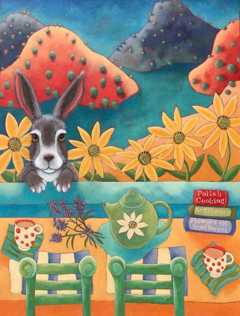 Popular Abiquiú, New Mexico painter Lori Faye Bock has been delighting a welcoming public in Southwest galleries since 1996. In 2001as a small business owner, she began a boutique line of note cards and archival prints offered primarily through retail outlets in New Mexico. Printed on environmentally-sensible recycled card stock using soy based ink, the note cards are packaged in 12 card portfolios, 6 Packs and singles. UPC barcoded, we carry product liability insurance with The Hartford and proudly identify all 70+ products are MADE IN AMER ICA. Samples upon request.