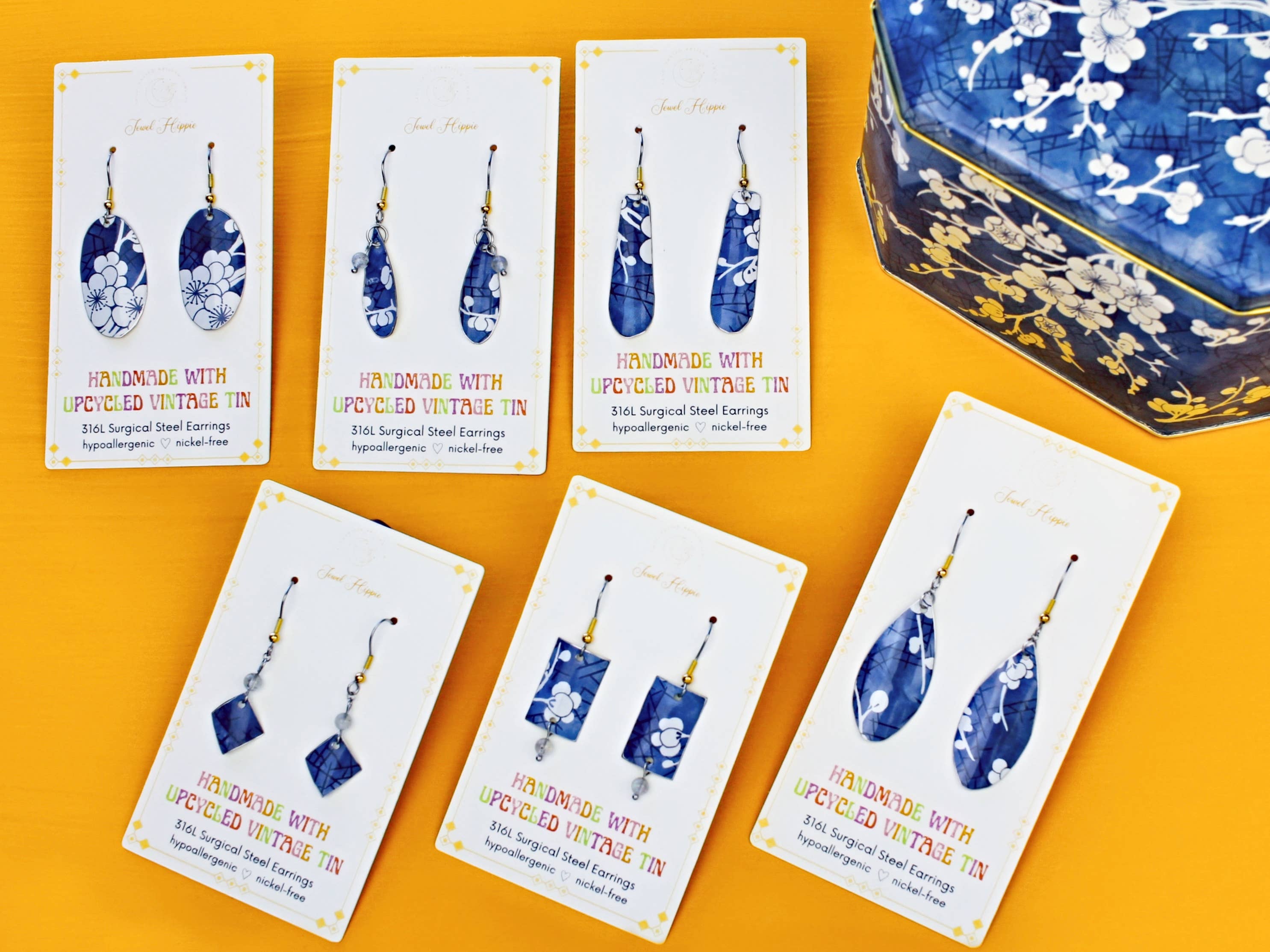 Jewel Hippie was started in 2021 by Gina Kelley, a Tennessee-based artist creating whimsical, boho-inspired jewelry rooted in nostalgia, femininity, and storytelling. Each piece is thoughtfully handcrafted using natural gemstones and upcycled vintage cookie and tea tins, giving familiar materials new life through a creative lens. Designed to be worn and loved, Jewel Hippie jewelry is lightweight, hypoallergenic, and nickel-free, making it comfortable for everyday wear and accessible for a wide range of customers. Rooted in sustainability, we incorporate recycled metals and upcycled vintage tins to honor the past while creating stylish, easy-to-wear jewelry. Many of our bestselling designs feature vibrant color palettes, vintage florals, and charming accents that feel both timeless and fresh. At the heart of Jewel Hippie is a subtle nod to women and individualism, with an appreciation for the beauty of meaningful heirlooms.