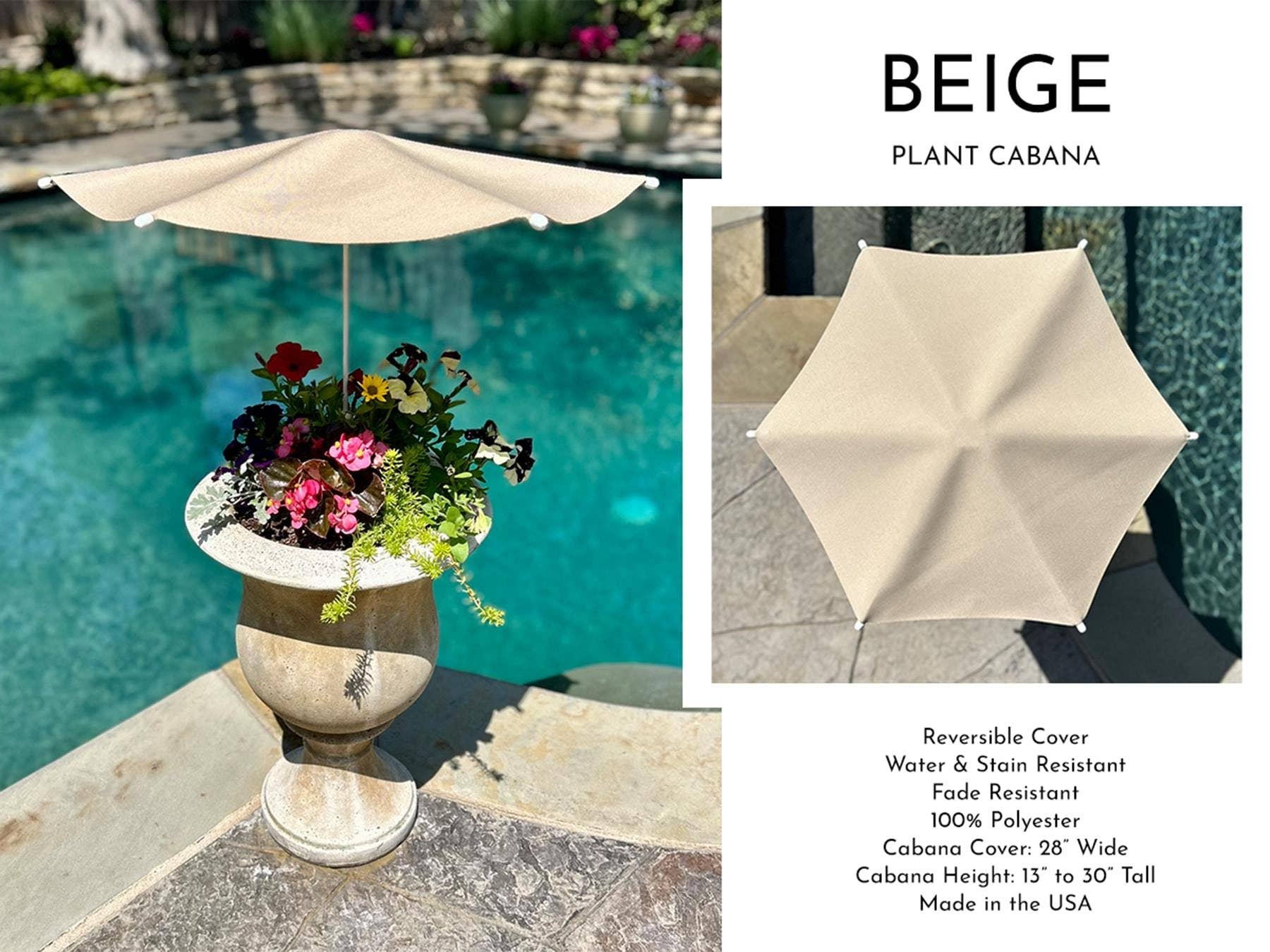 The Plant Cabana Story Plant Cabana was created to solve a real problem. I live in Dallas, Texas, where summers are long and brutally hot on container plants. For years, I tried everything to keep seven pots around my pool alive. No matter how much effort I put in, by July the heat had baked the pots, overheated the soil, damaged the roots, and my expensive plants were gone. I realized plants weren’t failing from too much sun — they were failing from heat trapped inside the planter. So, I created the Plant Cabana. Now, those same seven pots don’t just survive summer — they thrive. Plant Cabana allows plants to receive natural sunlight and airflow while helping keep pots and soil at a more moderate temperature, so roots don’t bake. Plant Cabana is designed to be beautiful in the garden. It adds a clean, finished, high-end look to planters and outdoor spaces while delivering real performance in extreme summer heat. Simple fixed design. No moving parts. Just assemble and place in soil next to the plant you want to protect. Please reach out to me with any questions. 214-970-0142 or pete@plantcabana.net Sincerely, Pete Vickers