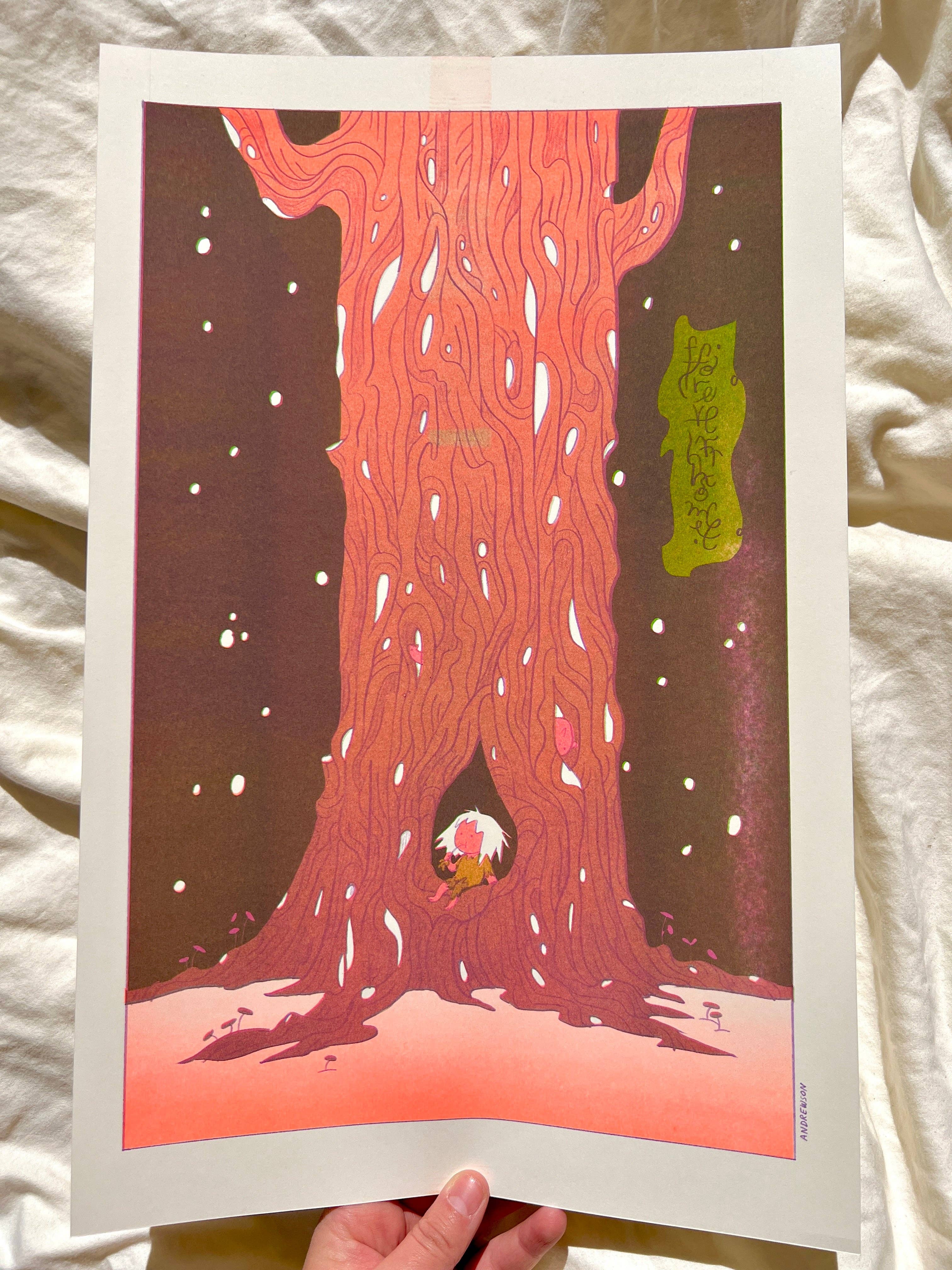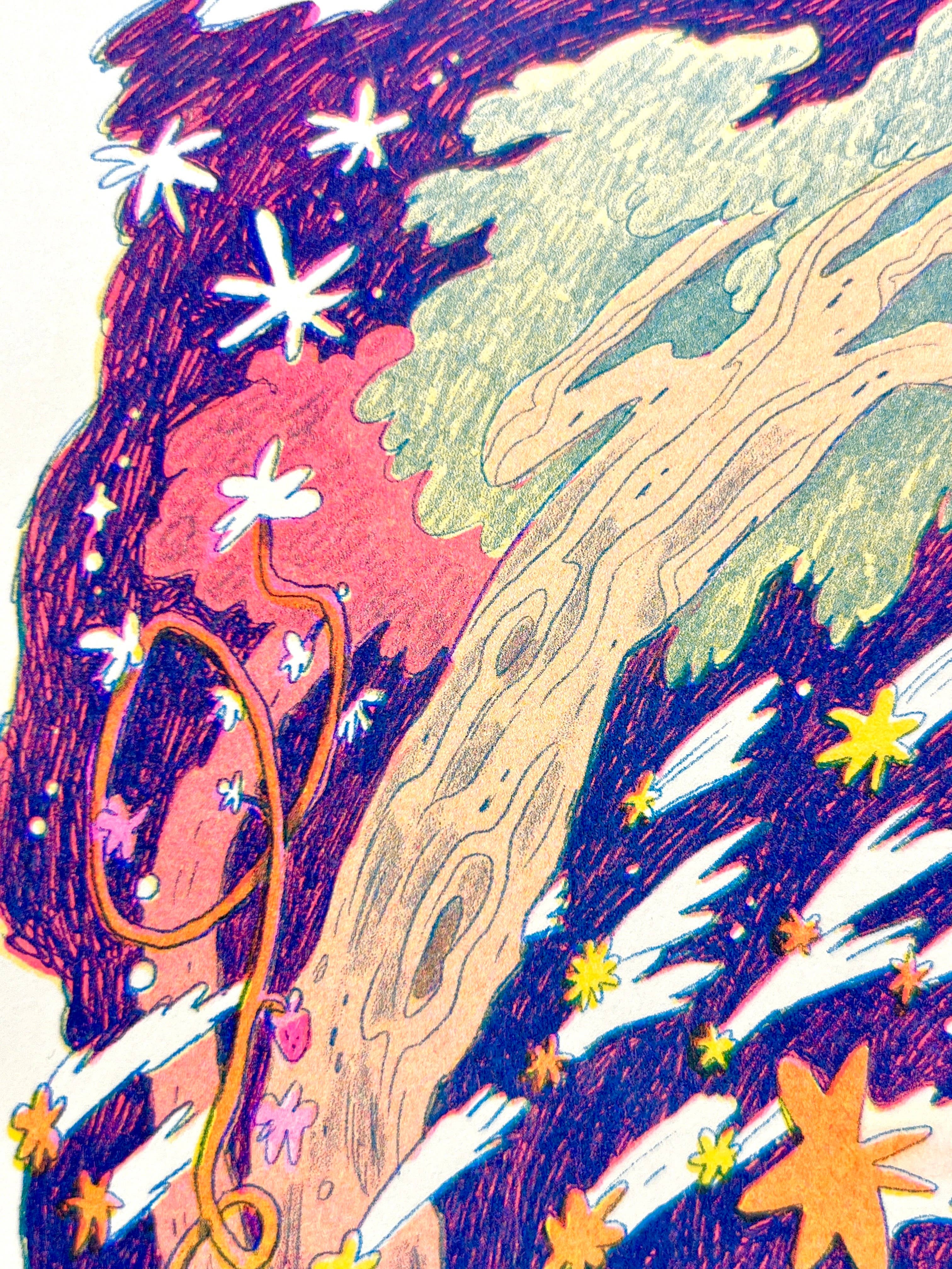 Natalie is an illustrator, cartoonist and printmaker specializing in vibrant, narrative Risograph prints. Her work is inspired by fantasy and folklore she grew up with in the creeks and woods of North Carolina. She currently lives in Los Angeles, California, and prints and ships out of her studio in Atwater Village.