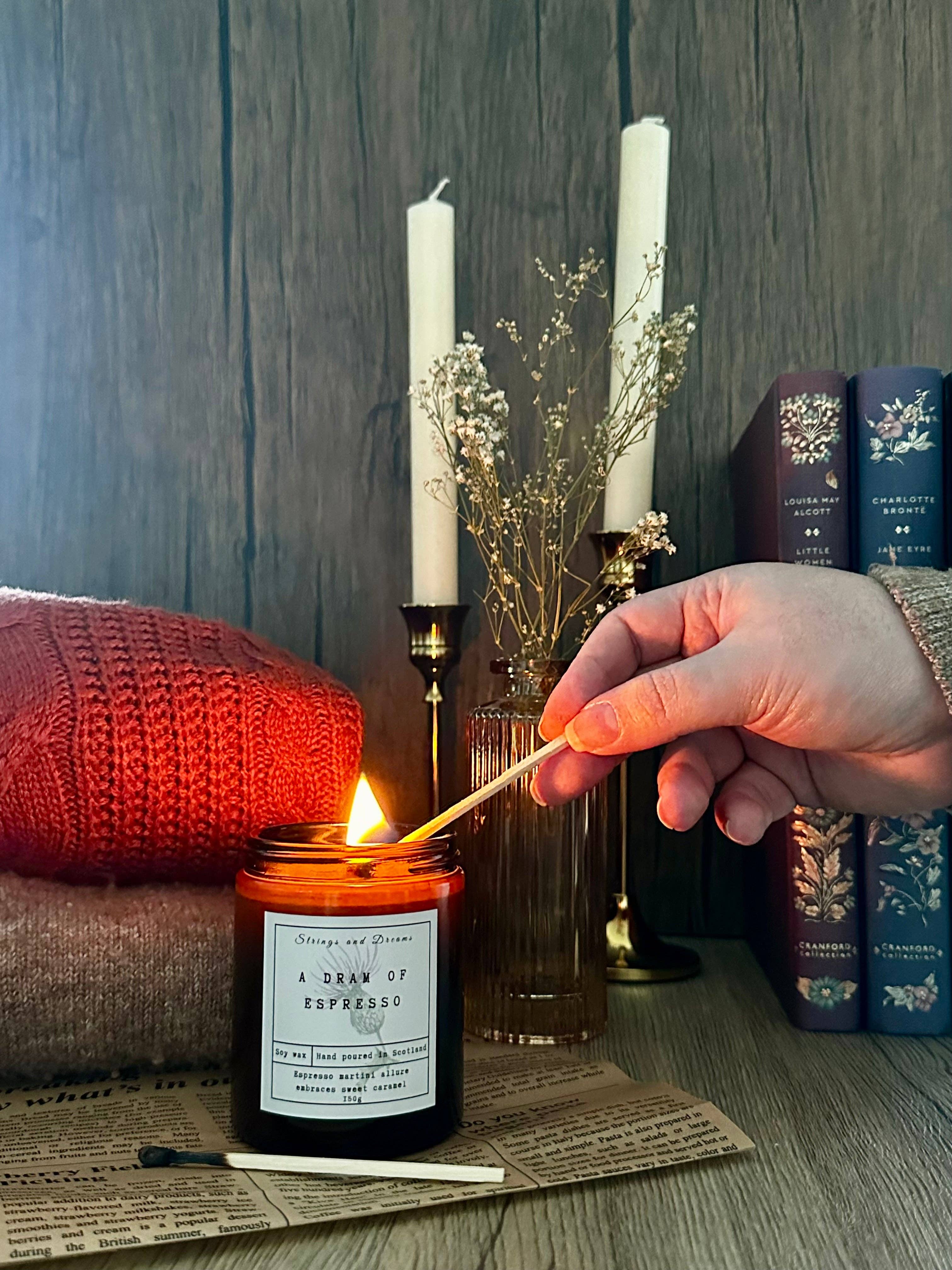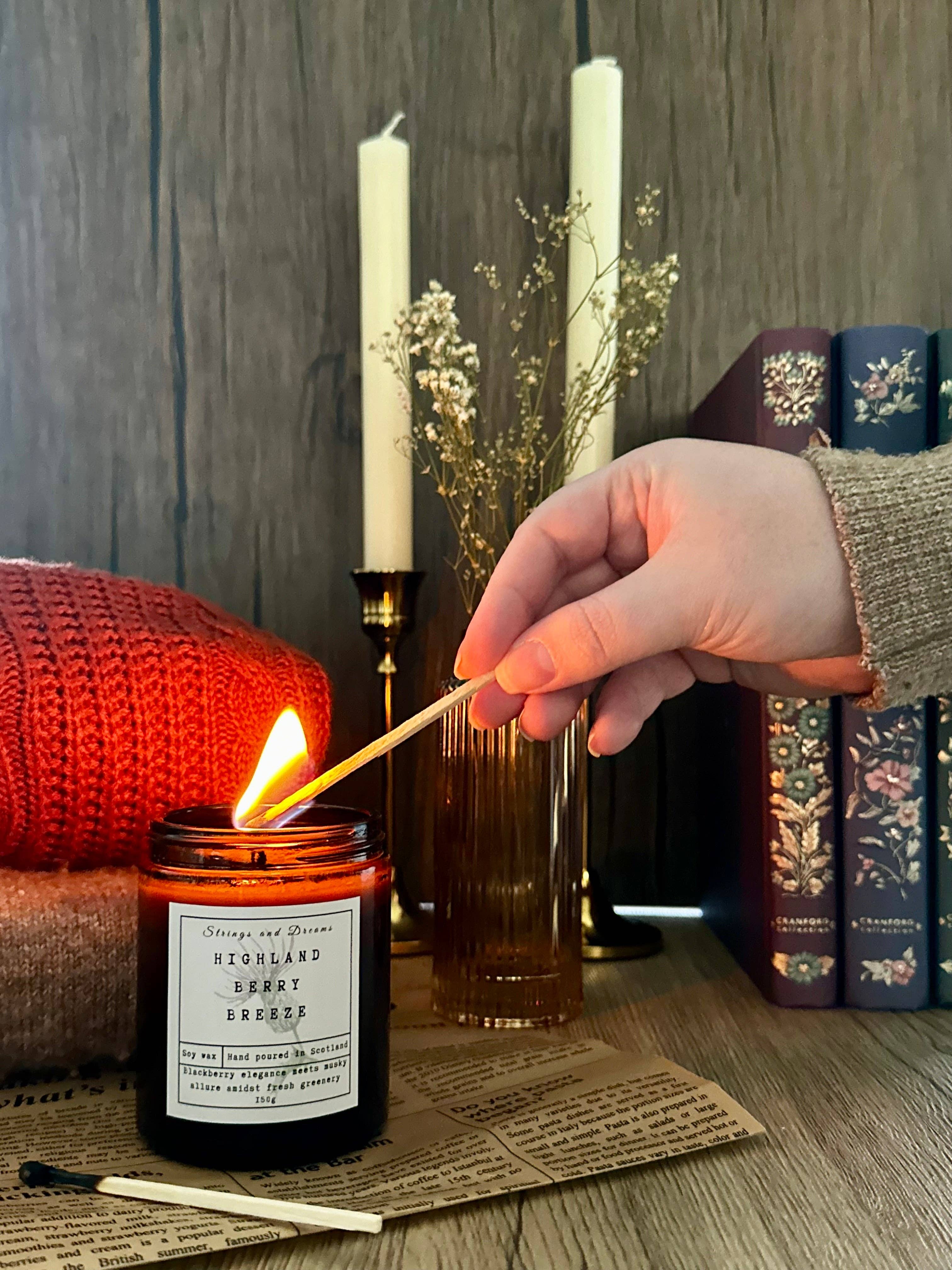 At Strings and Dreams, our story began during a magical honeymoon in Scotland in October 2018. Captivated by the breathtaking landscapes and rich heritage, we made the life-changing decision to call Scotland our home just three months later. Inspired by this land’s beauty and traditions, we started our business in 2020 with a dream: to create a sensory experience, because we truly believe that scents can evoke memories. After years of dedication and experimenting, we perfected our recipes and proudly launched our digital story scented candles in March 2024. Our highly scented candles feature a QR code that, when scanned, reveal a unique video of the location that inspired each scent. We use 100% responsibly sourced soy wax and recyclable amber jars for the candles and reusable aluminium tins for the wax melts. Our products are proudly made in our studio in Tomintoul, the Highest village in the Highlands.