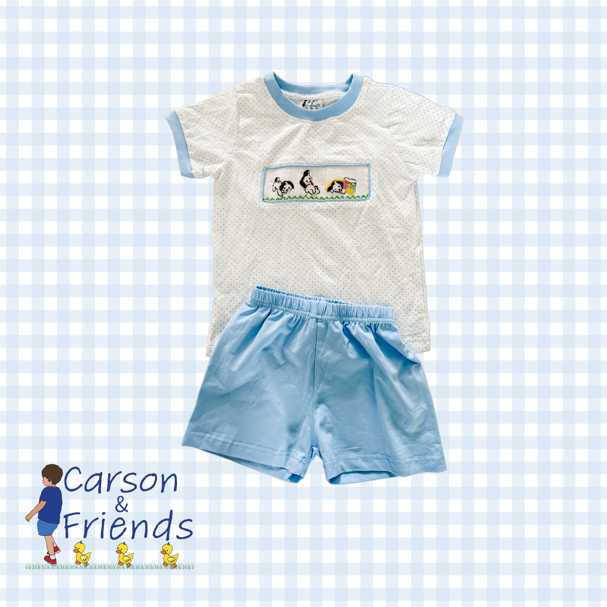 Carson and Friends is a line designed and manufactured by a mom who loves dressing her children in sweet styles. Offering smocks, printed play outfits, bamboo, and luggage for babies and children.