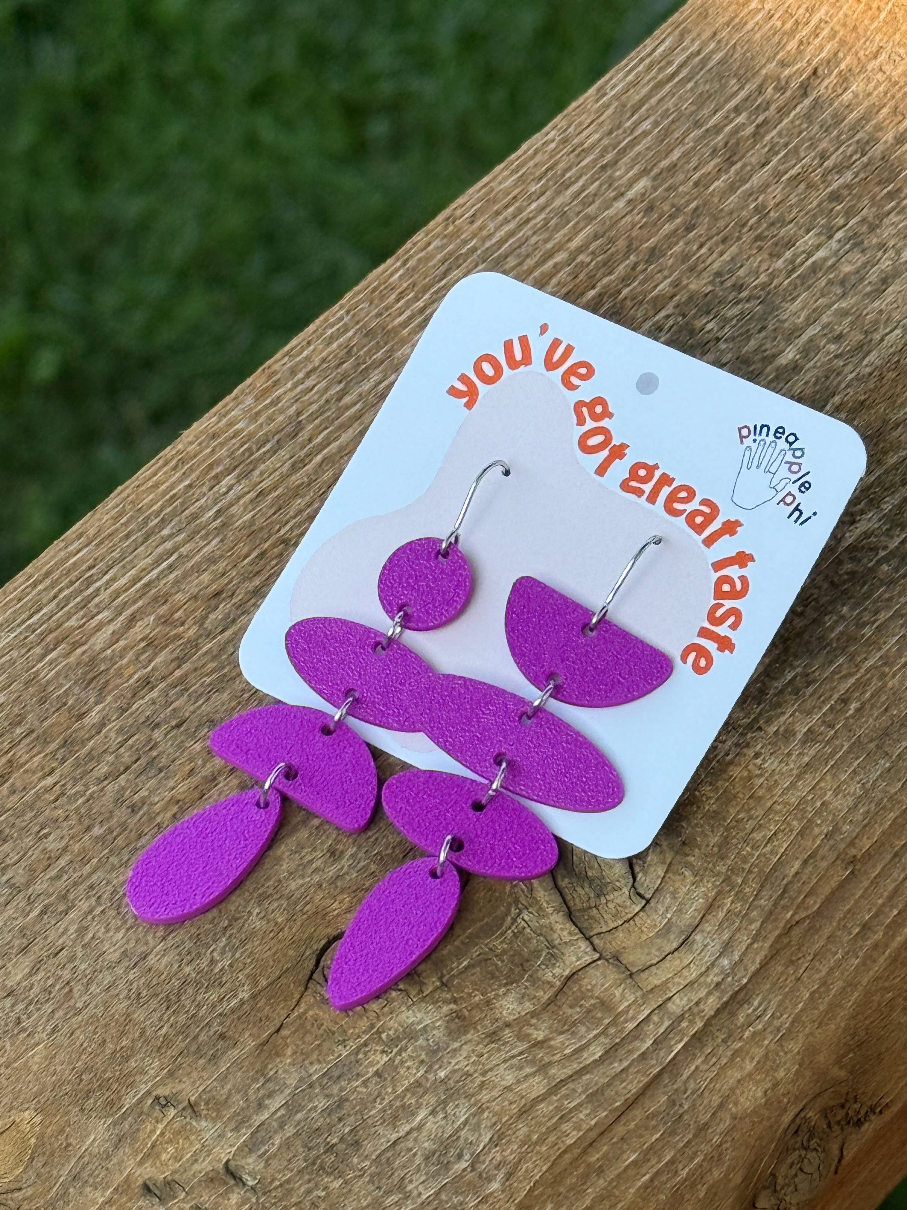 Pineapple Phi is an independent brand that combines thoughtful designs with interesting color choices. PPHI pieces are meant to be enjoyed, while also making a statement. All earrings are designed with the end user in mind - they are made with lightweight material and stainless steel ear wires so that your jewelry is comfortable to wear all day long. All of the products are made with high-quality cast acrylic and/or premium PLA filament. The components are hand-drawn and either laser cut and/or 3D printed. This ensures that your PPHI pieces are unlike any other earrings on the market. The Pineapple Phi brand is designed by Bee and handcrafted in Omaha, Nebraska.